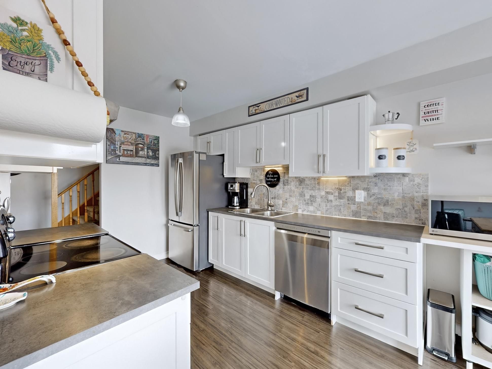 This is the one you've been waiting for! Welcome home to this incredibly updated, 2,000sqft total space, move-in ready 3 bed (easily a 4th) 3 bath home in a prime location! Over $42,000 recently spent on upgrades!! Wow!! Your new, blue, gorgeous, 2024 front door, w/ hidden rollaway screen, opens to a spacious foyer large enough for all your family's boots, shoes, jackets, & even more storage with the ample sized closet. Updated main floor flooring invites you to the bright living room, dining area, and the updated kitchen, complete w/ oversized windows & sliding patio door out to the well-sized backyard featuring a large custom deck & low-maintenance yard, all designed for the best entertaining options. The well-positioned stair case leads you down to the prof. Finished basement (2022) which provides tonnes of storage, a large finished laundry room w/ front-load washer & dryer, separate pantry, and open recreation room. Back upstairs, the 2nd floor split-staircase design brings you left to the family room/office/den... Whichever you prefer... That can easily be converted to a very roomy and bright 4th bedroom. Heading to the right welcomes you to the amazingly-massive primary bedroom complete with large walk-in closet, and your own private, primary ensuite bathroom. Down the hall is another full bath & 2 more bedrooms perfect for your family, each custom blinds! The entire homes' windows were upgraded (2024), and above your head as you sleep is the ultimate in comfort with upgraded attic insulation at r-60 value, ensuring heat stays in during the winter, and air-conditioning is efficient during the summer. Bonuses: huge custom deck, pergola, awning, super family-friendly neighbourhood! Furnace humidifier for whole-home comfort, nest thermostat, a super long driveway that easily fits 2 cars & 1 garage parking equals 3 spaces! Close to amazing schools, amenities, hwy 404, it's got it all!