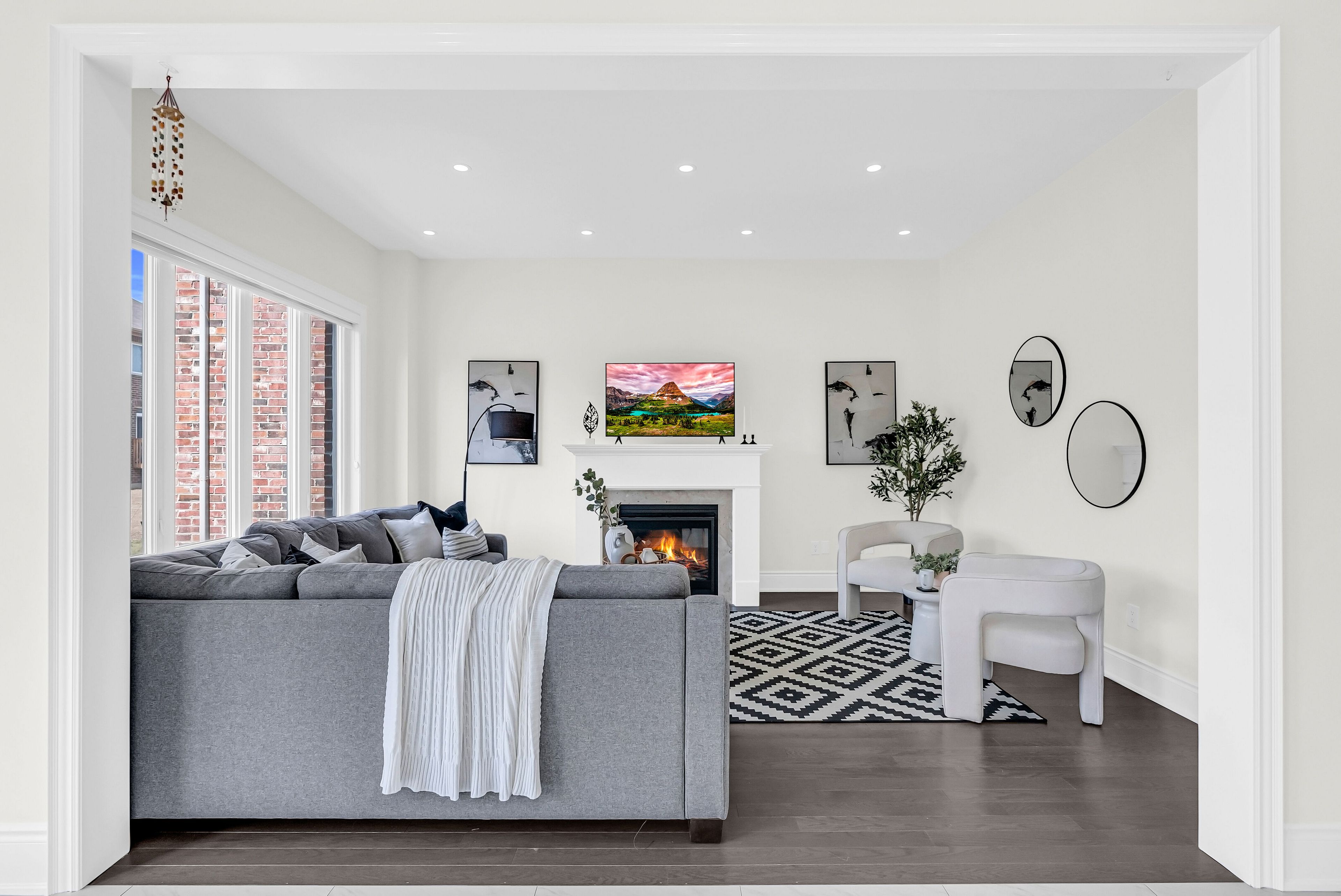 Located in one of caledon's best neighborhoods! Almost new 4-bedrooms, 4 washrooms detached home with separate living room with fire place, separate dining + additional office/ bedroom at main lvl. 10" ceilings on main, 9" on 2nd, hardwood flooring on main lvl, pot lights in entire home. Huge upgraded kitchen with granite counters. Spacious master bedroom with 5-pc ensuite & w/i closet. Additional three bedrooms comes with ensuite washrooms. Main floor laundry. $$$ spent on upgrades. Separate side entrance by builder. Walk to st. Evan catholic school, close to hwy 410, grocery stores, parks, and all amenities! Must see property, book your showing today!