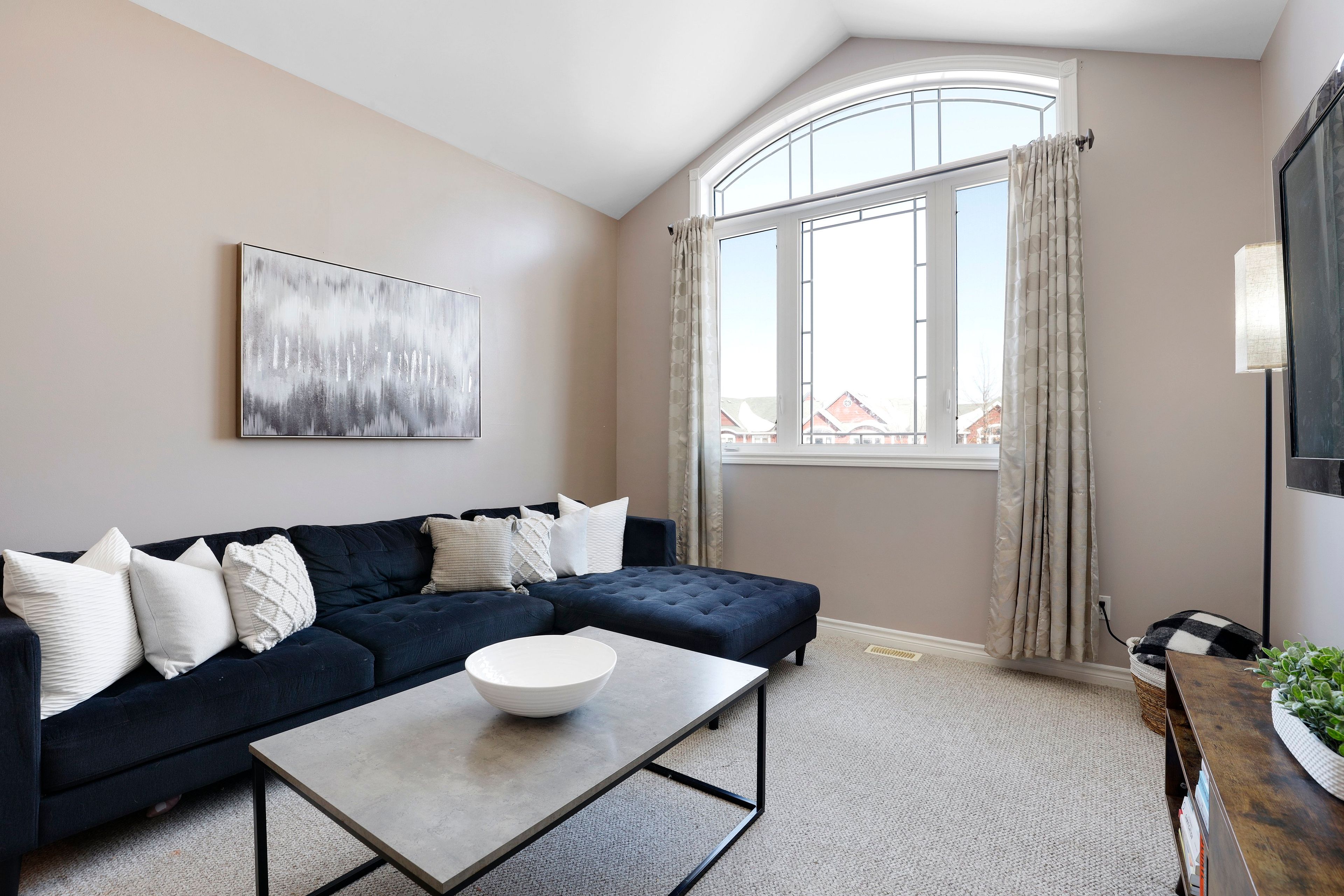 Step into this bright, welcoming 1700 sq ft townhome, nestled away from the hustle and bustle, within a peaceful, well-maintained community with no through traffic. The main level offers a spacious living room and dining area, seamlessly connected to a well-equipped kitchen and a cheerful eating space that has sunlight pouring in all day through southwest-facing windows, creating a warm and inviting atmosphere. Upstairs, you'll find three comfortable bedrooms, including a spacious primary bedroom with 5-piece ensuite and a convenient laundry area located exactly where your laundry is! Enjoy the versatile family room, with gas fireplace, perfect for movie nights with wall-mounted tv included. The professionally finished lower level adds flexibility with a handy powder room-ideal for guests. Park your suv with confidence in the attached garage, easily accessed from the main foyer. Outside, enjoy peace and privacy in your own fenced backyard with no rear neighbours, perfect for children, pets, or quiet evenings. Utilities provided by the owner: water $65/mnth, enbridge $40/mnth, hydro $140/mnth, hot water heater $44/mnth. $117 / monthly private road fees for snow removal, garbage collection, and road maintenance. With its beautifully kept setting, and welcoming neighbourhood atmosphere this is truly a wonderful place to home.