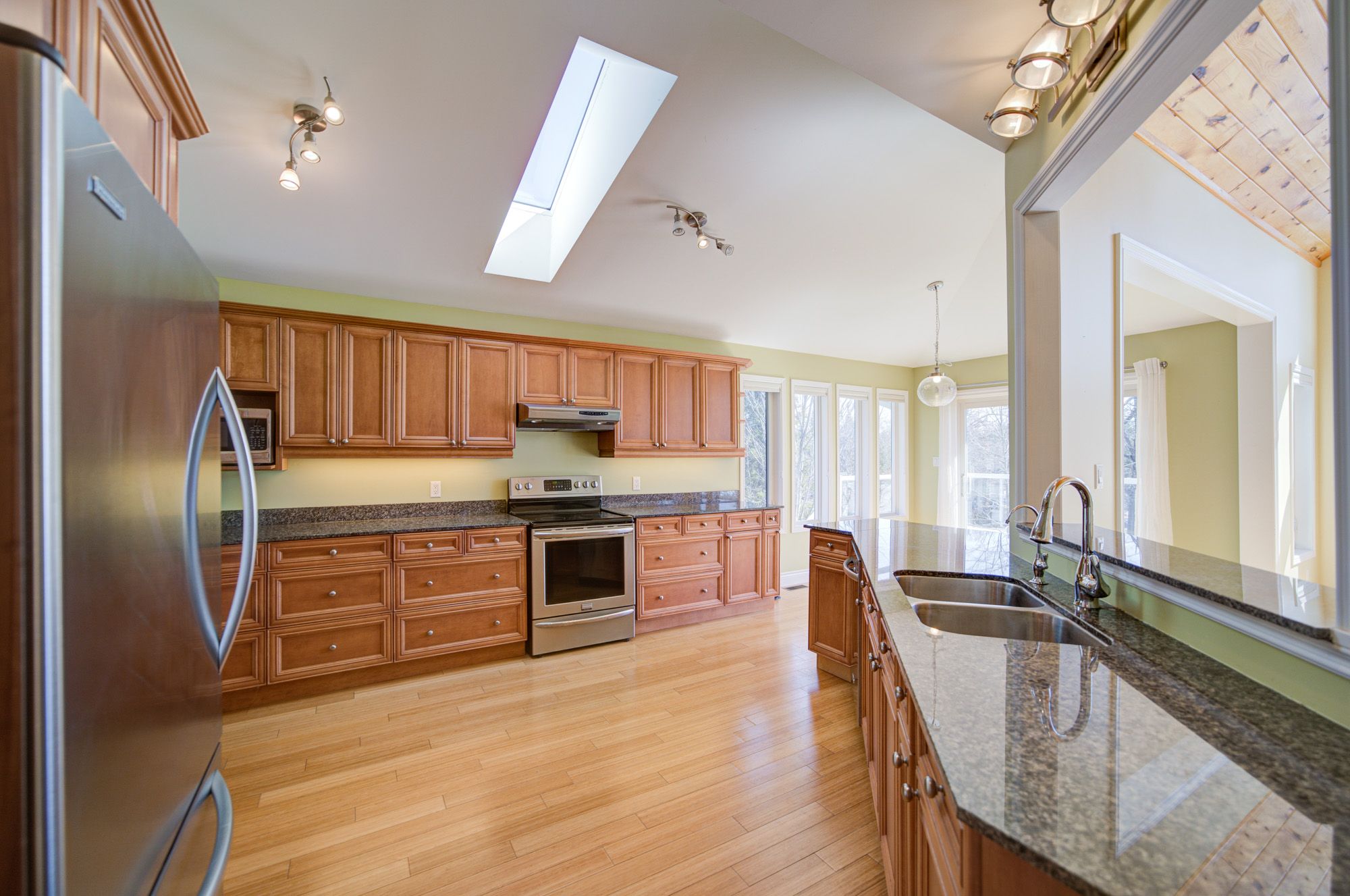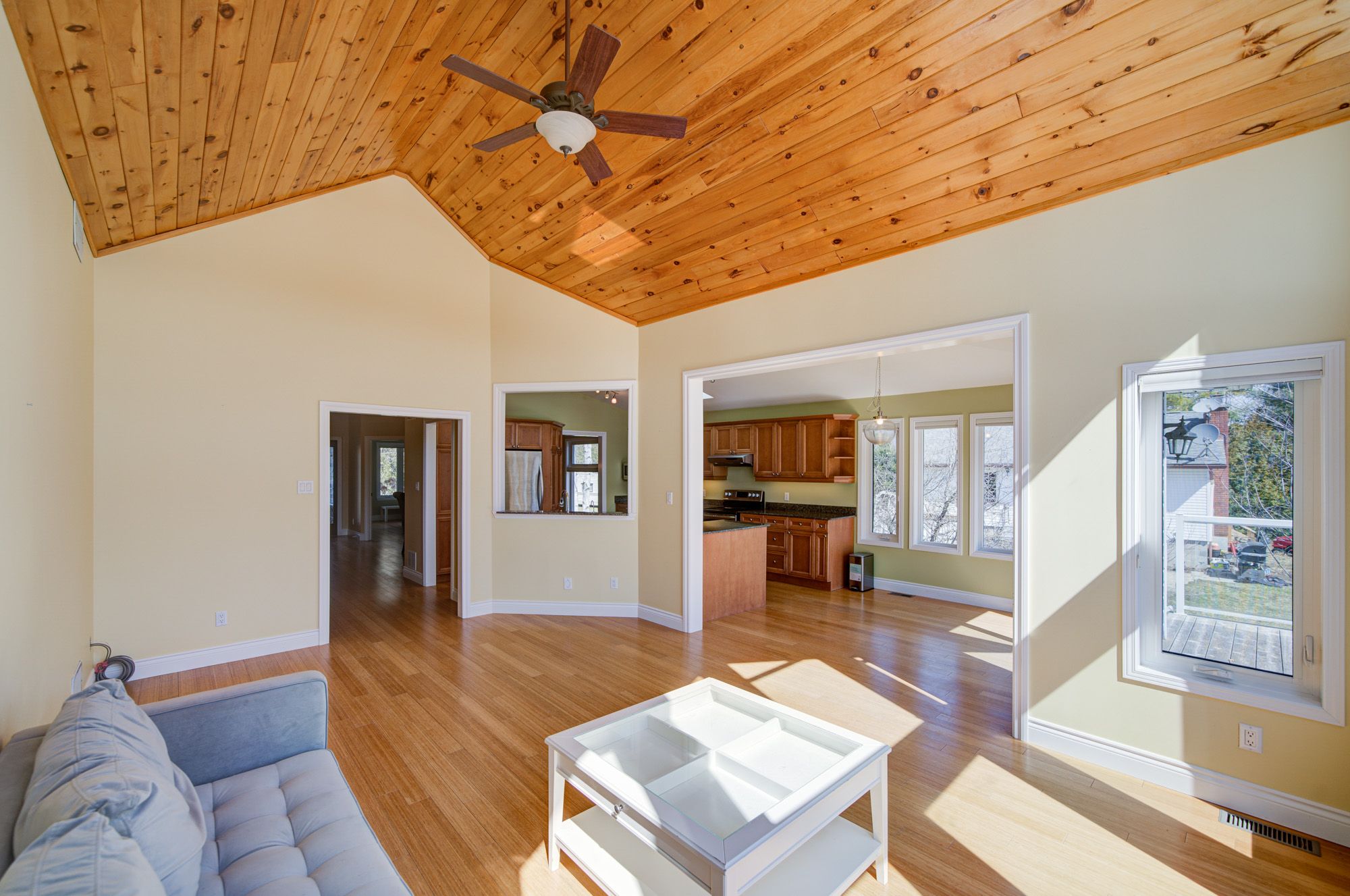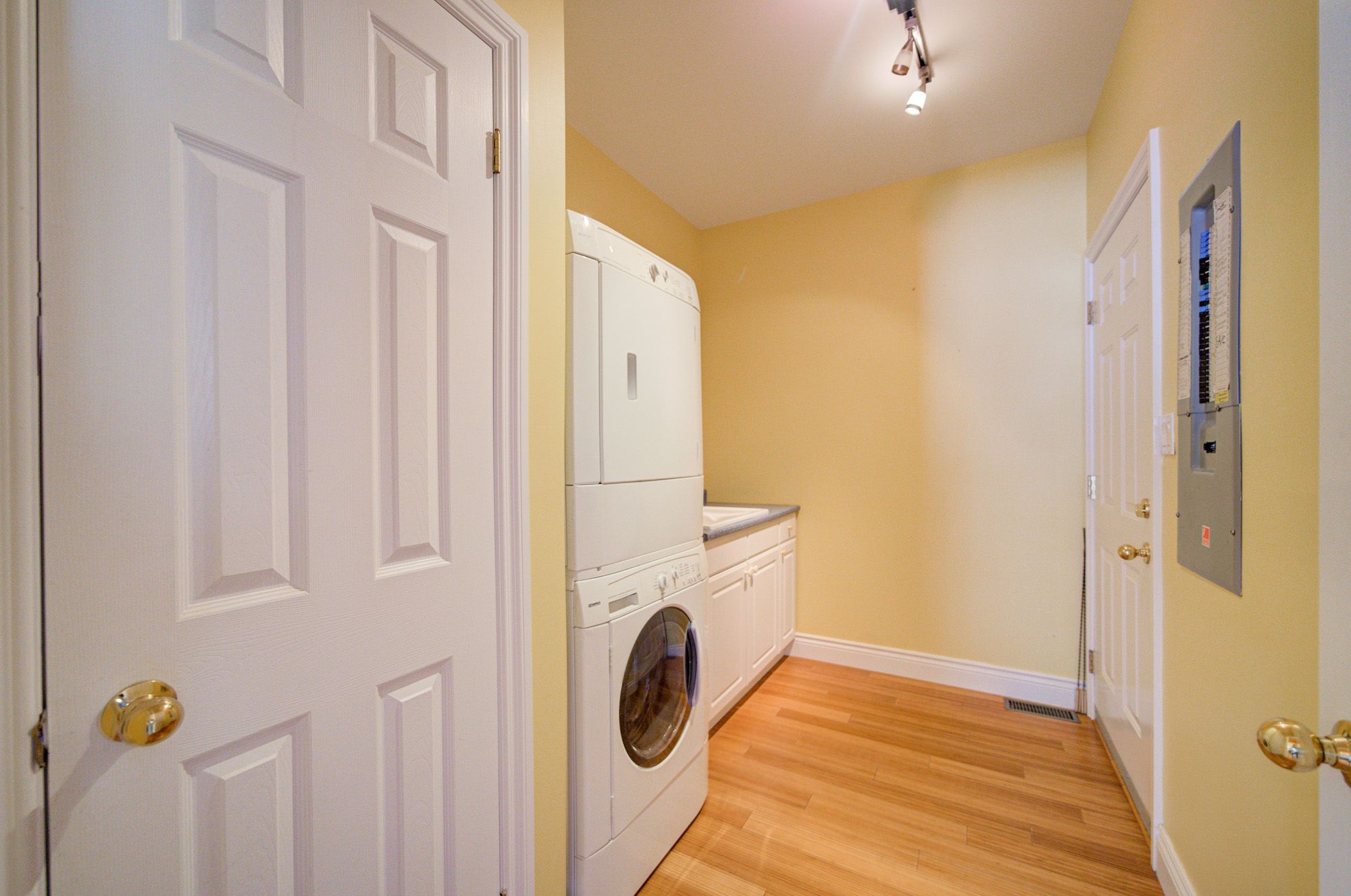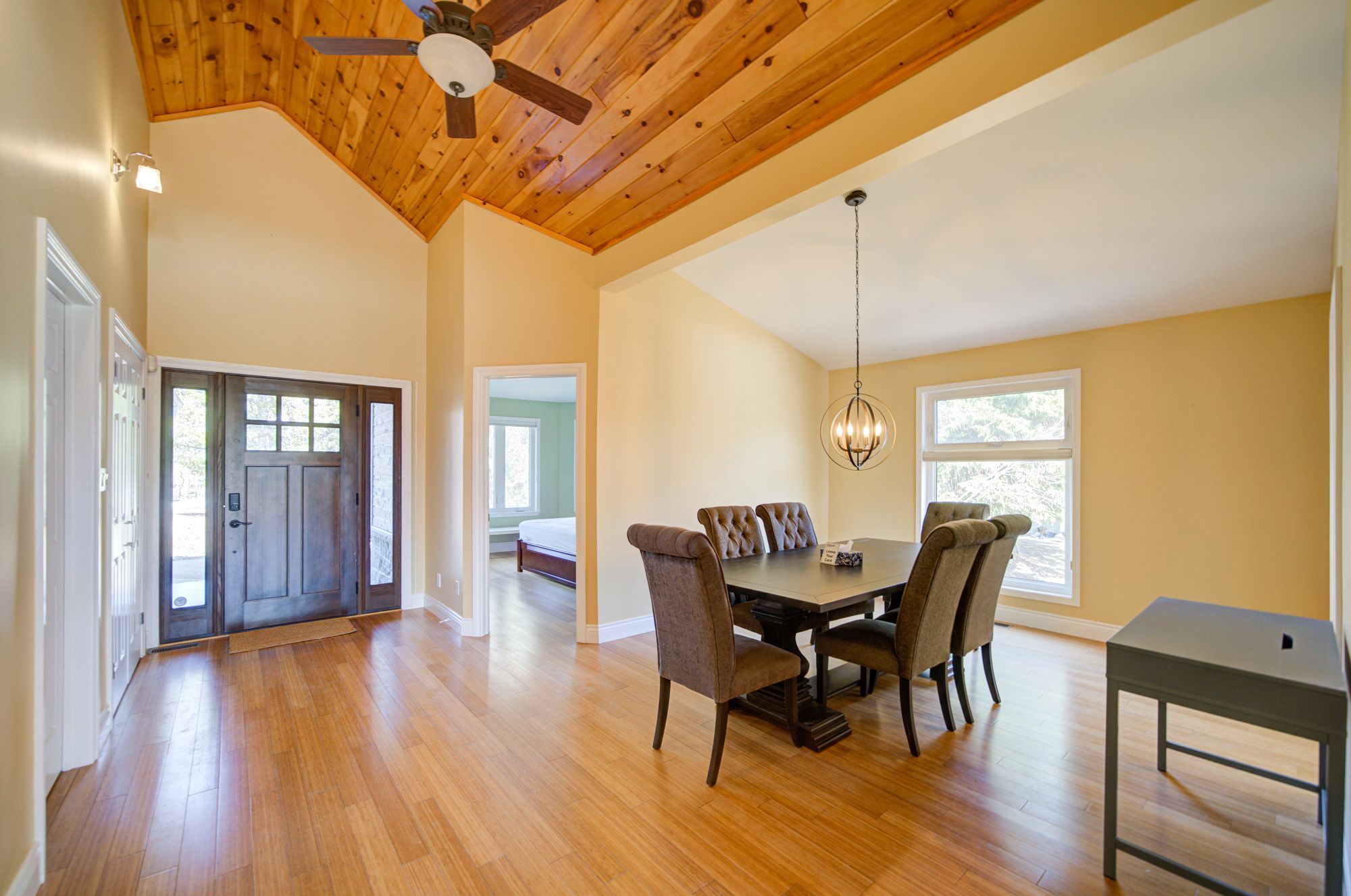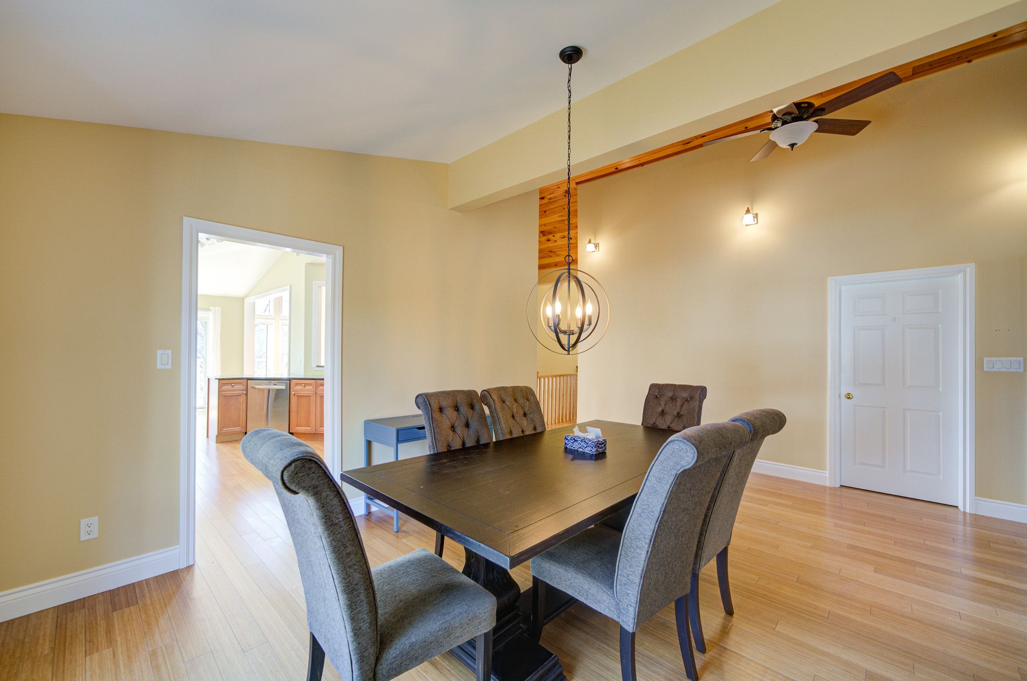 • High ceilings and bamboo flooring add a modern touch throughout.