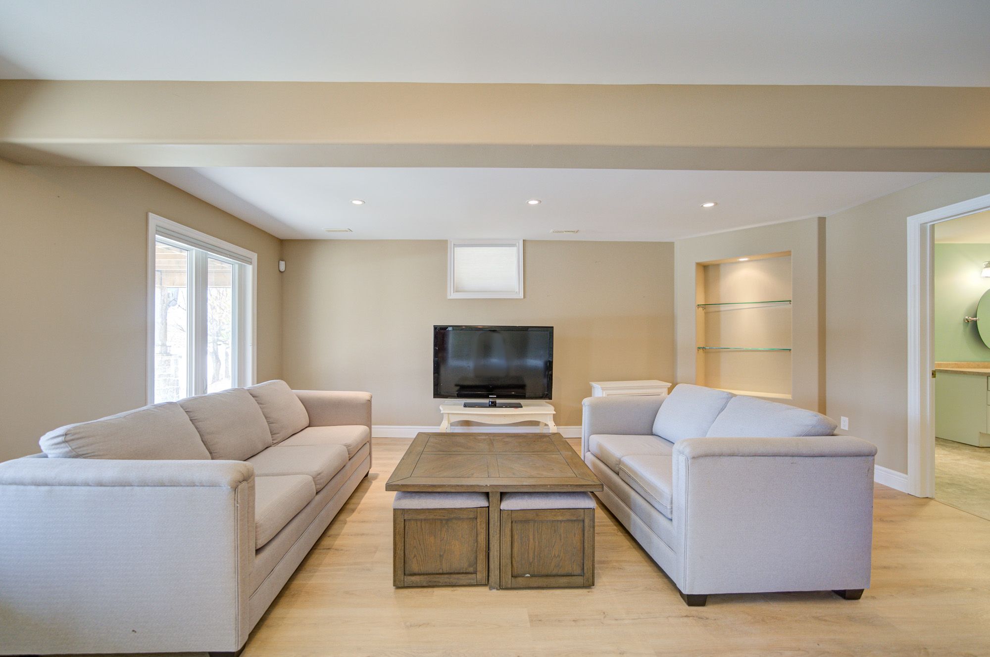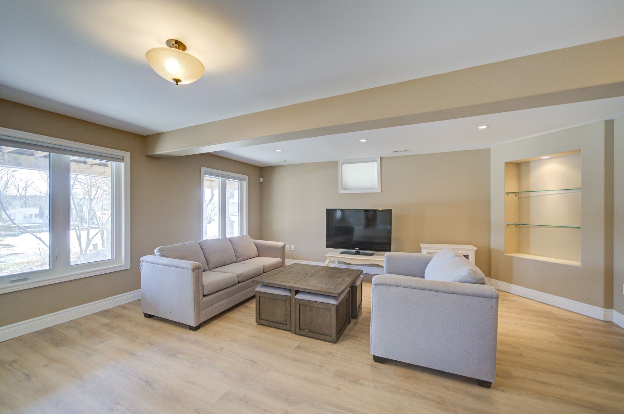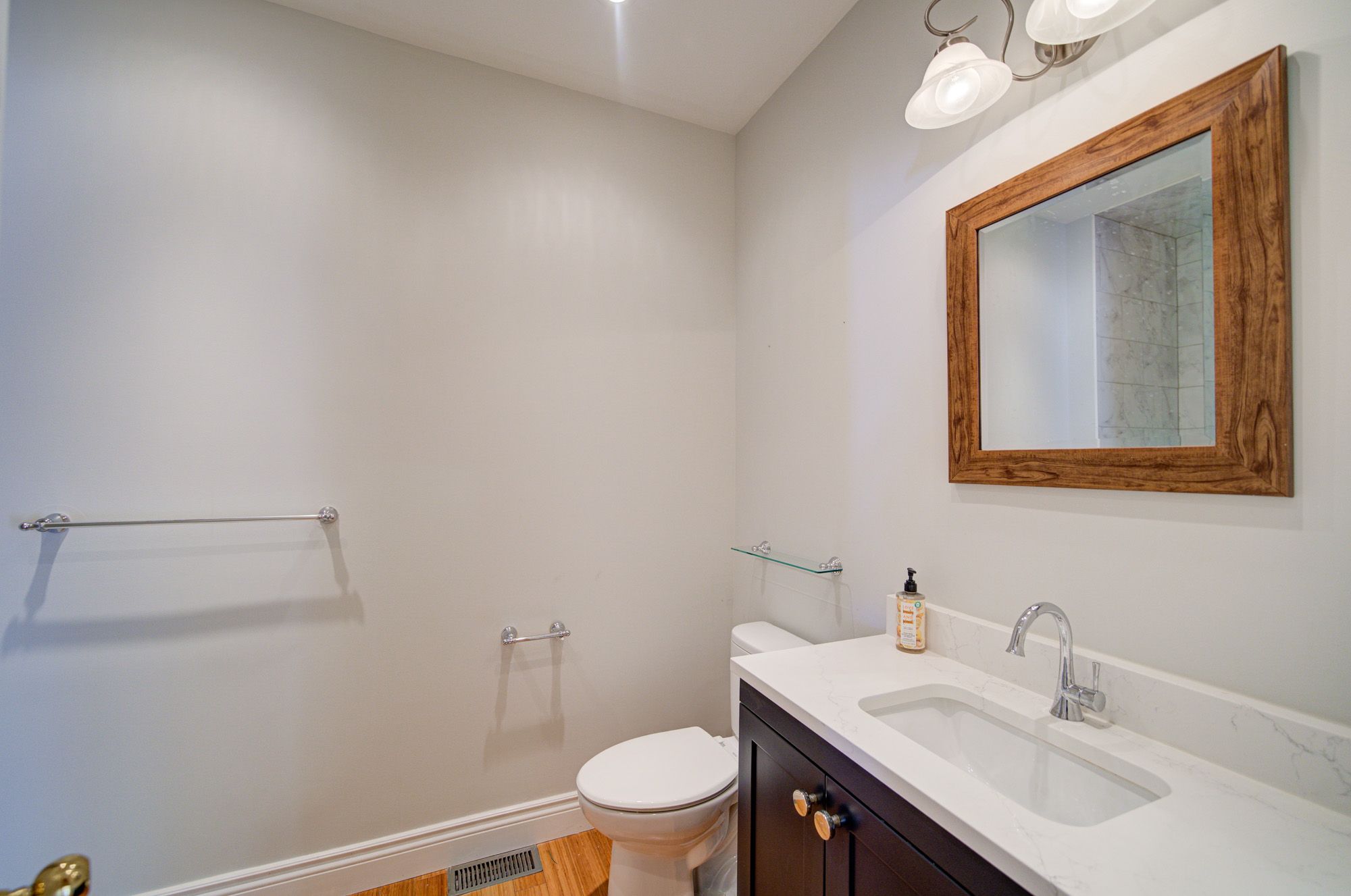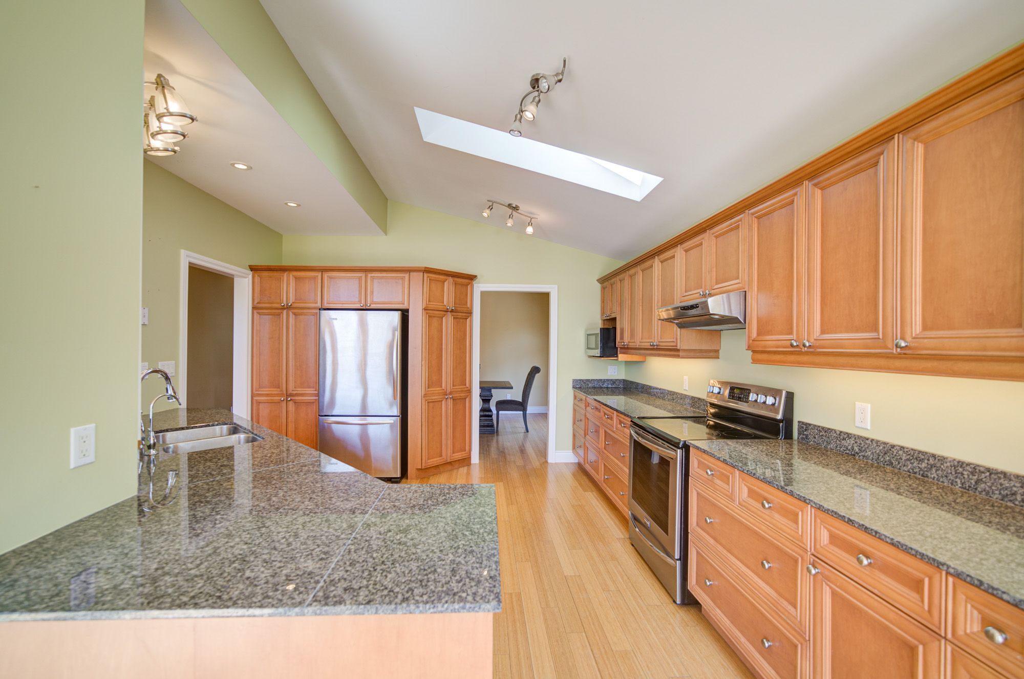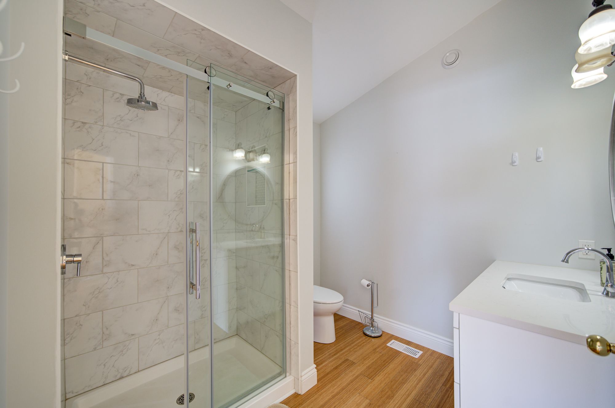 • High ceilings and bamboo flooring add a modern touch throughout.