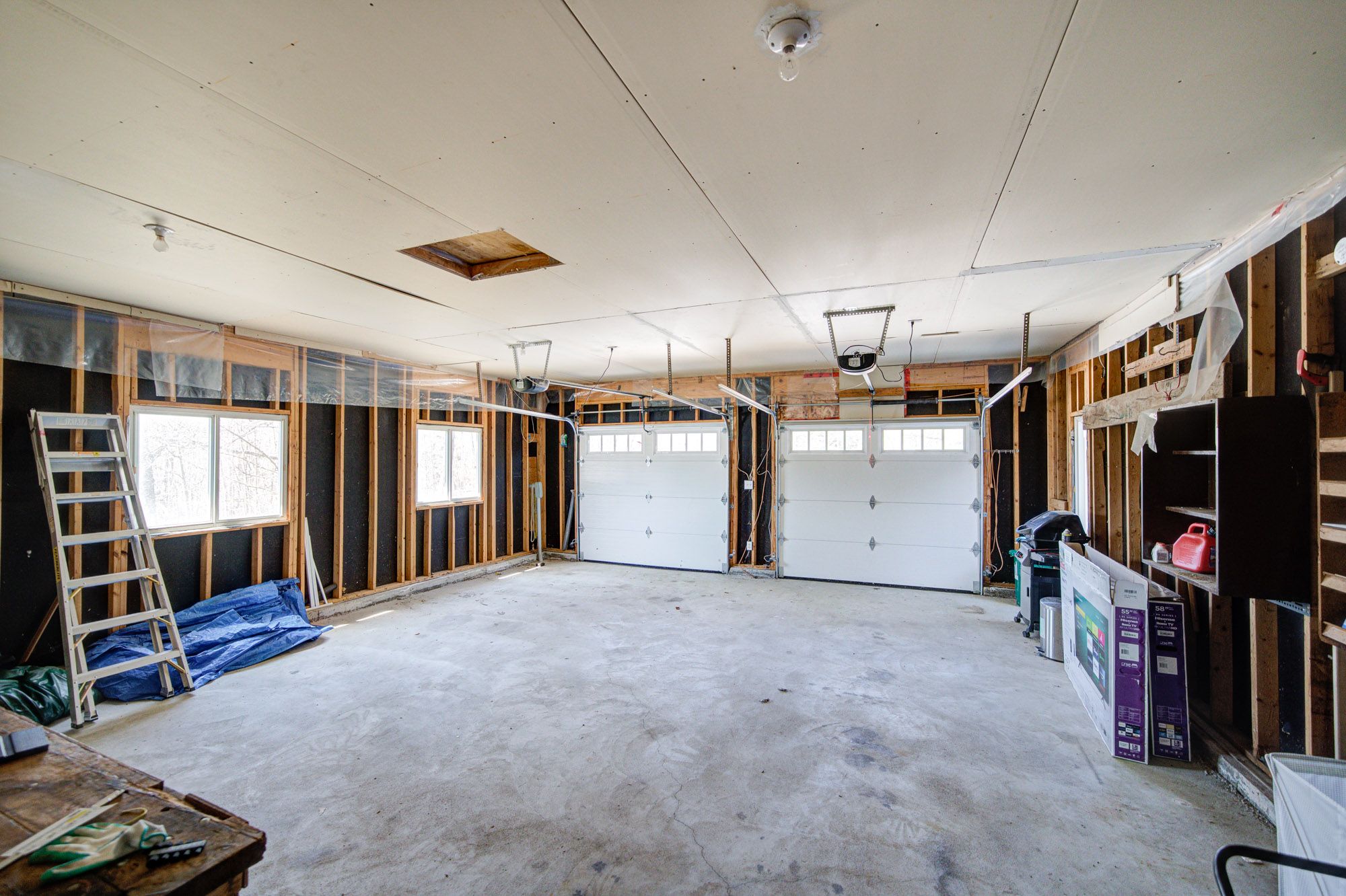 • Oversized double garage with workshop space and winter boat storage.
