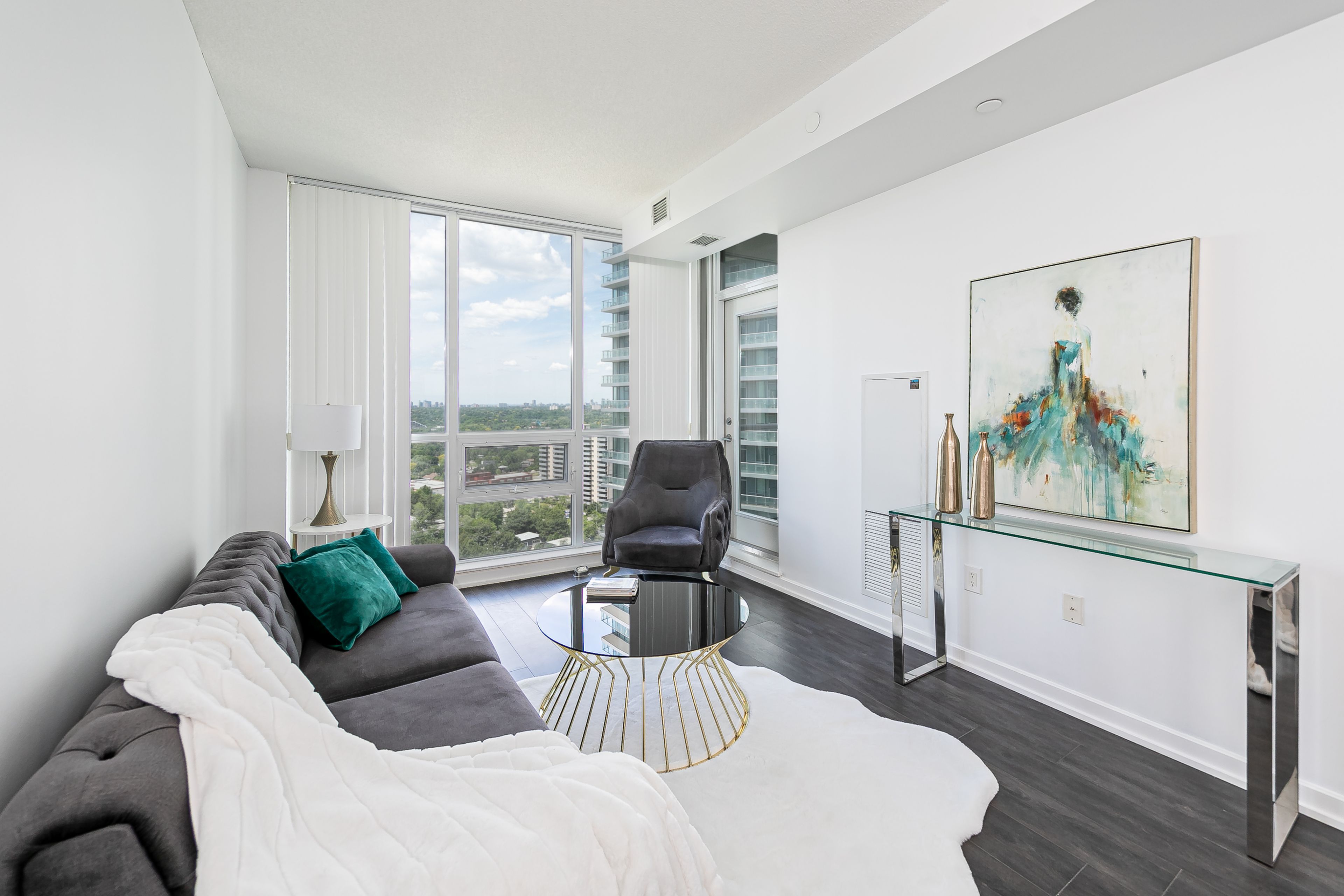 Welcome to this furnished condo apartment with 2 bedrooms. Den is large and has a french door and can be used as a second bedroom. 1 full bath 1 parking, large balcony. Almost 700 sft. 10ft ceiling, unobstructed west view. Steps to subway, fairview mall, ttc bus terminal. Direct transit to u of t, york university, and downtown core. Community centre and school just on the side of the building. 1 min drive to hwy 404 and 401. One parking is included.