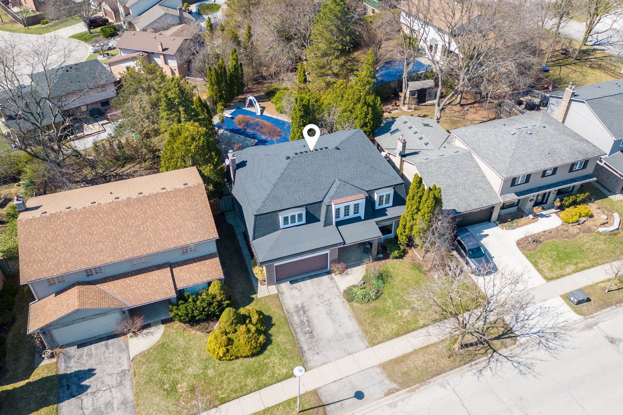 If you've been searching for a home that gives your family space to gather, entertain with ease, and still enjoy quiet moments to recharge, welcome to 62 fourwinds rd in byron. This 4-bedroom, 4-bath, 2-storey home offers almost 2,800 sq ft above grade and nearly 3,700 sq ft of total finished living space, designed for both everyday living and memorable occasions. A dramatic foyer with cathedral ceilings and a circular oak staircase sets the tone. Generous living and dining rooms, a coffered family room with a fireplace and halogen pot lighting, and a bright kitchen with concrete counters and a pantry create a natural flow for hosting and connection. The oversized kitchen window frames sweeping views over the private backyard, l-shaped pool, and mature trees, making even everyday moments feel special. Upstairs, the primary suite offers a comfortable retreat with an updated ensuite, double closet, and a private balcony accessed through patio doors-perfect for taking in the elevated views. Newer sinks throughout add a refreshed, cohesive feel. The finished walk-up lower level expands your options with a spacious rec room, fireplace, wet bar, sauna, and flexible space for games, fitness, or guests. With separate access and a generous layout, it offers excellent potential for an in-law suite or multi-generational living. Outside, the backyard delivers the lifestyle buyers hope to find-private, expansive, and thoughtfully arranged with multiple areas for dining, relaxing, and entertaining around the pool. Major update: new roof completed in fall 2025 with transferable warranty. Located close to byron's shops, restaurants, parks, library, and boler mountain, with easy access to talbot village, this is a home where your next chapter can unfold.