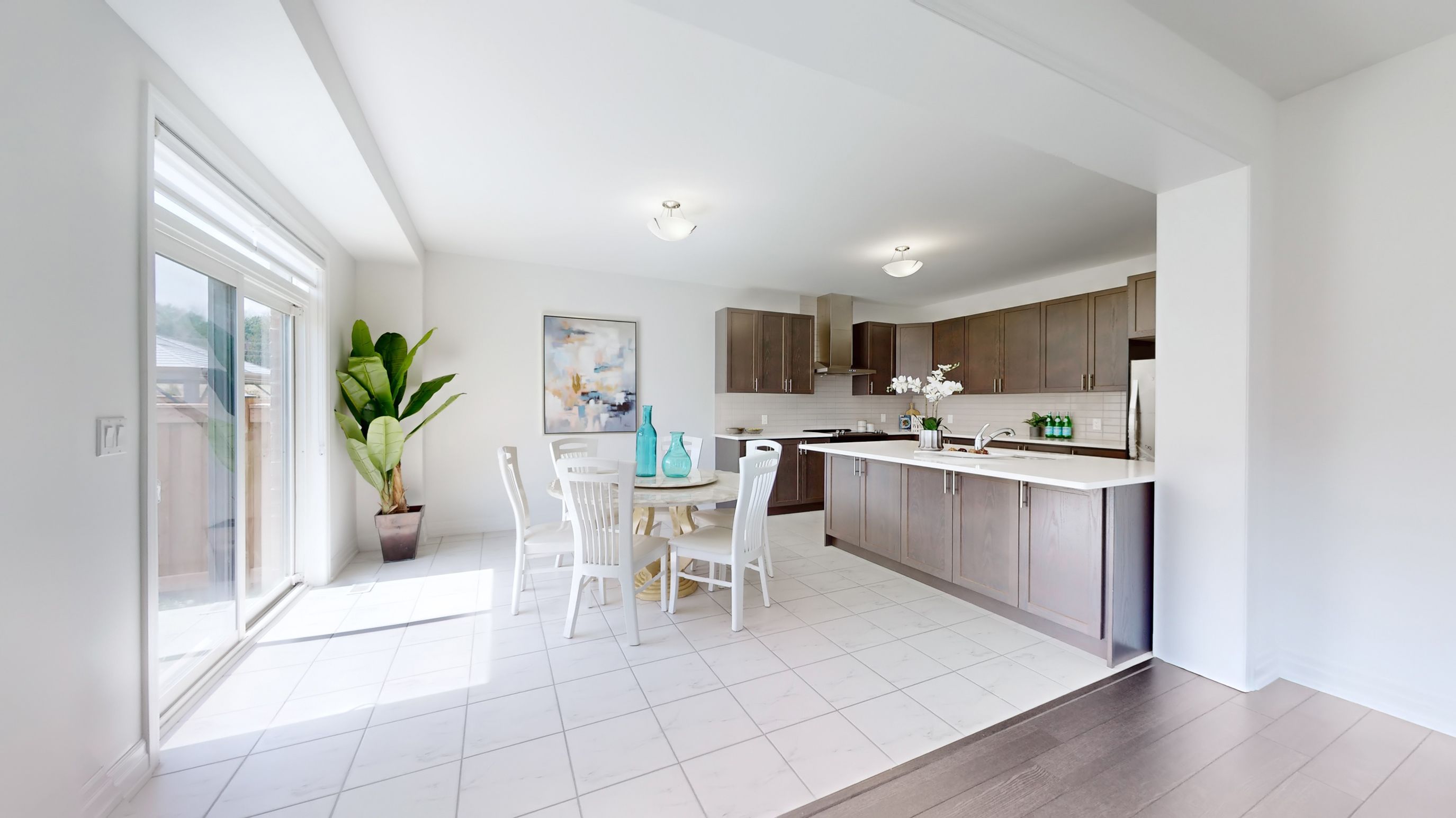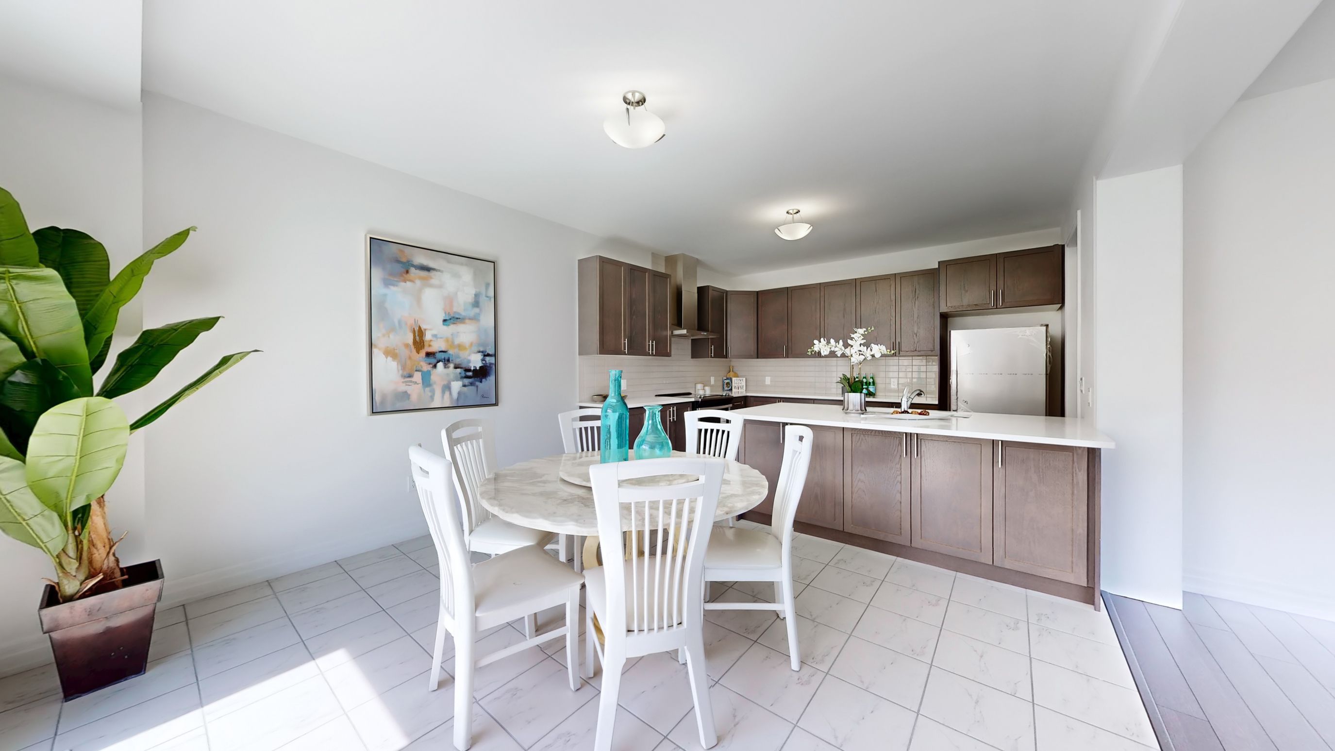 • Modern kitchen with quartz countertops and stainless steel appliances.