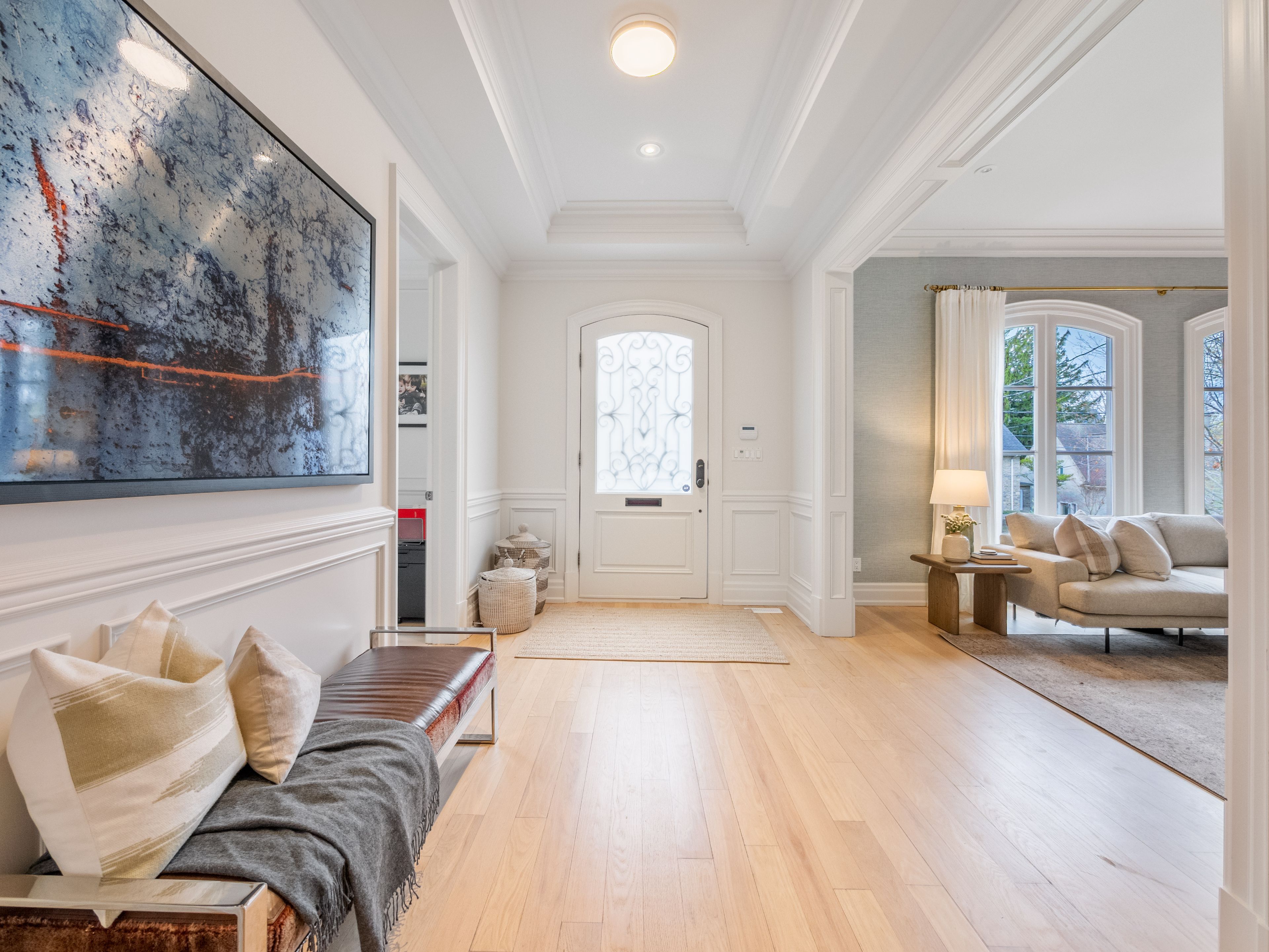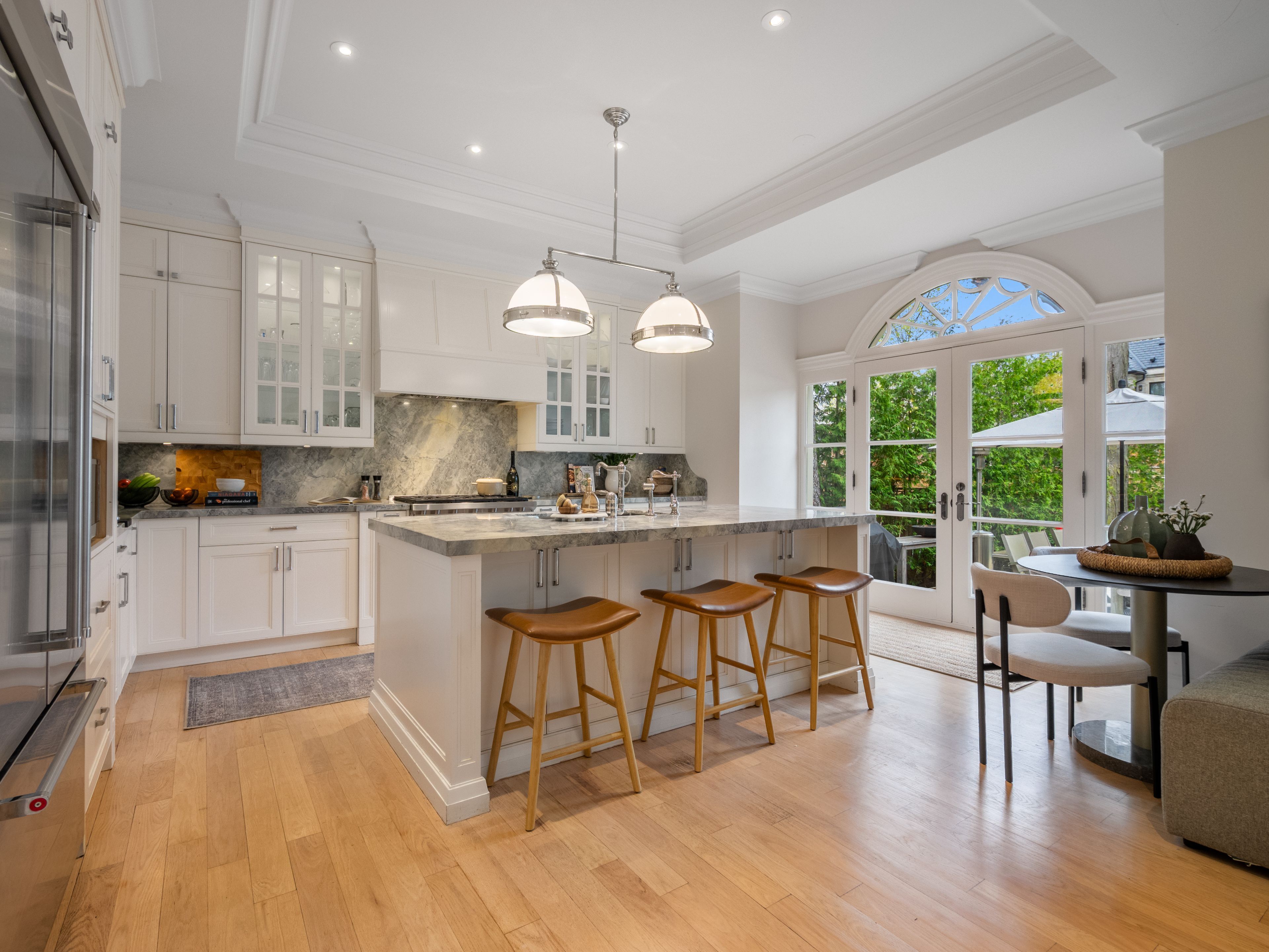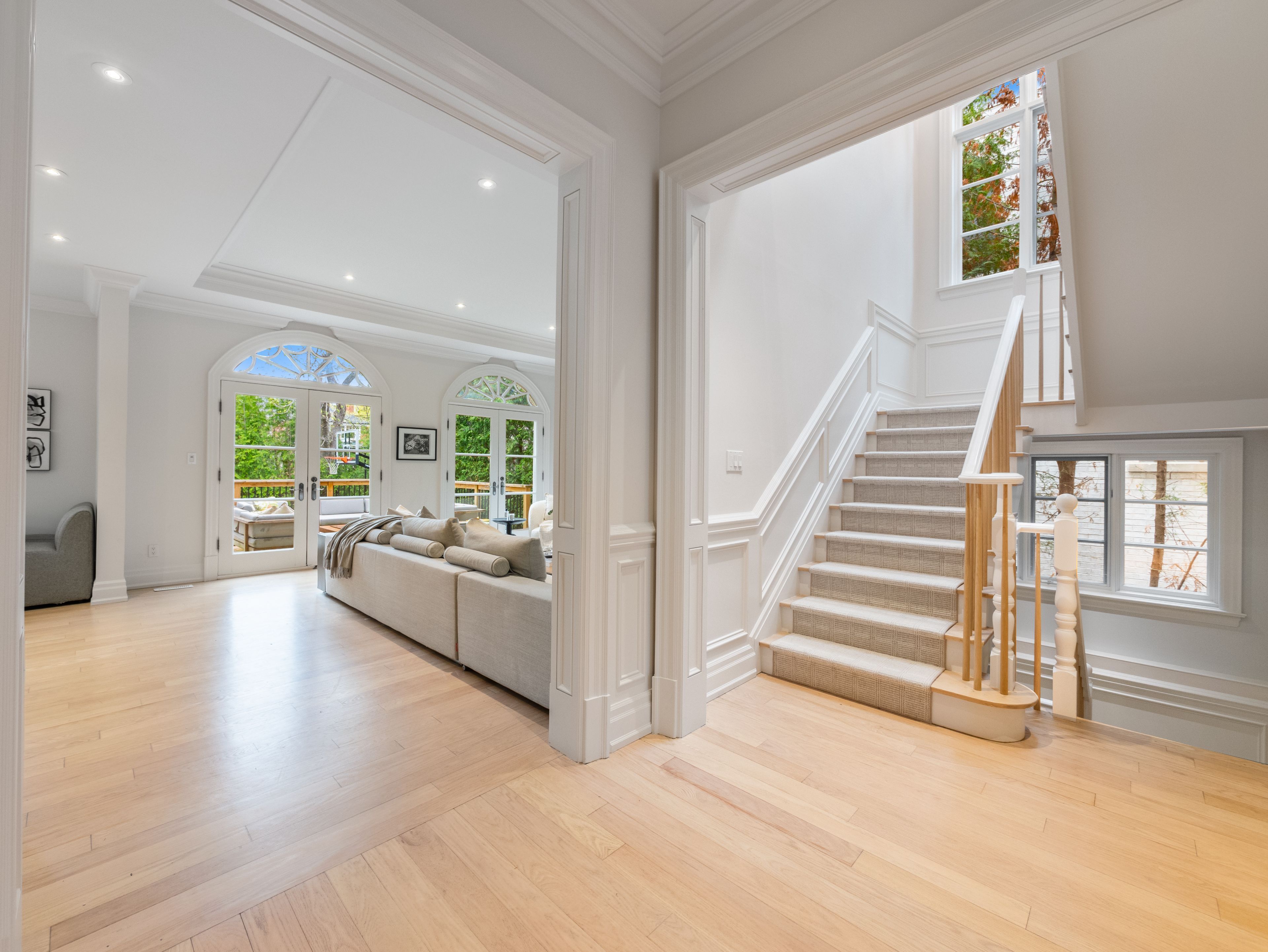 Welcome to 62 glengowan road. A distinguished stone home with graceful elevation and layered terraced landscaping gardens welcome you into this elegant centre hall residence in the heart of lawrence park south. Located within the coveted blythwood junior public school, glenview senior public school, and lawrence park collegiate institute catchment and just moments to granite club, toronto french school, havergal college, and crescent school. This beautifully transitional family home features light blonde oak flooring throughout, expansive windows filled with natural sunlight, detailed crown moulding, and refined perrin and rowe fixtures and hardware. The classic centre hall layout offers exceptional flow for everyday living and entertaining with warm inviting principal rooms designed for comfortable family life. A newly constructed walkout deck with fire pit extends the living space outdoors overlooking a rare flat private backyard framed by mature perimeter hedges and complete with a full sport court with drainage. The level tree free backyard offers outstanding pool potential and exceptional privacy and tranquility. Surrounded by ravine trails, lush greenery, and quiet winding streets known for their timeless character and enduring appeal, this is a rare opportunity to secure a turnkey transitional family home on a premium lot in one of toronto's most prestigious residential enclaves.