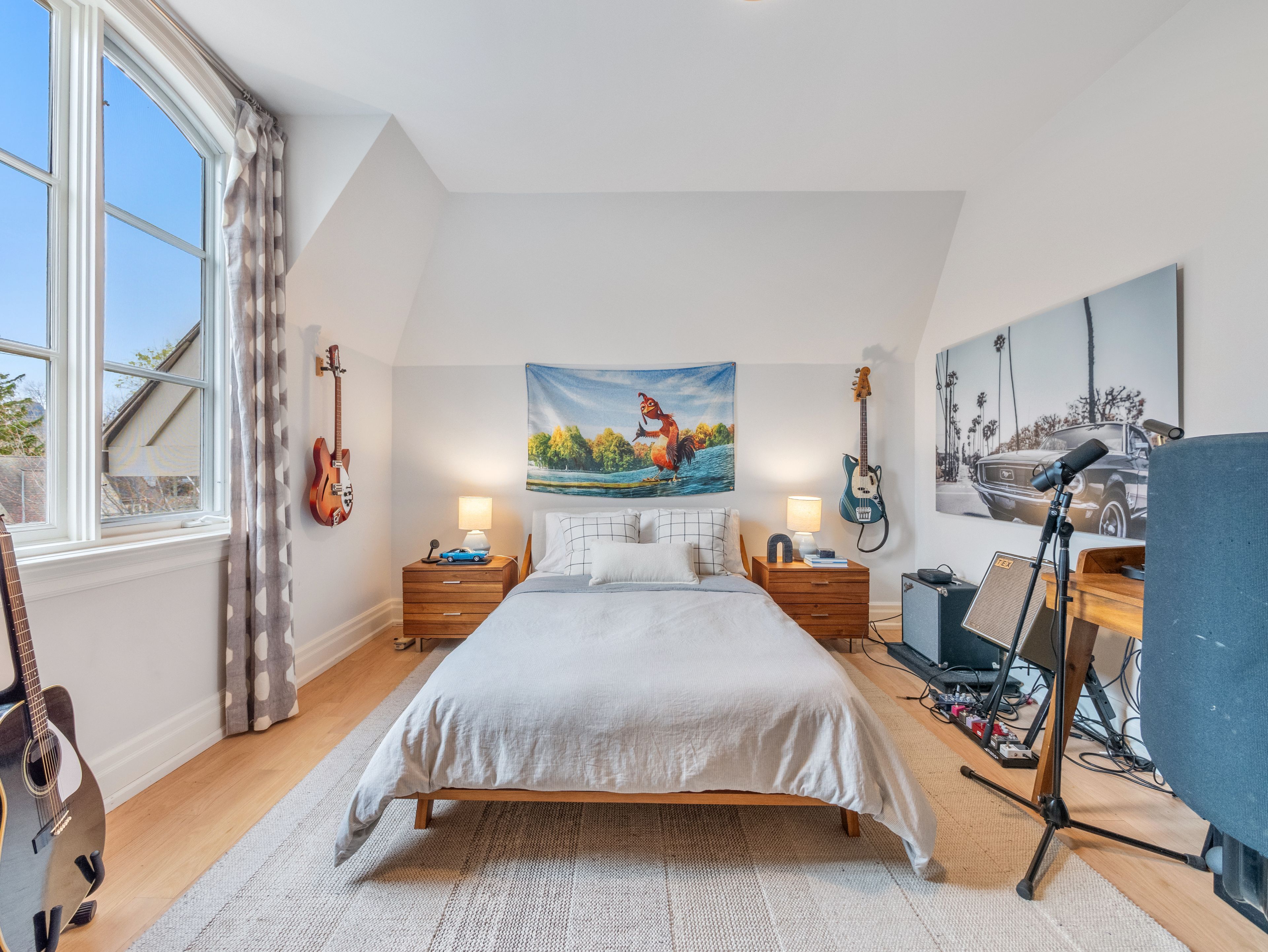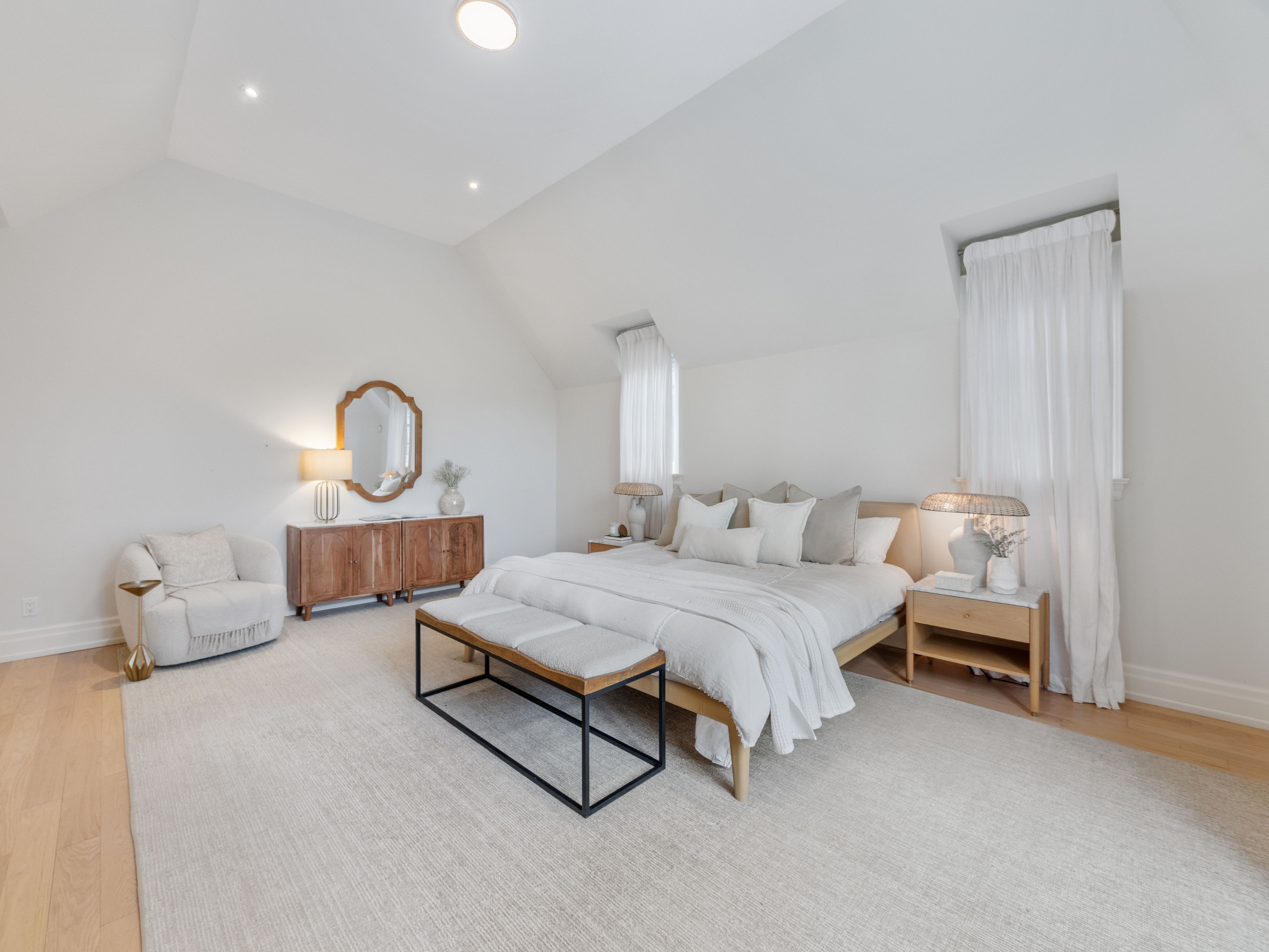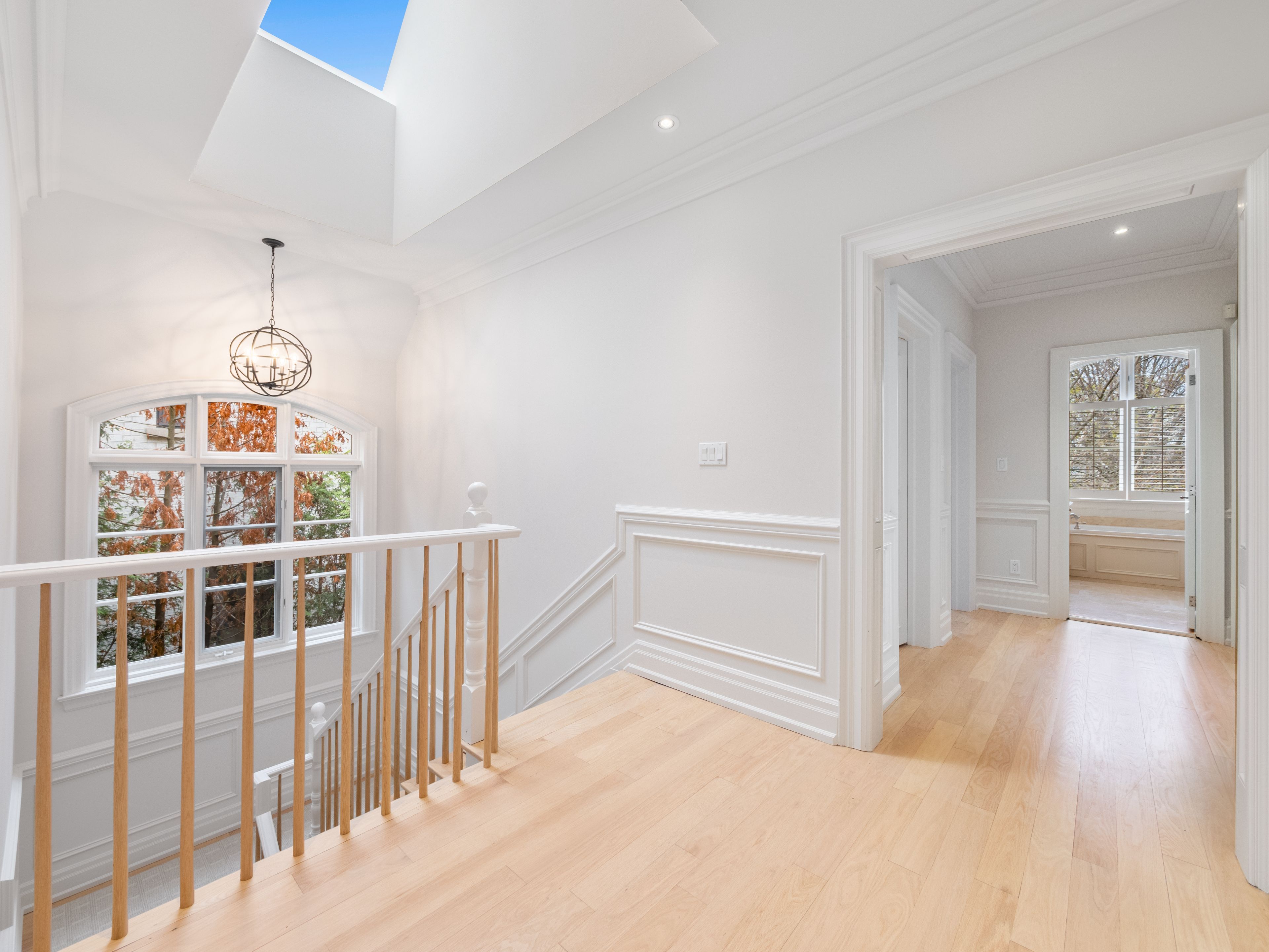 • Light blonde oak flooring and expansive windows fill the home with sunlight.