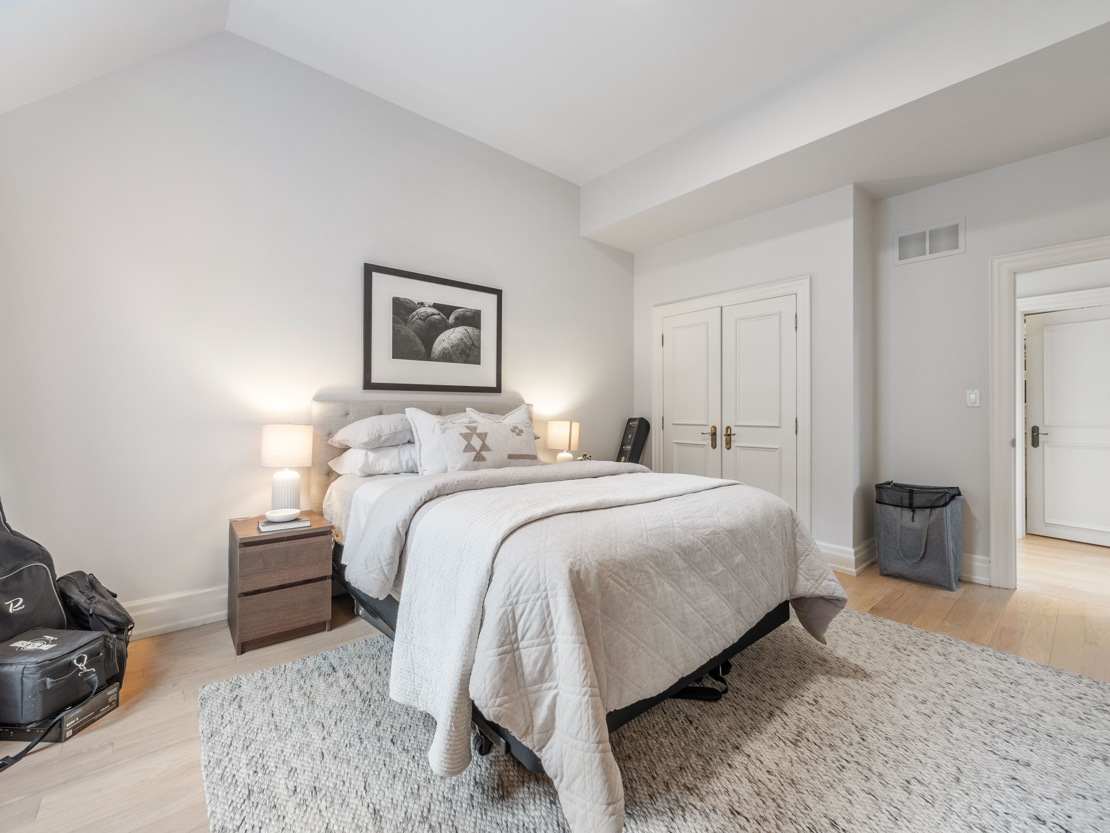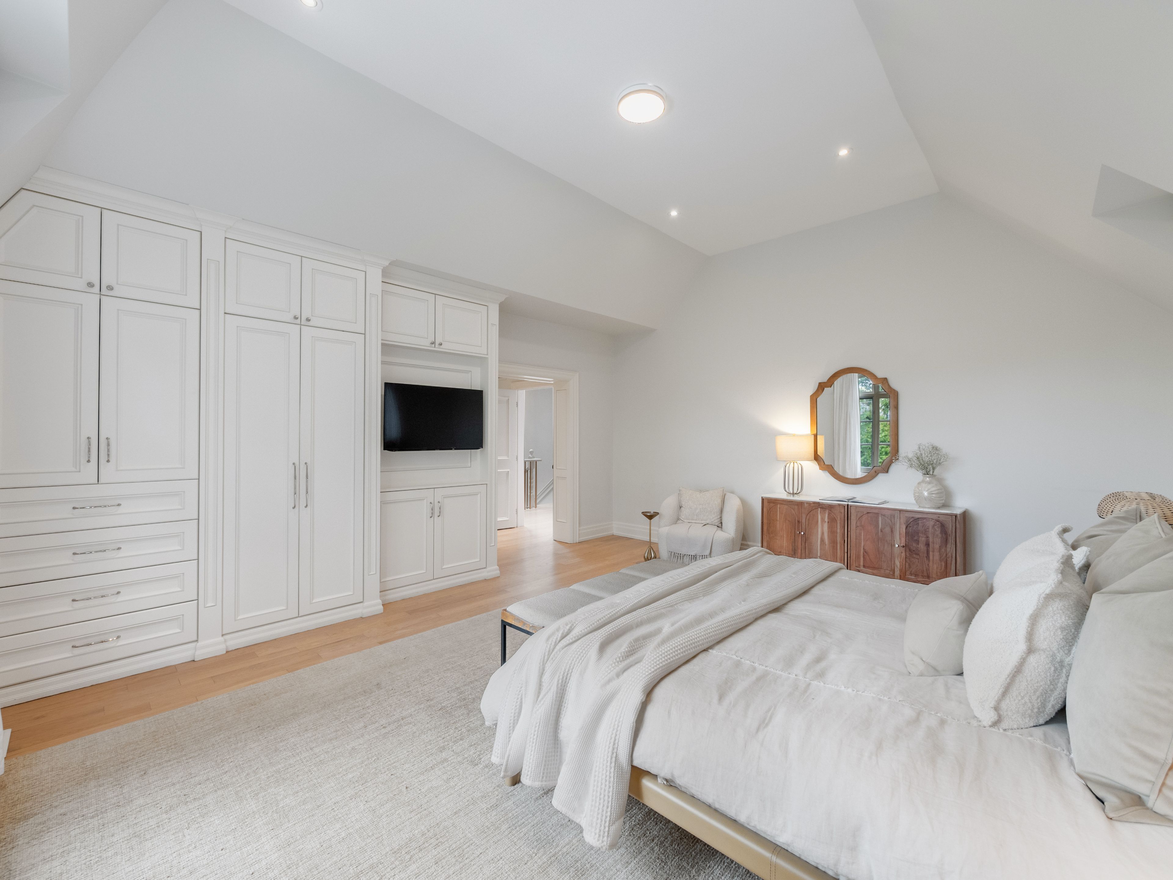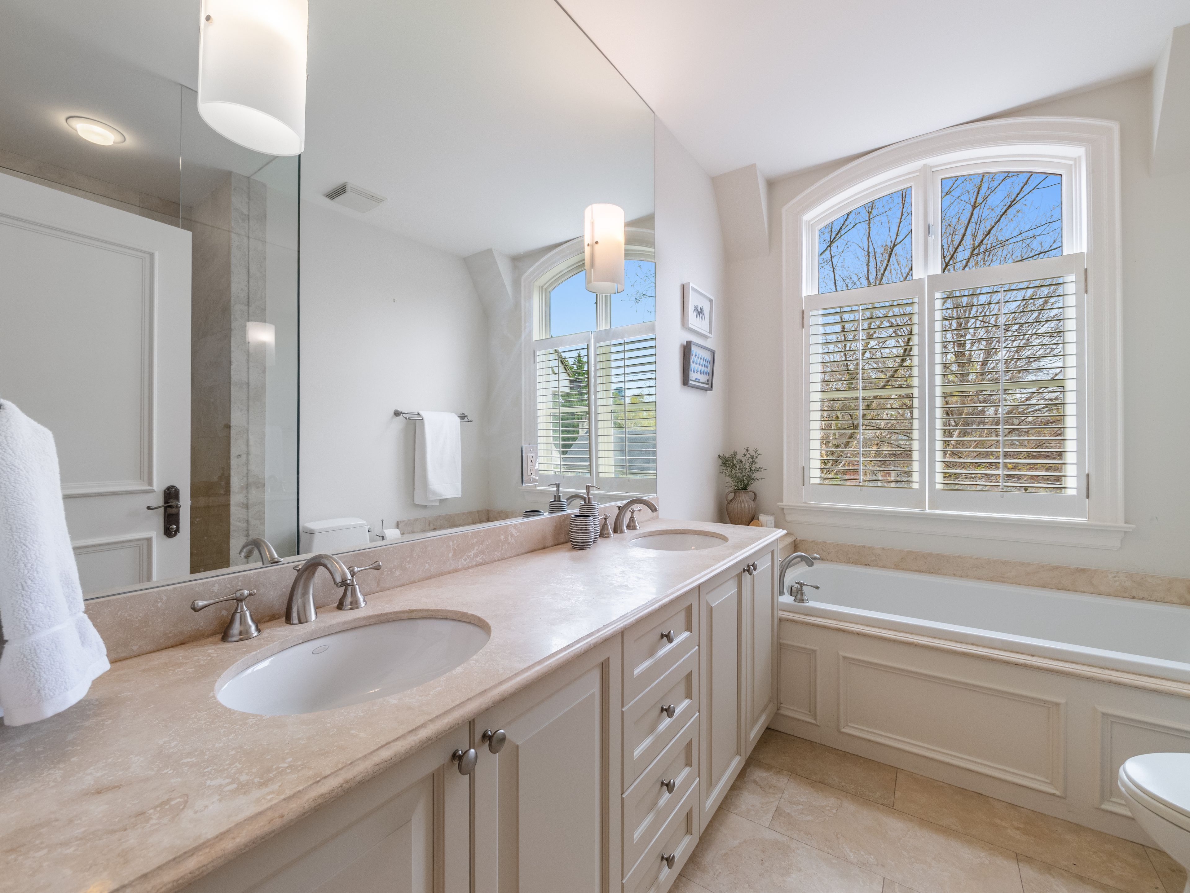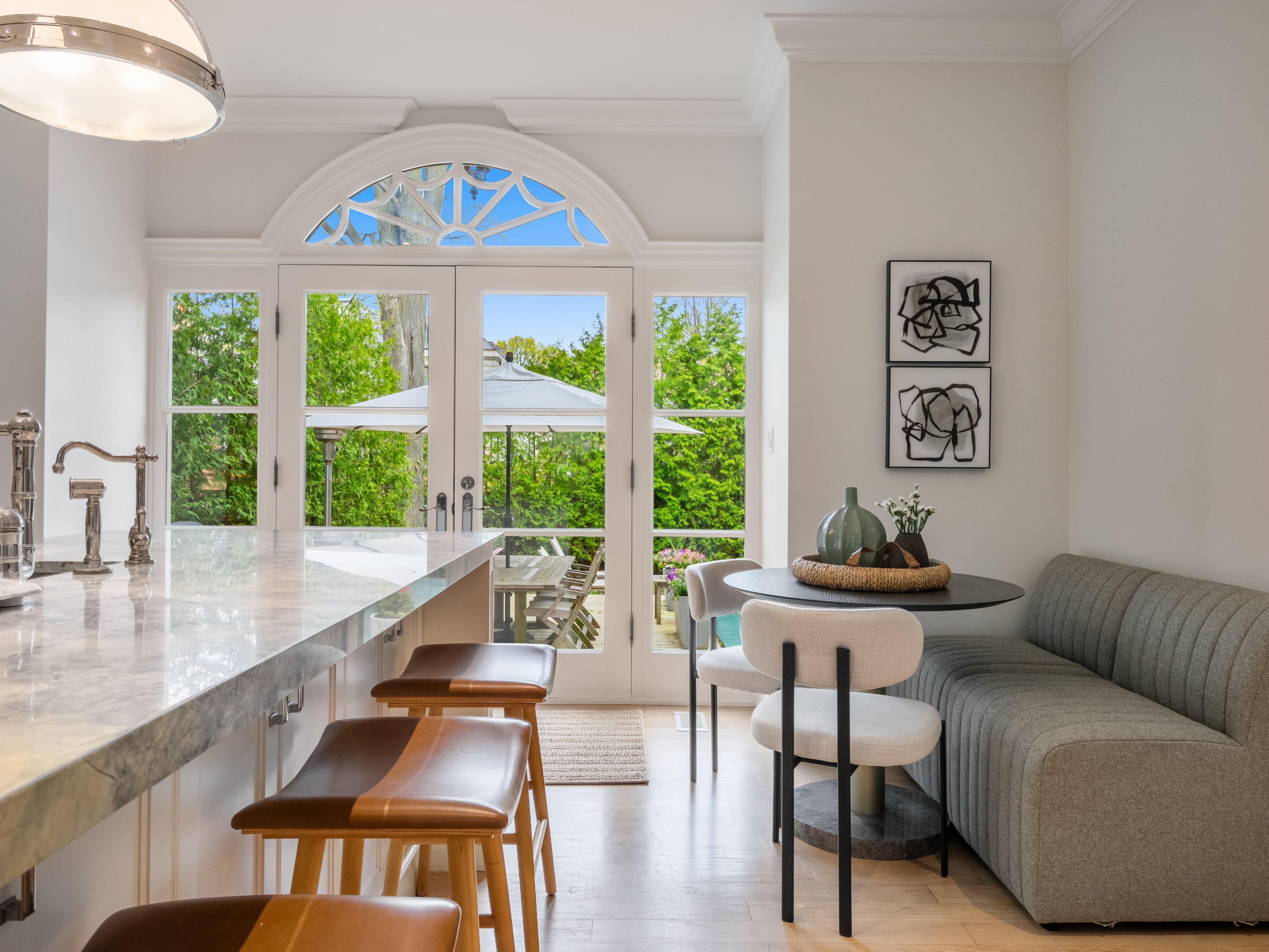 • Light blonde oak flooring and expansive windows fill the home with sunlight.