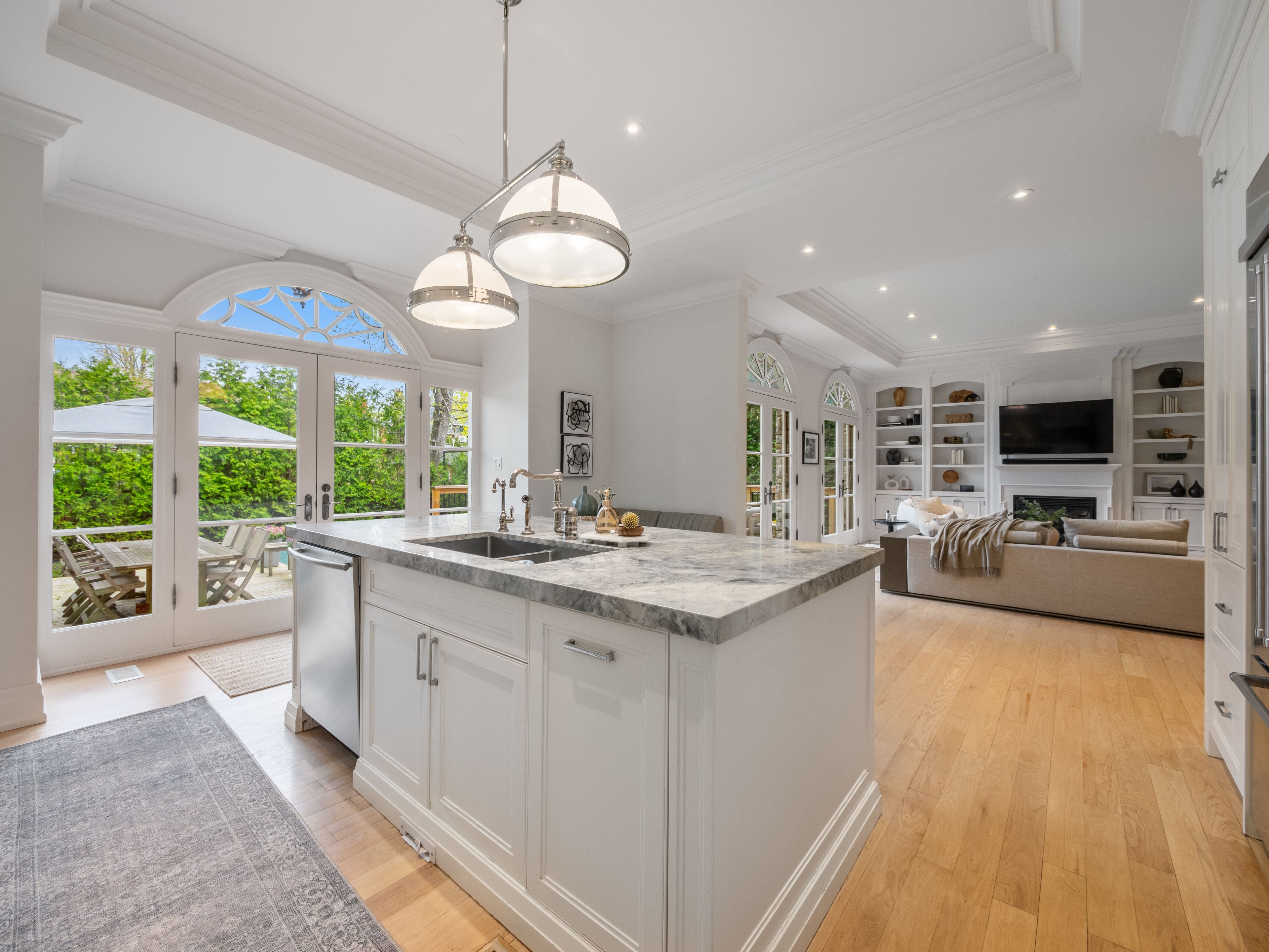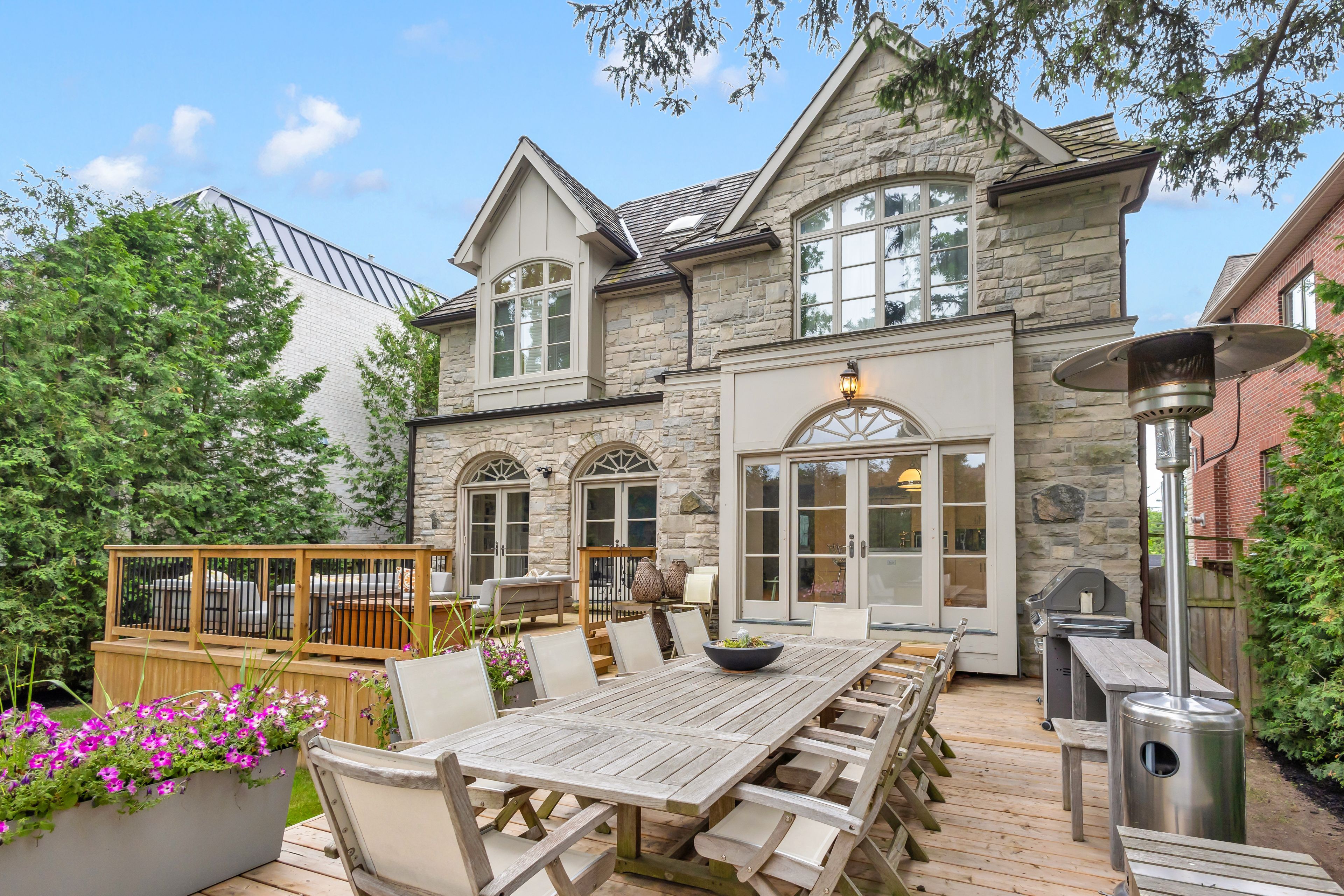 • Newly constructed walkout deck with fire pit overlooking a private backyard.