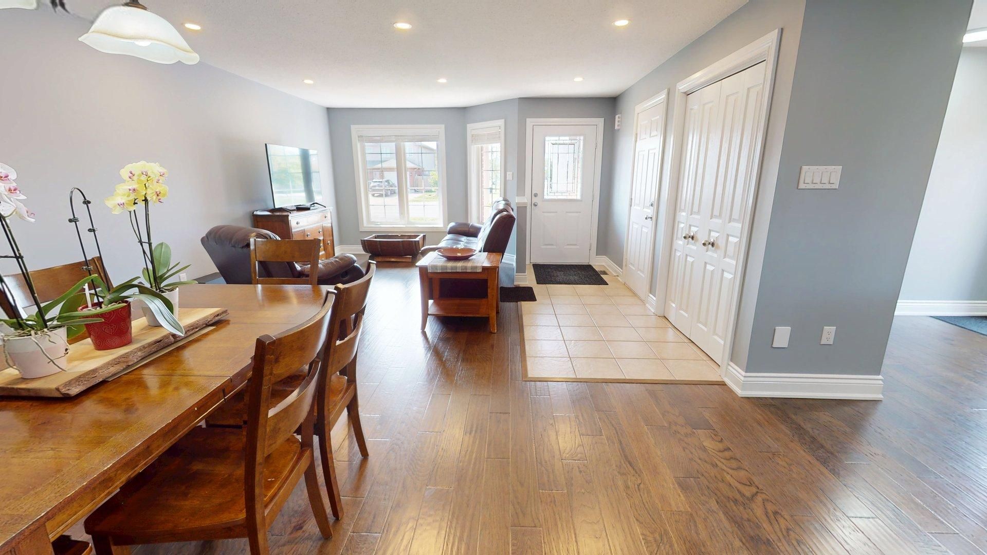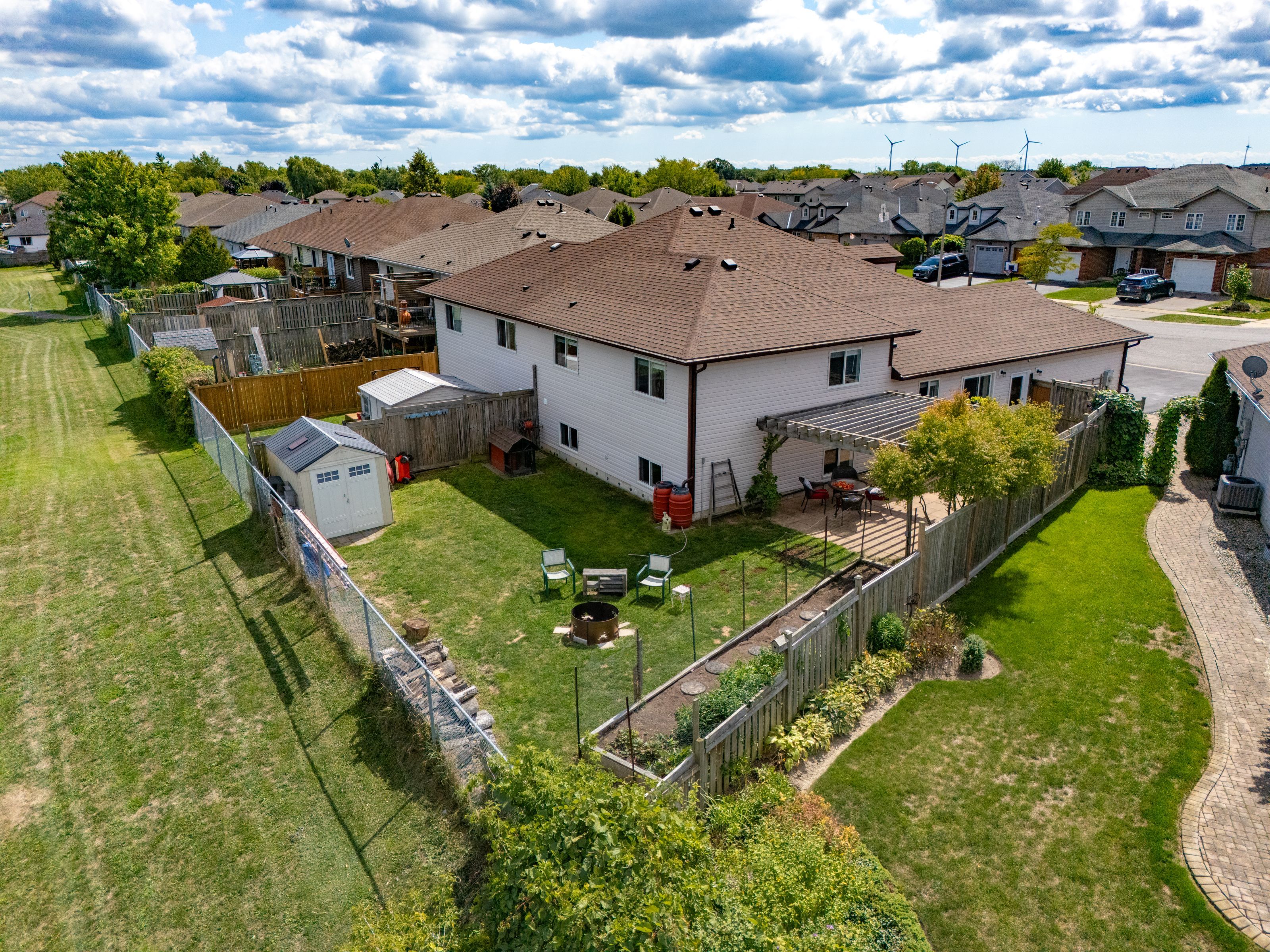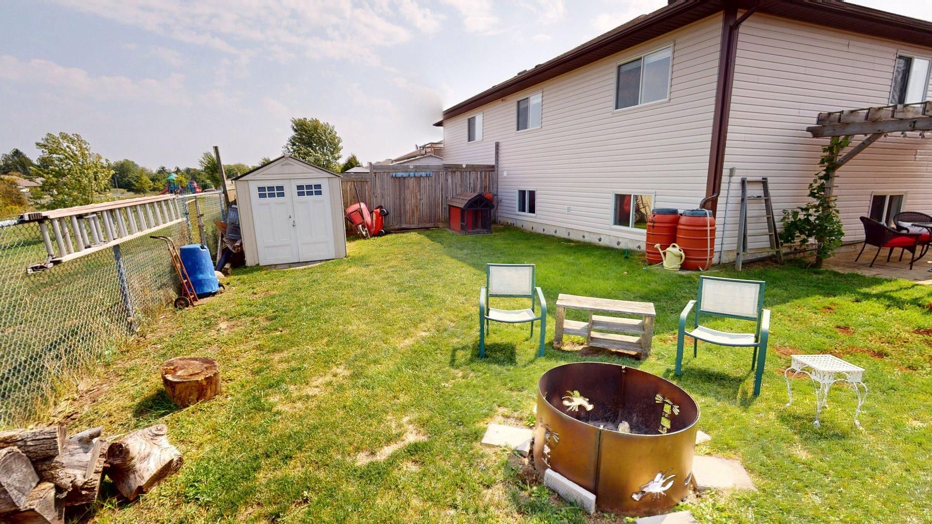 Spacious 1,240 sq. Ft. Home with attached garage, offering great comfort and functionality inside and out. Features include a bright living space, durable engineered hardwood and vinyl flooring, and plenty of storage solutions. The garage is equipped with modular shelving, a ceiling fan, a 220v digital heater, and a 60-amp breaker line for extra power needs. Outdoors, enjoy a custom stainless steel fire pit and a landscaped yard designed for year-round use, backing onto greenspace for added privacy. Added value comes with extra flooring materials, spare shingles, and additional appliances to support easy maintenance and convenience. A practical home that's ready for everyday living. Garage and home was newly renovated in 2021, roof was replaced in 2020.