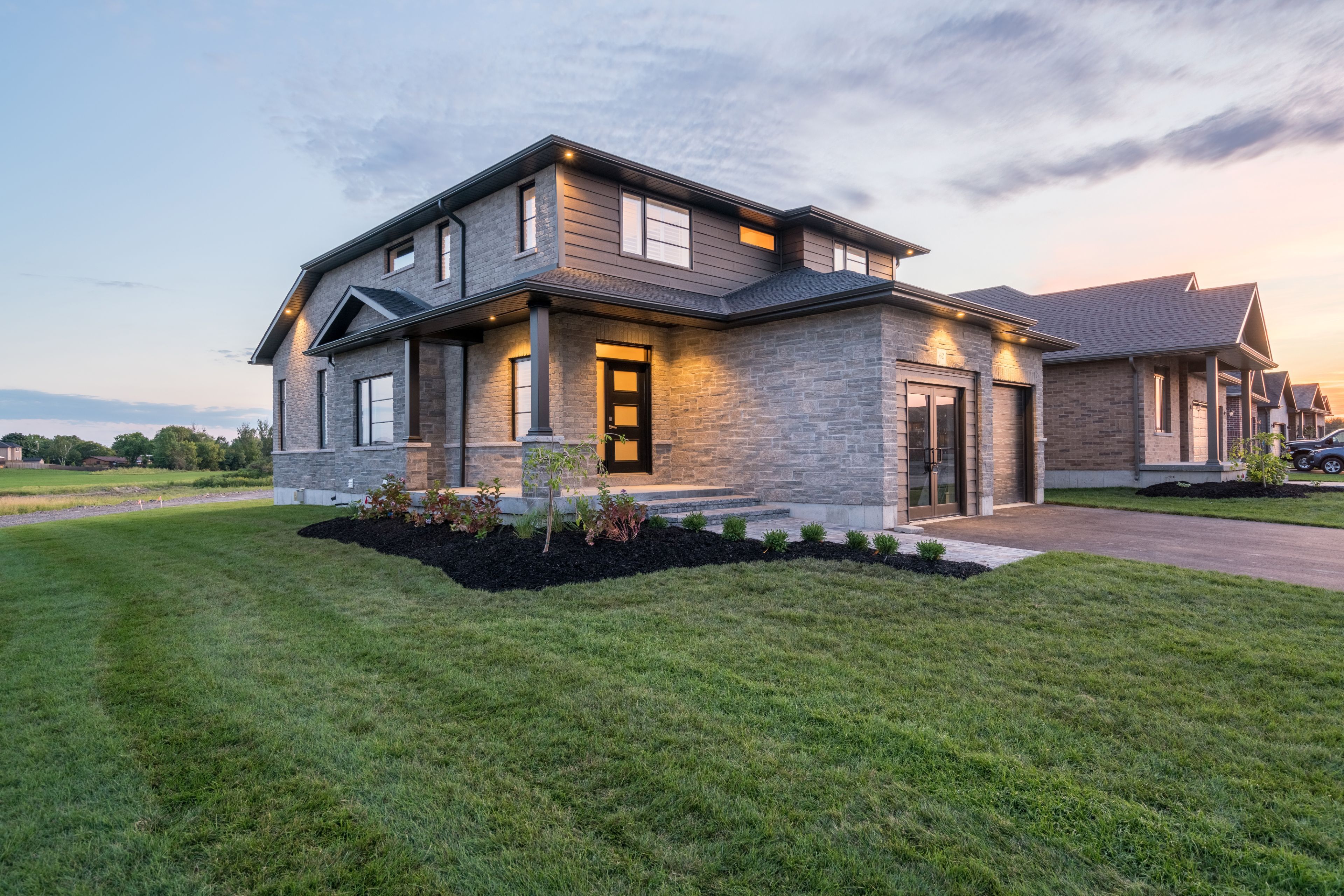 Duvanco model home open sunday 2-4pm - step into your dream home where elegance meets comfort in this stunning 4+1 bedroom, two-storey brick masterpiece! The heart of this newport design is the open-concept main floor featuring a spectacular great room crowned with soaring vaulted ceilings and warmed by an electric fireplace. The white kitchen dazzles with a corner pantry, hard surface counters, stainless appliances, and a generous island perfect for morning coffee or friday night entertaining with breakfast area. Your guests will be impressed by the dedicated dining room showcasing sophisticated coffered ceilings. You will love the spacious dedicated mudroom that connects seamlessly to your double-car garage. Upstairs, convenience reigns with second-floor laundry and a luxurious primary suite boasting a spa-like ensuite with double vanity, glass and tile shower, plus a generous walk-in closet, 3 spacious guest room with a 4pc bath. The fully finished basement transforms into your personal retreat with a cozy recreation room anchored by a natural gas fireplace, bonus bedroom, and three-piece bath. Nestled in the desirable settler's ridge community, you'll enjoy bird park practically at your doorstep and easy access quinte mall, and black bear ridge golf resort. With shopping and dining nearby, plus quick highway access and just fifteen minutes to canadian forces base trenton or the bridge to prince edward county this location truly offers the best of both worlds.