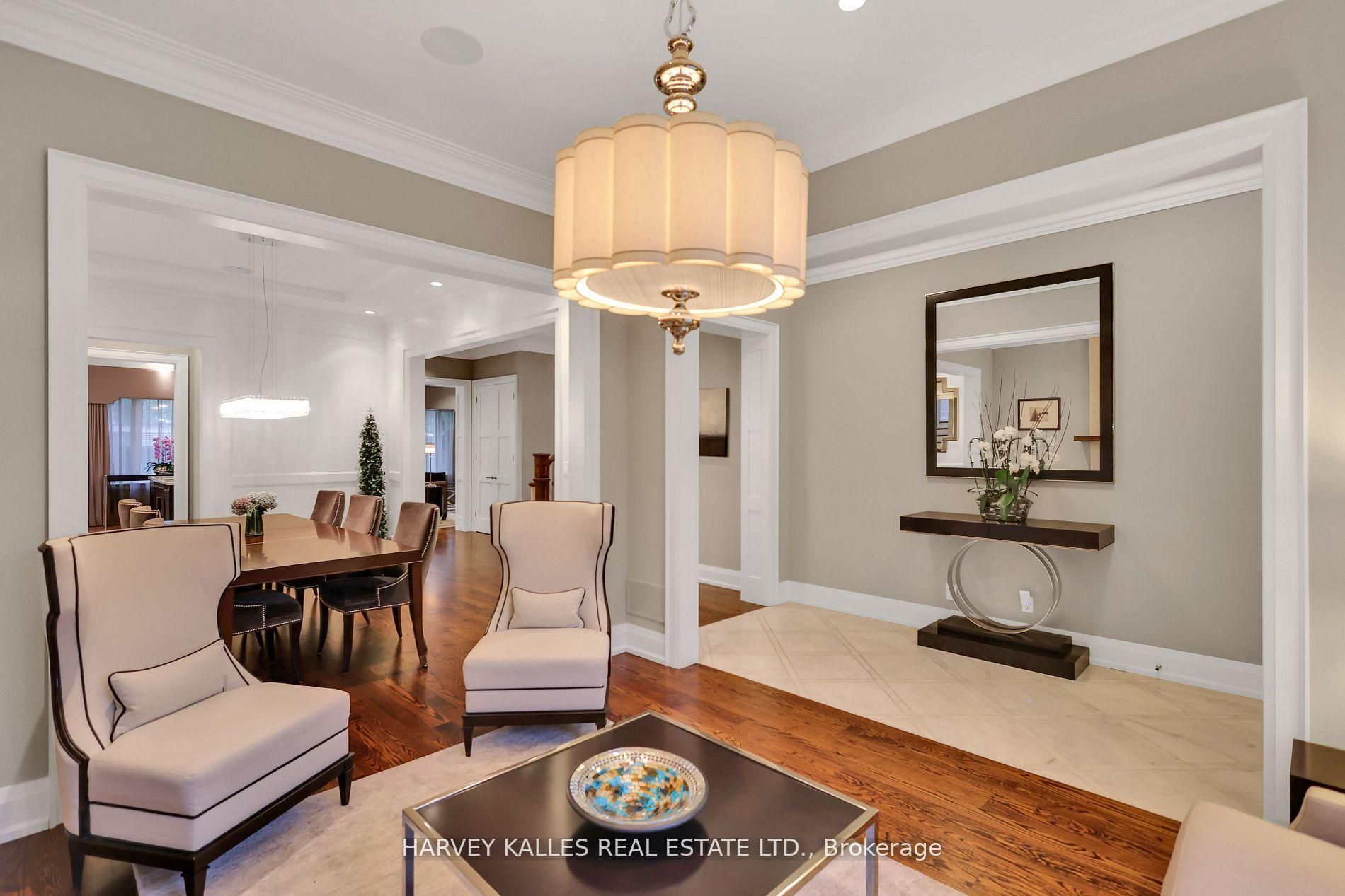 Welcome to the finest of deer park. This stunning custom-built home shows like new and has been lightly lived in, featuring soaring ceilings and plenty of entertaining space throughout the main level with large dedicated living and dining rooms connected by a walkthrough pantry to a chef's kitchen with custom cabinets by petrolia, breakfast bar, superior finishes, and high-end appliances. The kitchen opens to an inviting family room with a luxurious feel, designed for both relaxed living and effortless entertaining, and offers a seamless walkout to a professionally landscaped yard that serves as a prime backdrop for hosting friends and family or simply enjoying your outdoor escape. The second level offers a spacious primary suite with a dreamy walk-in closet complete with dressing table and a spa-like ensuite, plus additional sizeable bedrooms with ensuites and a sophisticated study perfect for working from home or quiet reflection. The lower level includes impressive extras such as a professional gym, temperature-controlled wine cellar with capacity for 700 bottles, guest suite, and a large recreation room with wet bar and plenty of space for a games table or whatever you desire, along with a laundry room, and expansive mudroom with built-in storage, plus access to the built-in garage and side entrance. Steps to the best of yonge and st. Clair, top schools, casa loma, ttc, and easy access to downtown and more. This is a must-see home!