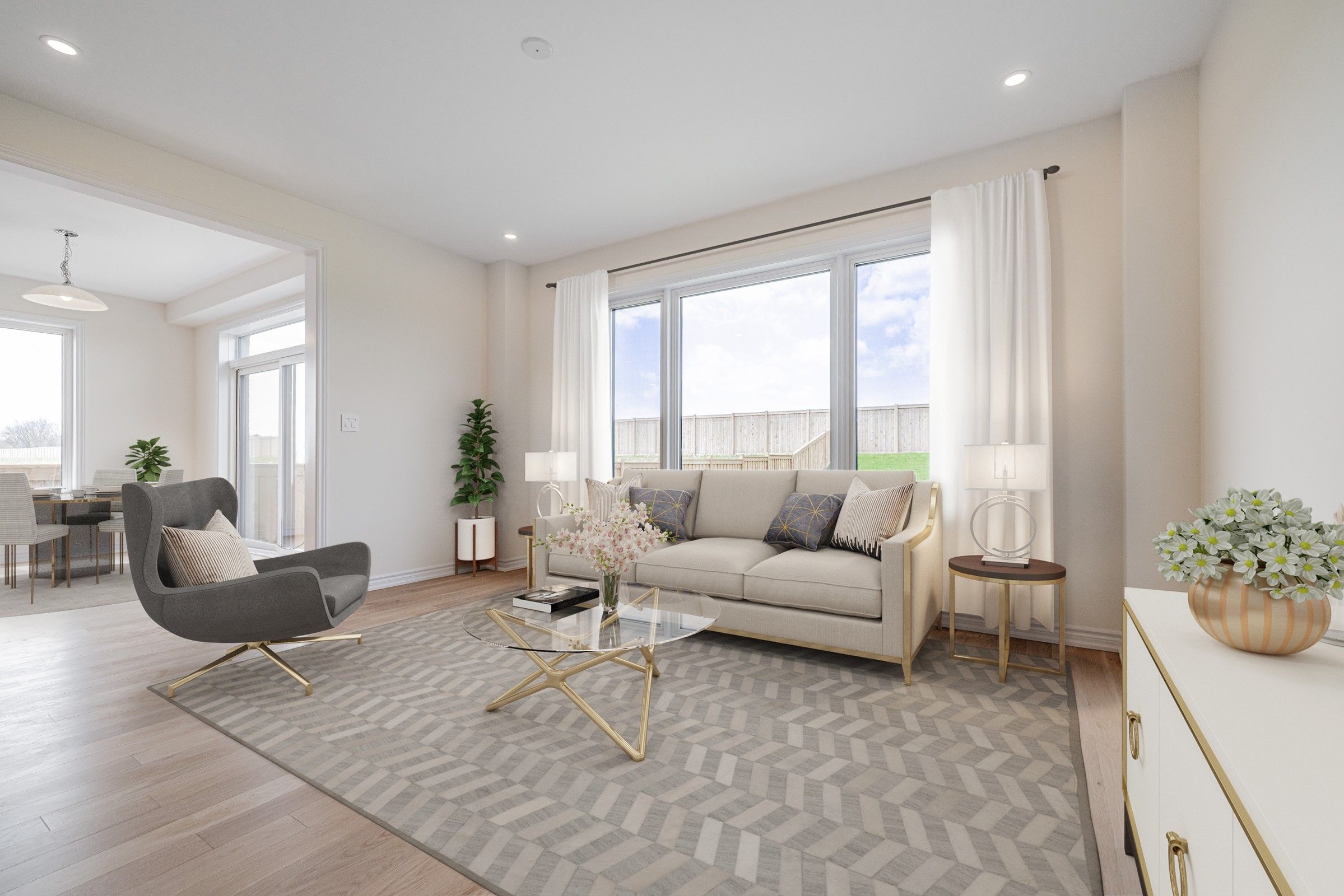 • Spacious chef-inspired kitchen with quartz countertops and generous island space.