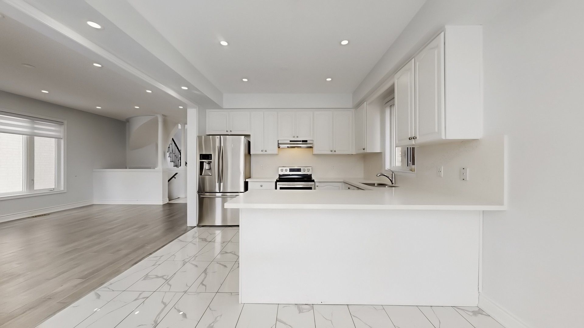 Stunning 3-bedroom, 3-bath home fully renovated. This beautiful home is guaranteed to impress. Tens of thousands have been spent on upgrades, offering a perfect blend of style and comfort. Step inside to find hand-scraped wide plank hardwood floors and a striking oak staircase that anchors the two-storey foyer and main hall. Upgraded railings and gleaming porcelain tiles carry through the kitchen, bathrooms, and laundry room. The gourmet kitchen features quartz countertops and stainless steel appliances, making it a dream for both cooking and entertaining. The master suite includes a walk-in closet and a private ensuite, creating a relaxing retreat. Extended interlocking in both the front and back of the property adds curb appeal and elegance.