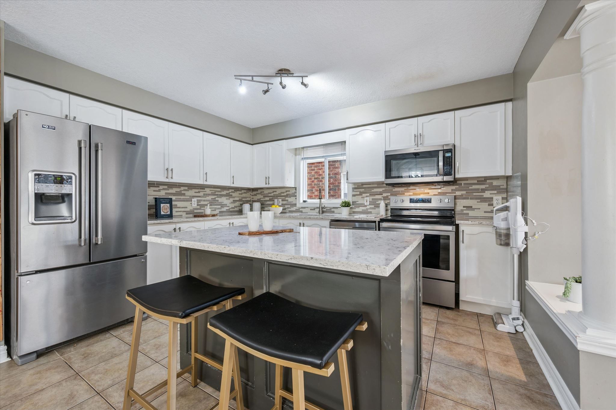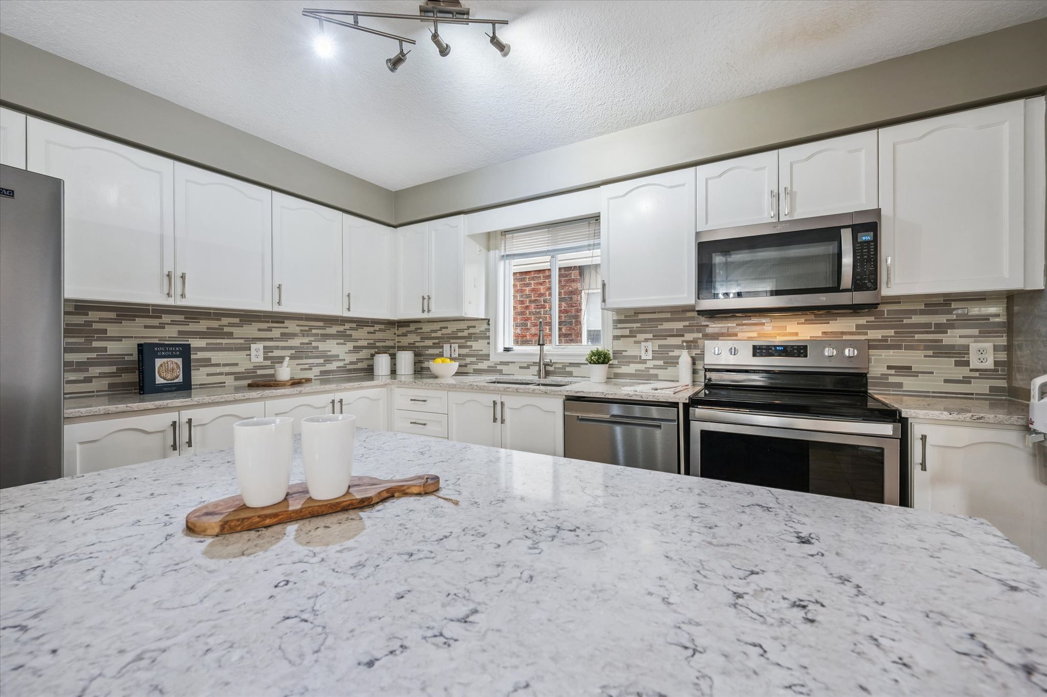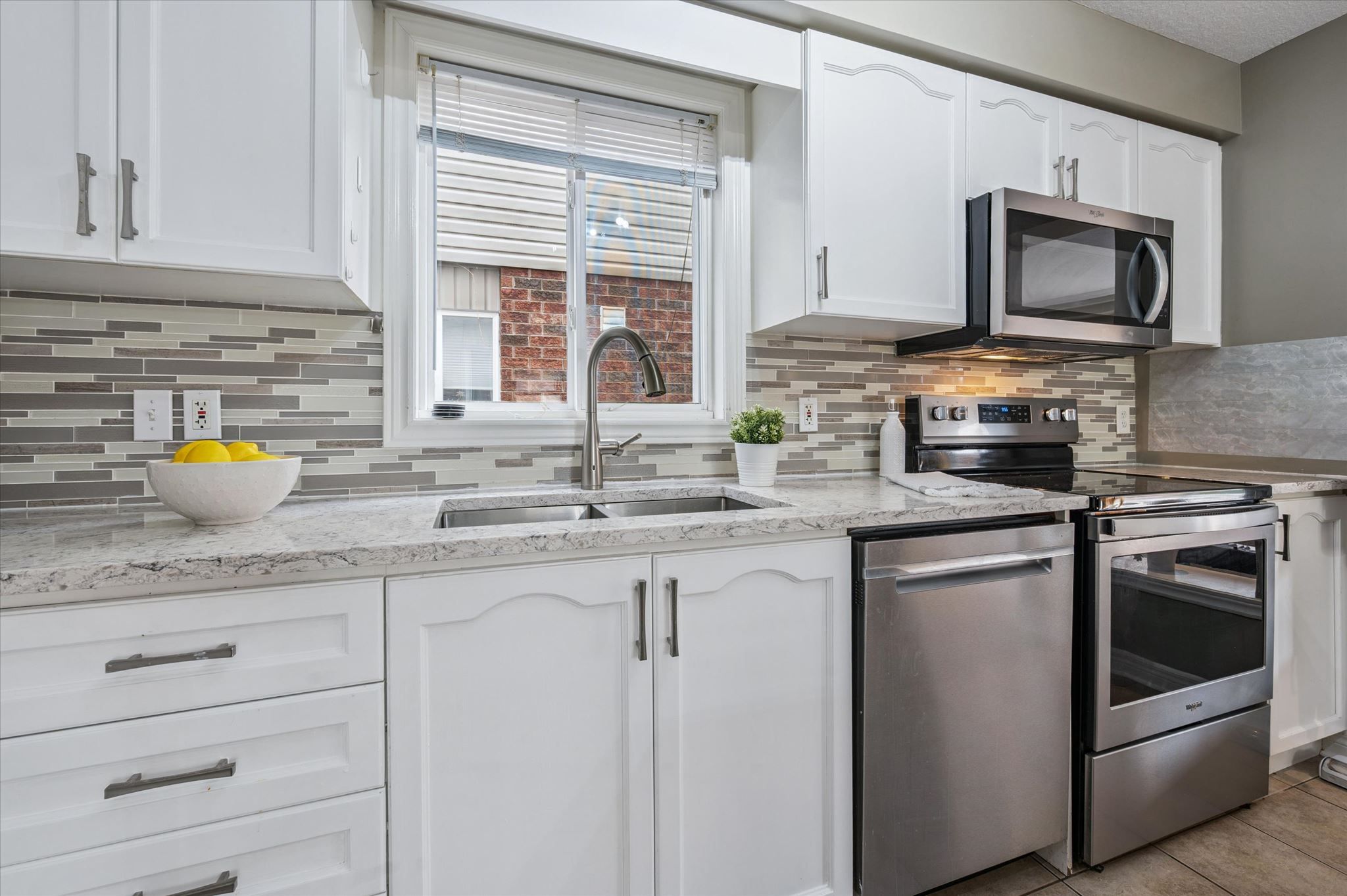 • Updated kitchen with quartz countertops and stainless steel appliances.