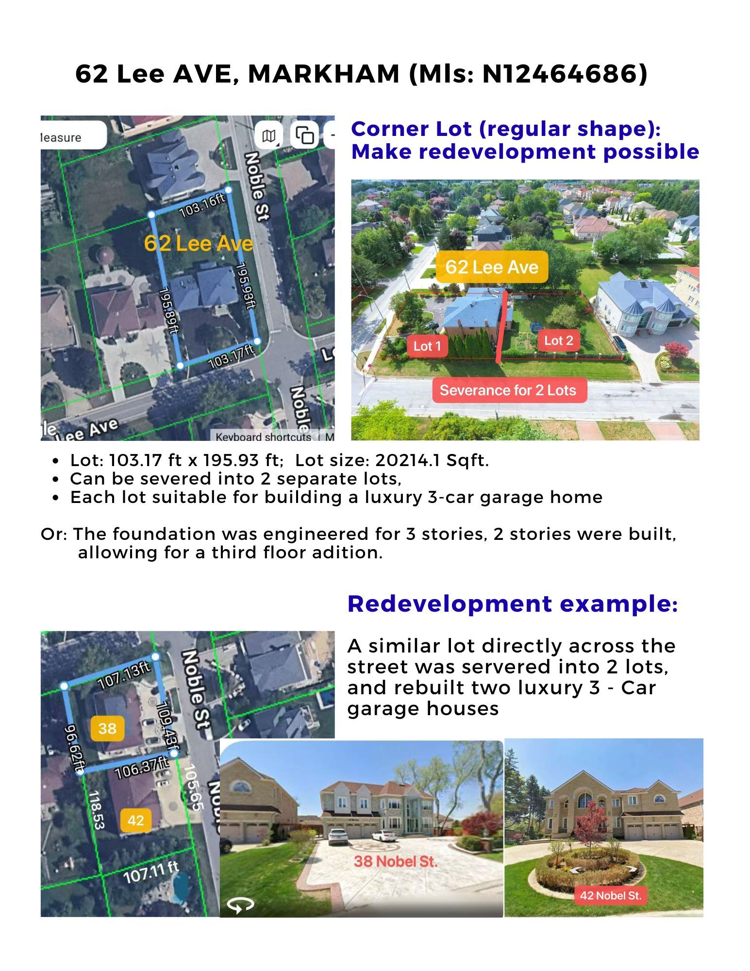 Rare find! Executive 3-car garage home situated on a premium half-acre corner lot w/a circular driveway & ample parking. This stunning 2-storey detached mansion offers over 6,000 sqft of living space, beautifully dressed in a warm, neutral décor throu-out. Enter the double doors and be impressed by the scarlett ohara staircase leading to 4 spacious bedrms. Enjoy separate formal living & dining rms, a private office & an oversized gourmet kit w/ a bright, banquet-style breakfast area. Large flr-to-ceiling windows fill the home w/natural light & offer beautifully landscaped garden views from every corner. The all-seasons solarium features skylights & wall-to-wall glass, creating a seamless connection to nature year-round. The lower level offers two separate entrances , two bedrooms, a 4-piece bath, laundry area. A massive recreation room perfect for family gatherings or multi-generational living. Built by an italian builder, this home is exceptionally solid & well-constructed, and has been meticulously maintained over the years $$$. Basmt features newly updated flooring. This premium corner lot offers excellent redevelopment potential. The regular-shaped lot is ideal for future severance into two lots, each suitable for building luxury custom homes. The property directly across the street has already been successfully severed and redeveloped into two luxury 3-car garage homes, confirming the strong severance potential of this site. This property represents an exceptional opportunity for builders, investors, or families seeking to create two prestigious residences in one of markham most sought-after areas. Top rank milliken mills h. S (fraser institute 2024 rank #16 in ontario; ib program ), close to 407, shopping malls, restaurants, supermarkets, t&t, clinics, etc.