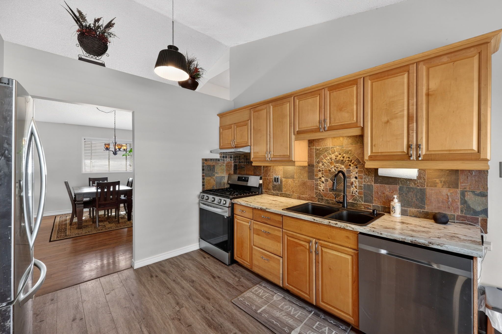 • Fully-fenced backyard oasis with a large deck for entertaining.