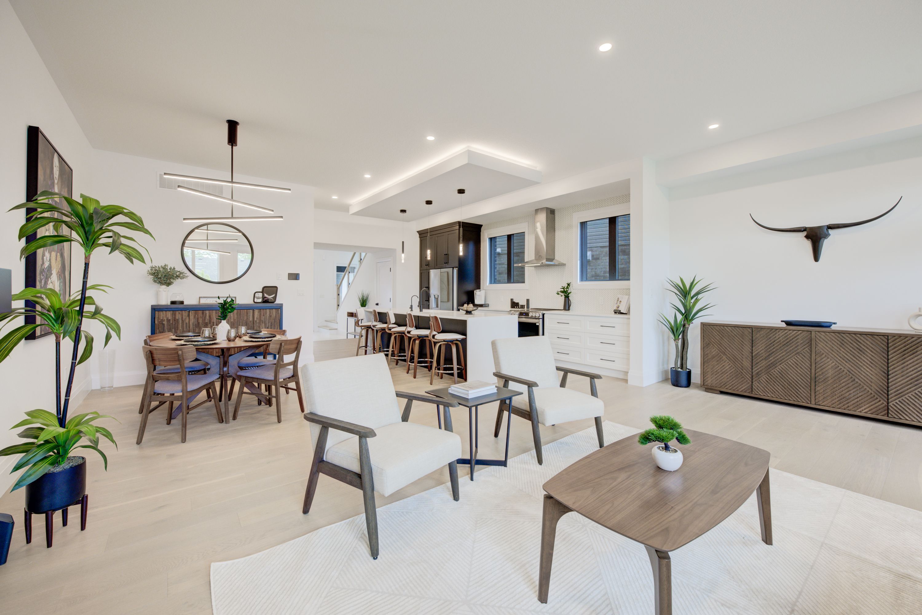 • Modern kitchen with oversized island and top-notch appliances.