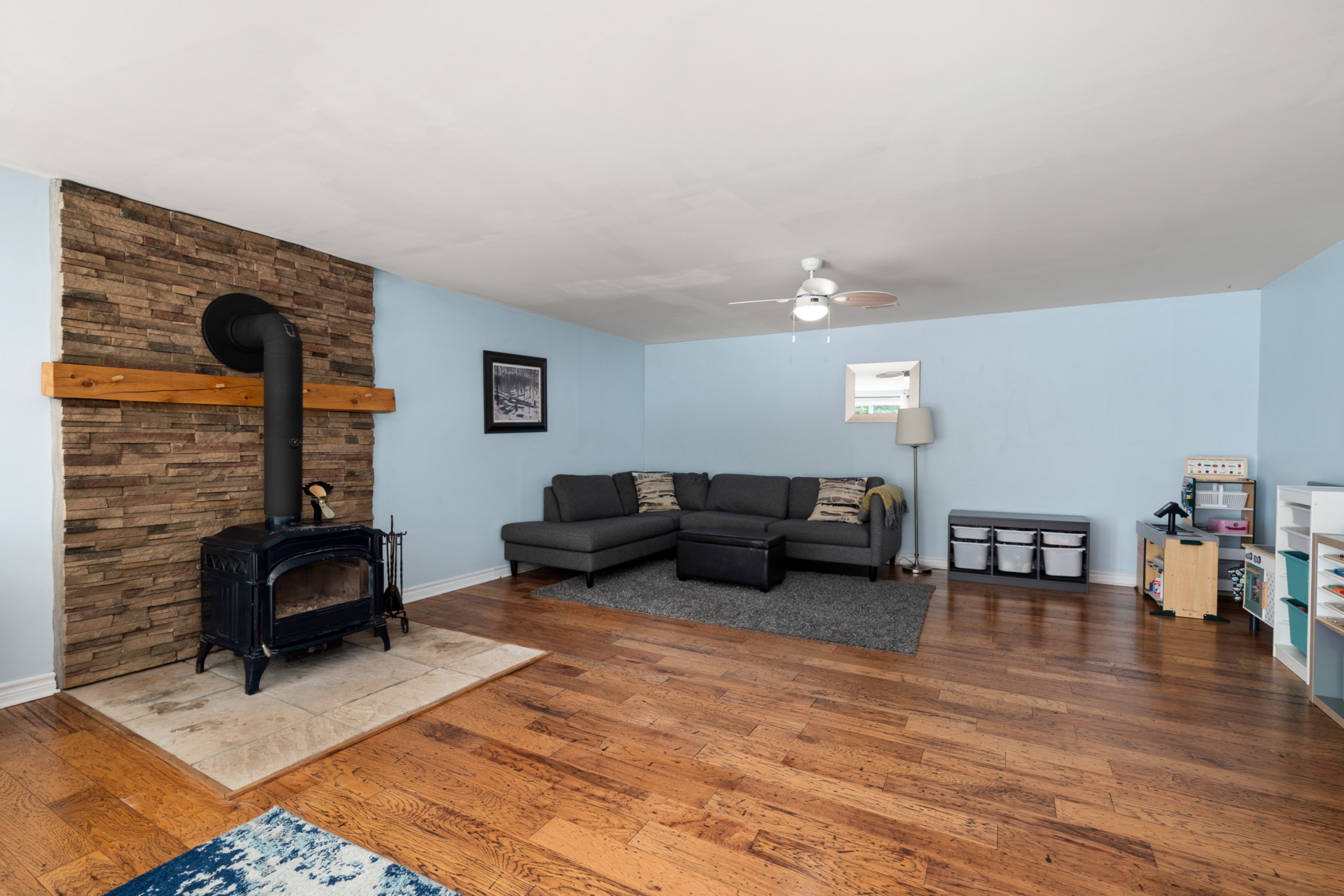 • Walkout lower level with a large rec room and wood stove.