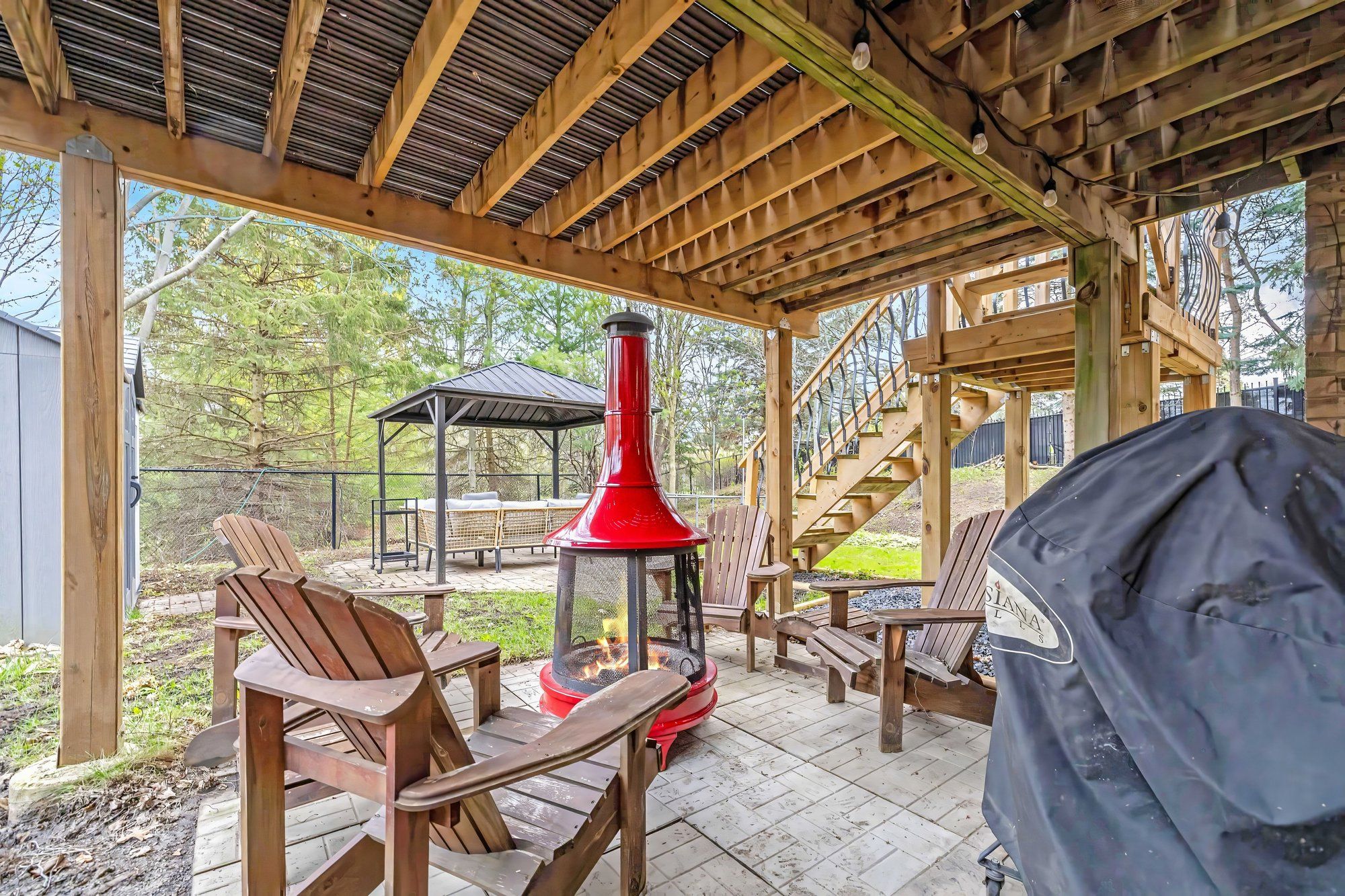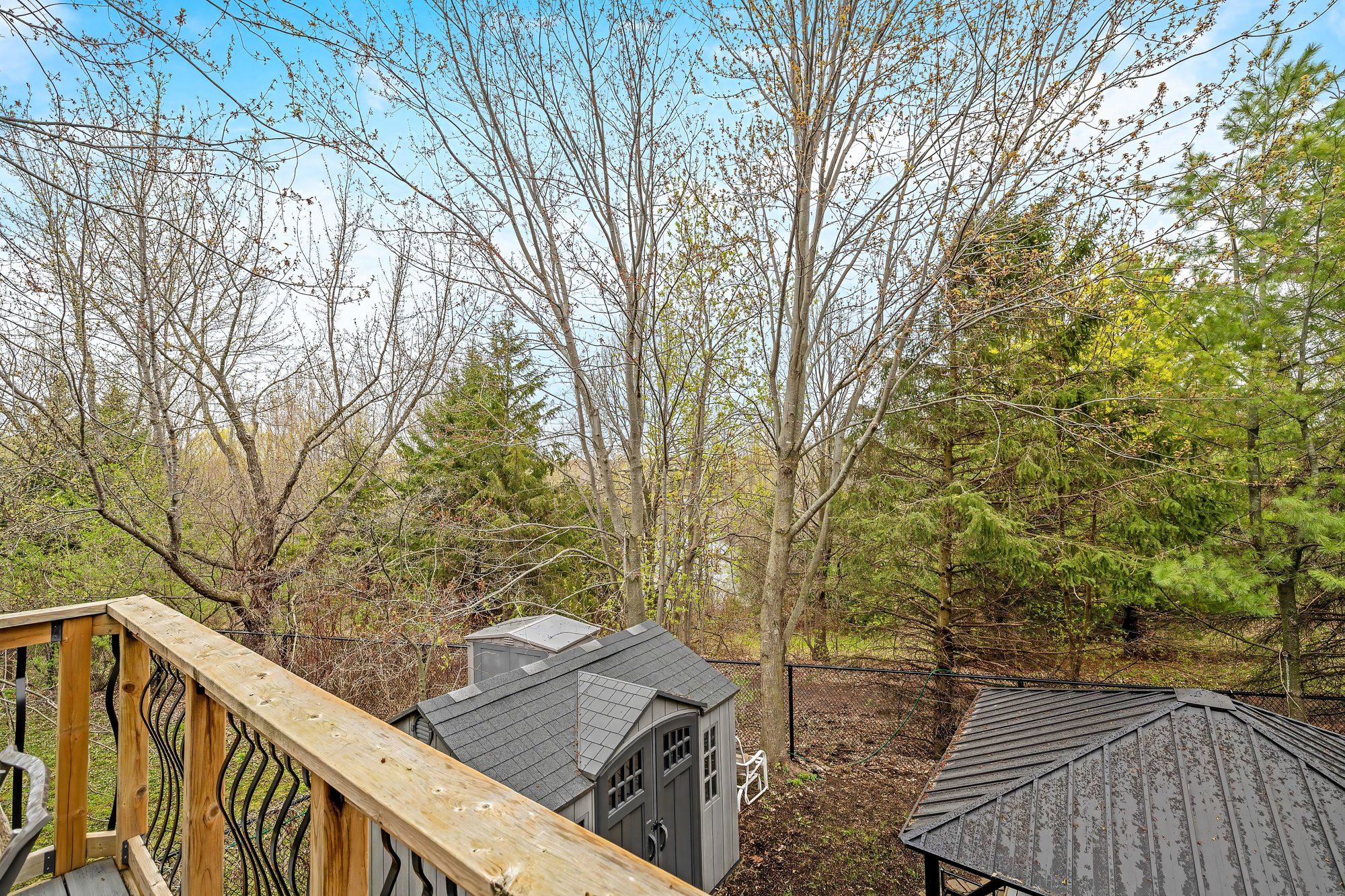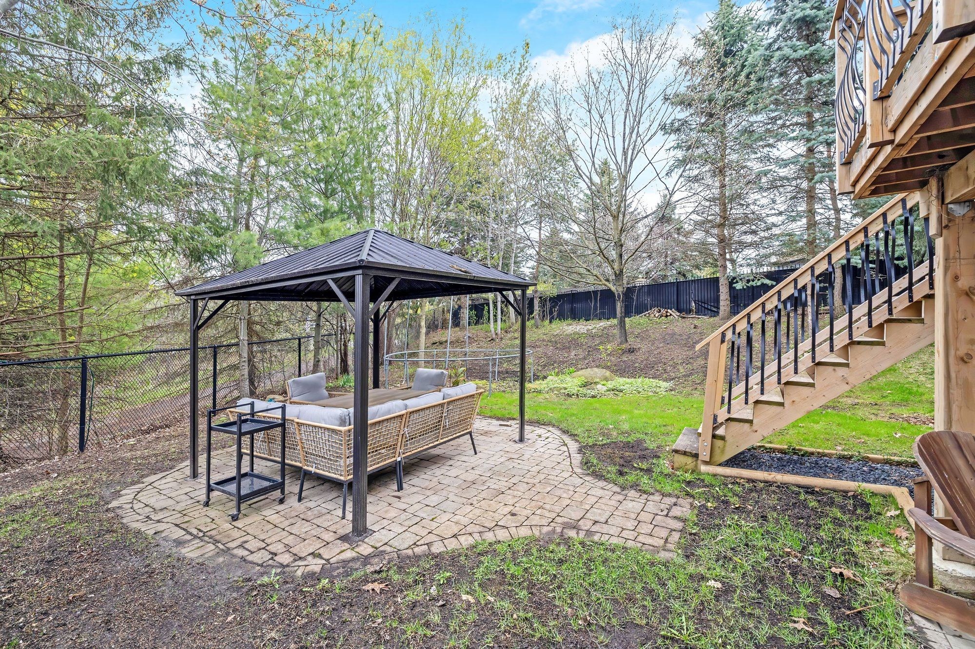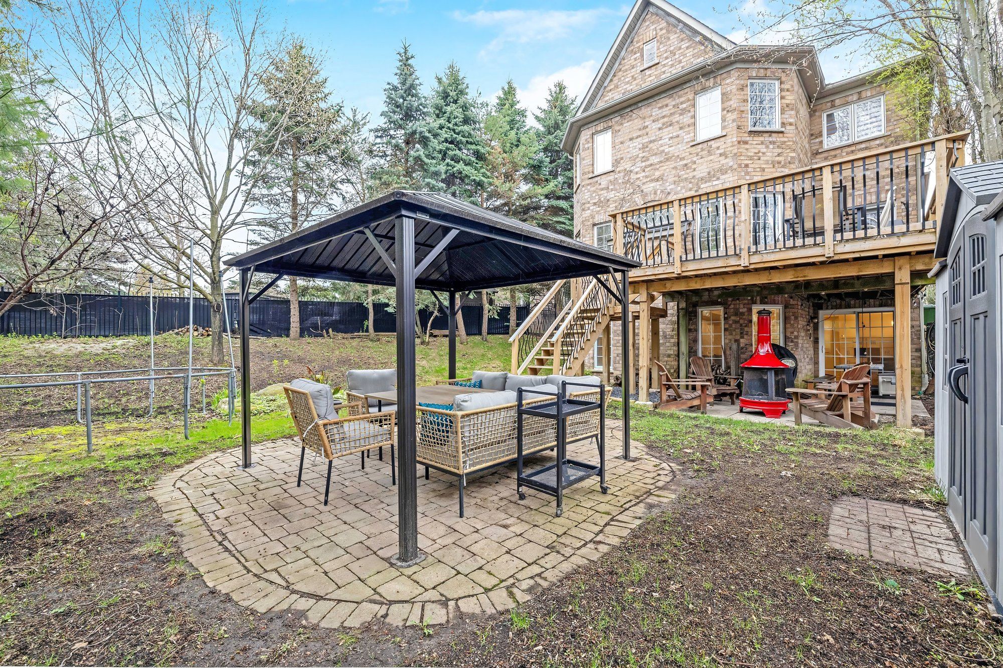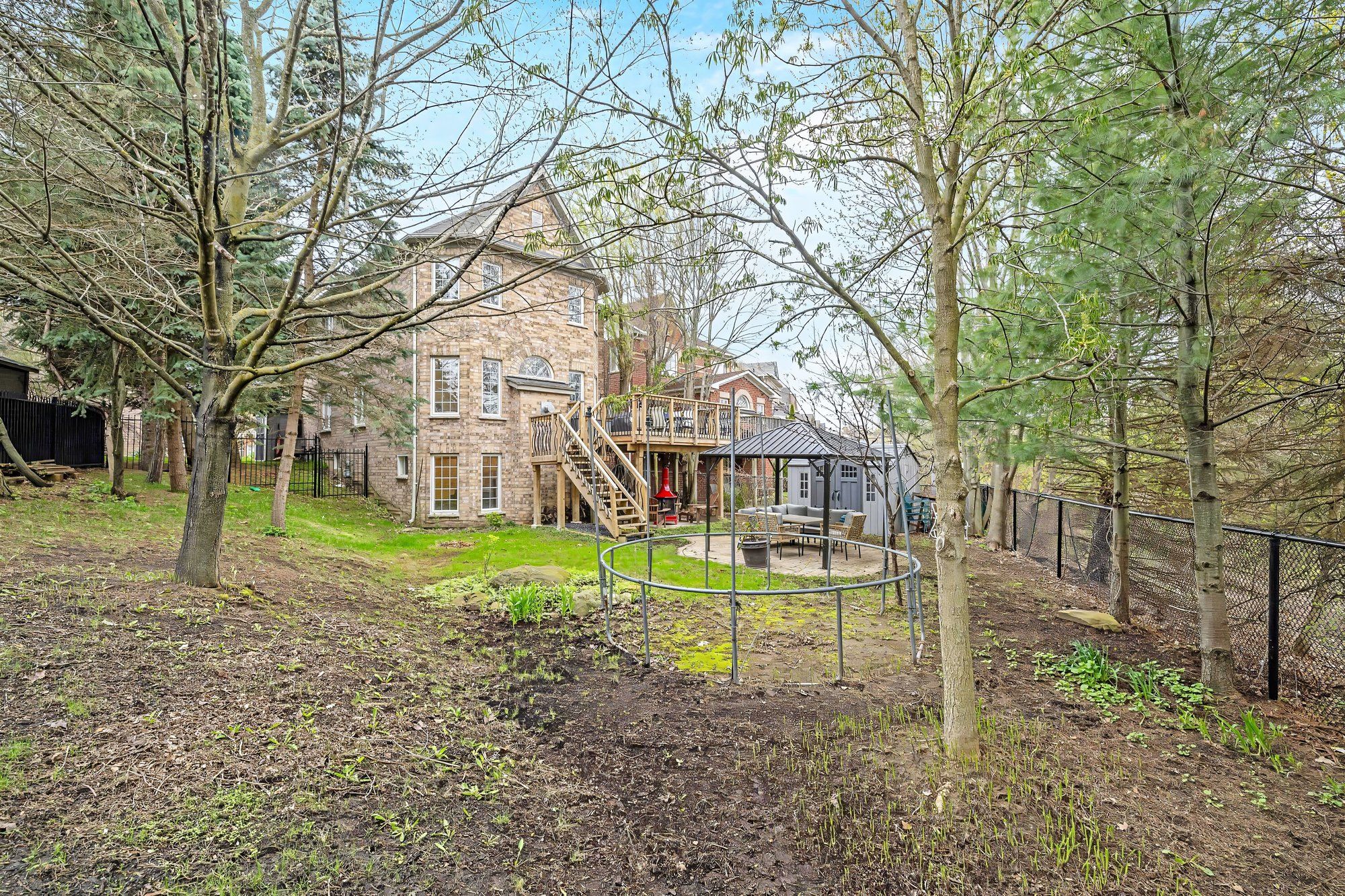 • Mature trees, gazebo, and pond views create an ideal outdoor retreat.