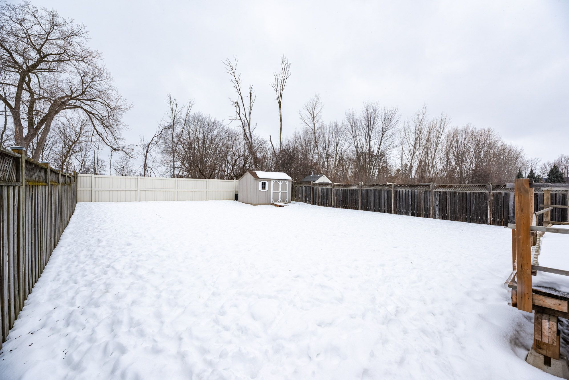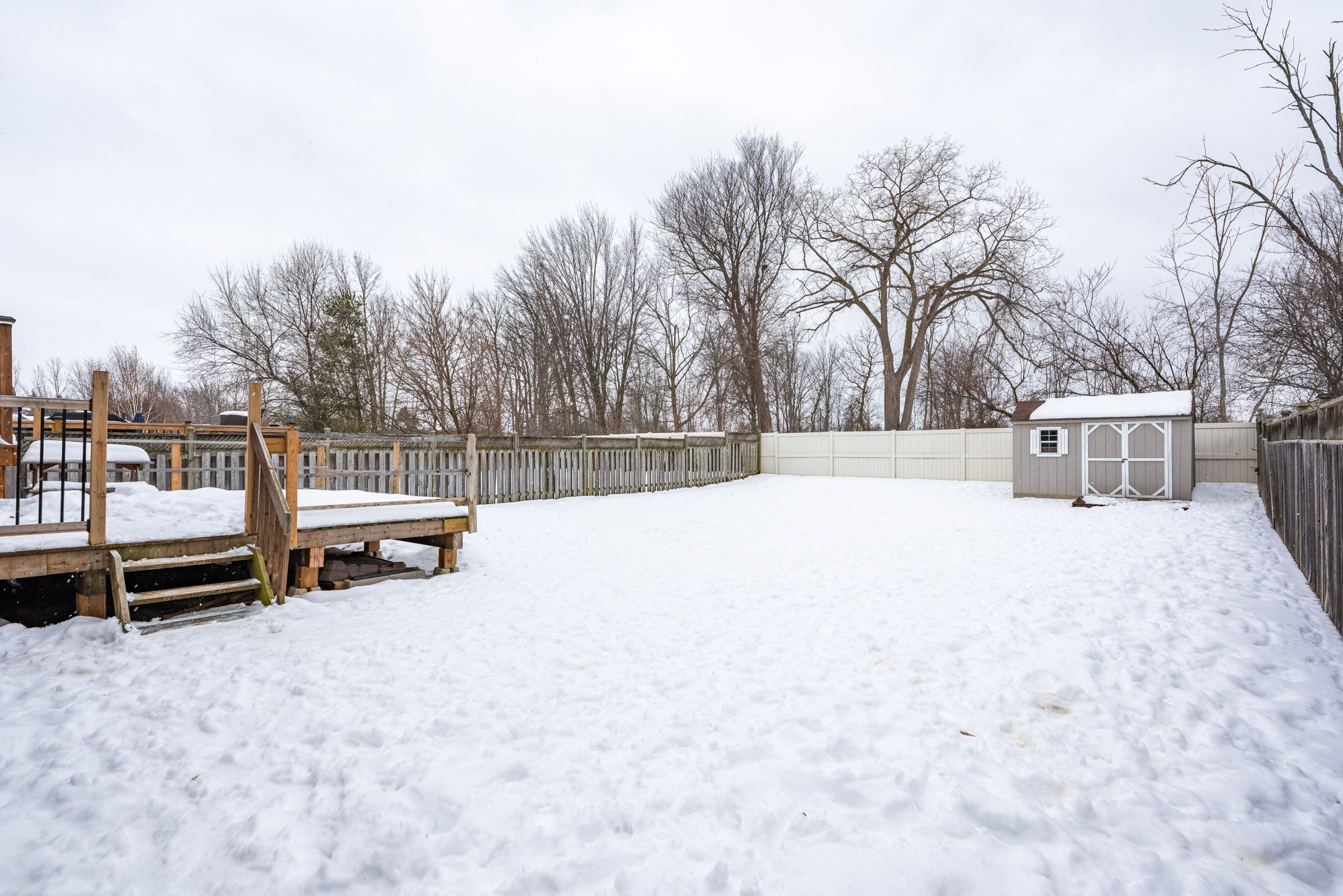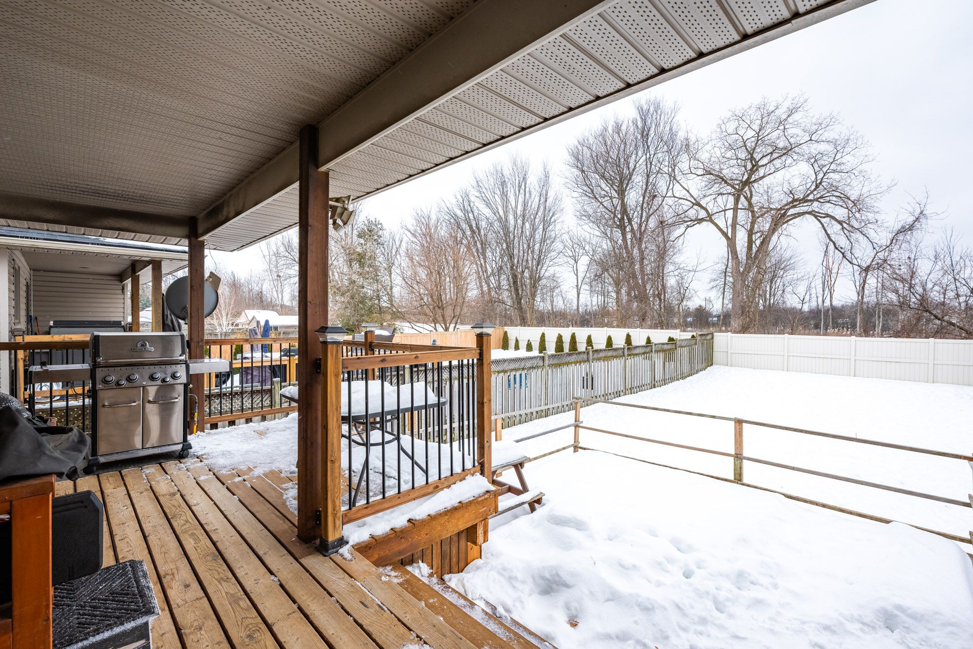 • Private lot backing onto trees creates a peaceful and serene outdoor setting.