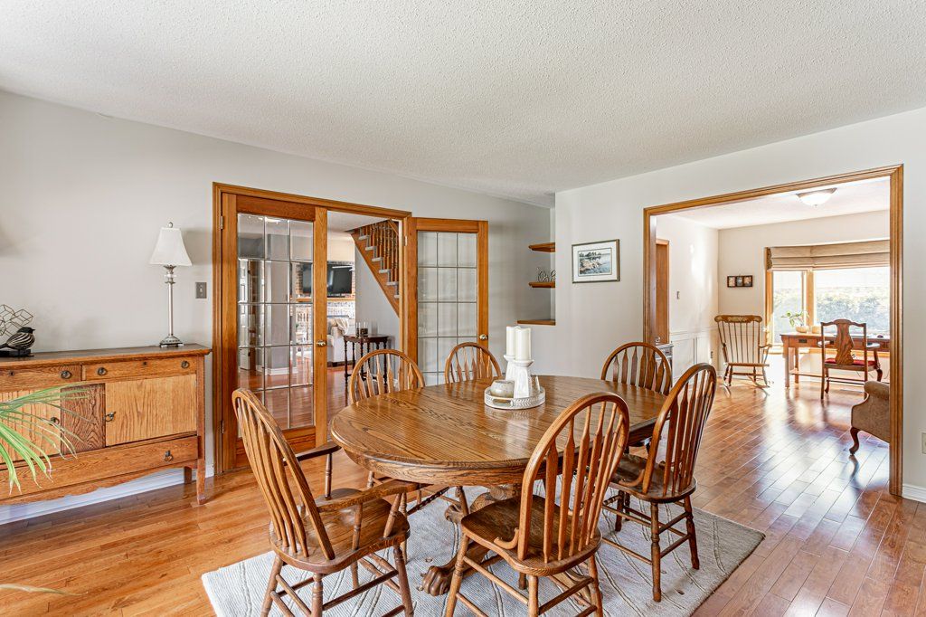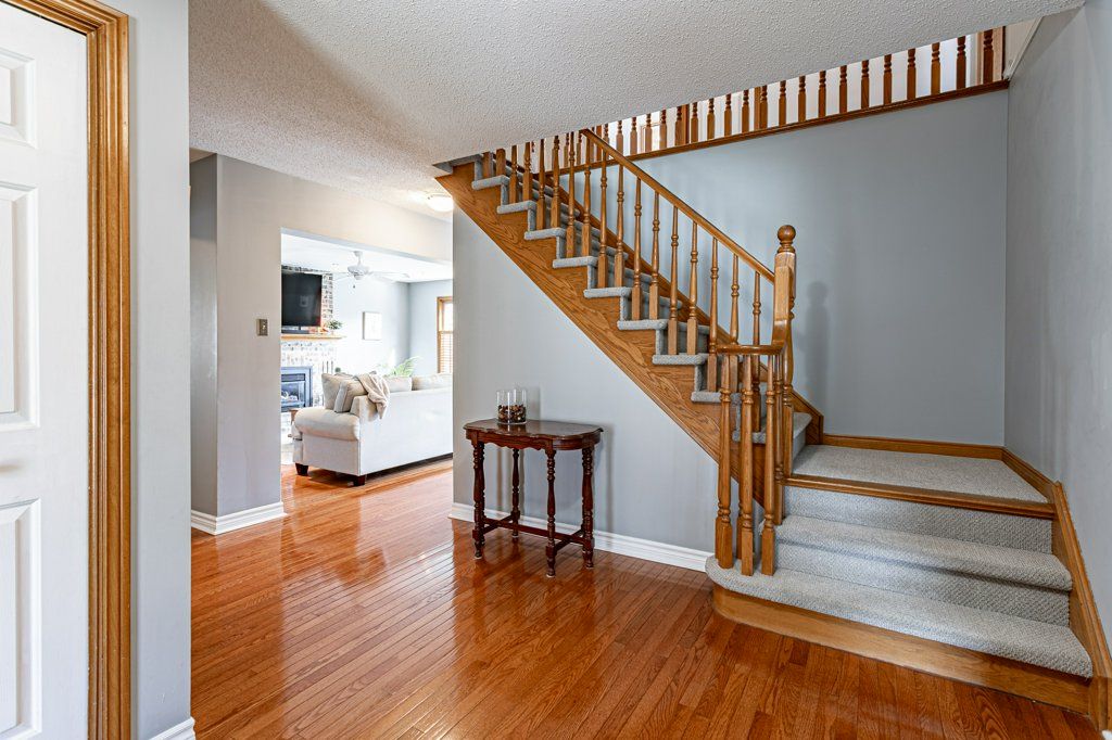 Welcome to 62 nanette in london's desirable stoney creek neighbourhood. Just minutes to masonville mall and situated near one of london's top elementary schools, jack chambers, this home is sure to invite the street's next fabulous home owners. On the main floor enter the large lobby area with hardwood and tile floors paving the way toward large principle rooms including 2 family rooms, dining room and the kitchen. Socialize in both family rooms, one open to the well thought out kitchen with gas stove, quartz counters and updated cabinetry and the other more formal or even a large dining area as featured here. Laundry, 2 pc powder room, garage access and side door combine utility provide additional function to the main floor. Natural light pours in through patio doors and large windows facing the backyard which open to the 34 x 16 foot inground pool (3ft shallow, 4ft deep). Upstairs the 4 large bedrooms offer space and light. The main bathroom and primary bedroom with ensuite and walk in wardrobe provide convenience and privacy. The basement adds additional recreation space, a 4th bathroom and possible bedroom. Updates include: verbeek kitchen & quartz counters (2014), furnace & ac (2005), basement renovation & 3pc bath (2025), garage doors (2008), side entry door (2020), roof (2018), oak hardwood in den and dining area (2011), vinyl windows (2010), pool liner (2000), winter pool cover (2024).