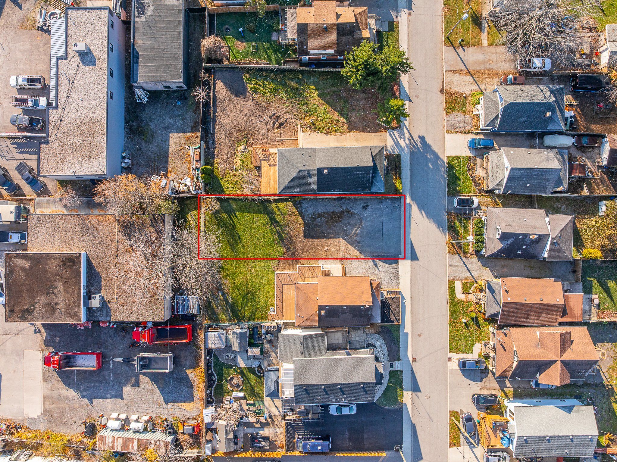 • Vacant lot on a quiet street, ready for new projects.