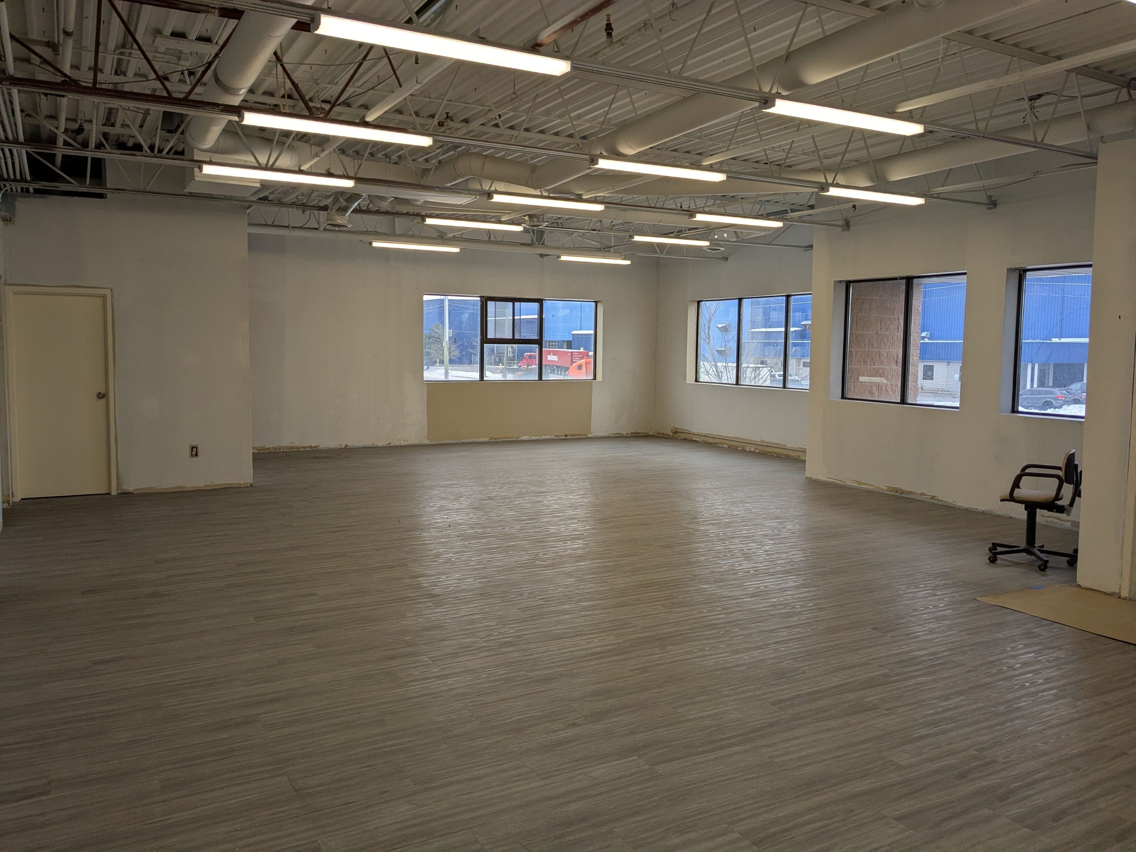 • Bright second-floor office space featuring large windows for ample natural light.