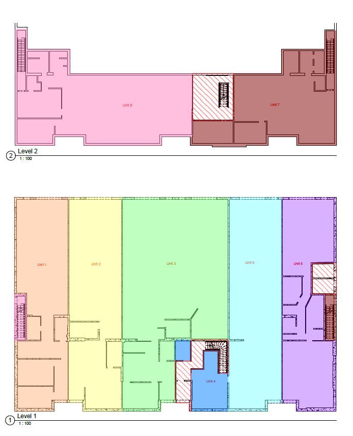 • Flexible industrial building with various spaces for different uses or rentals.