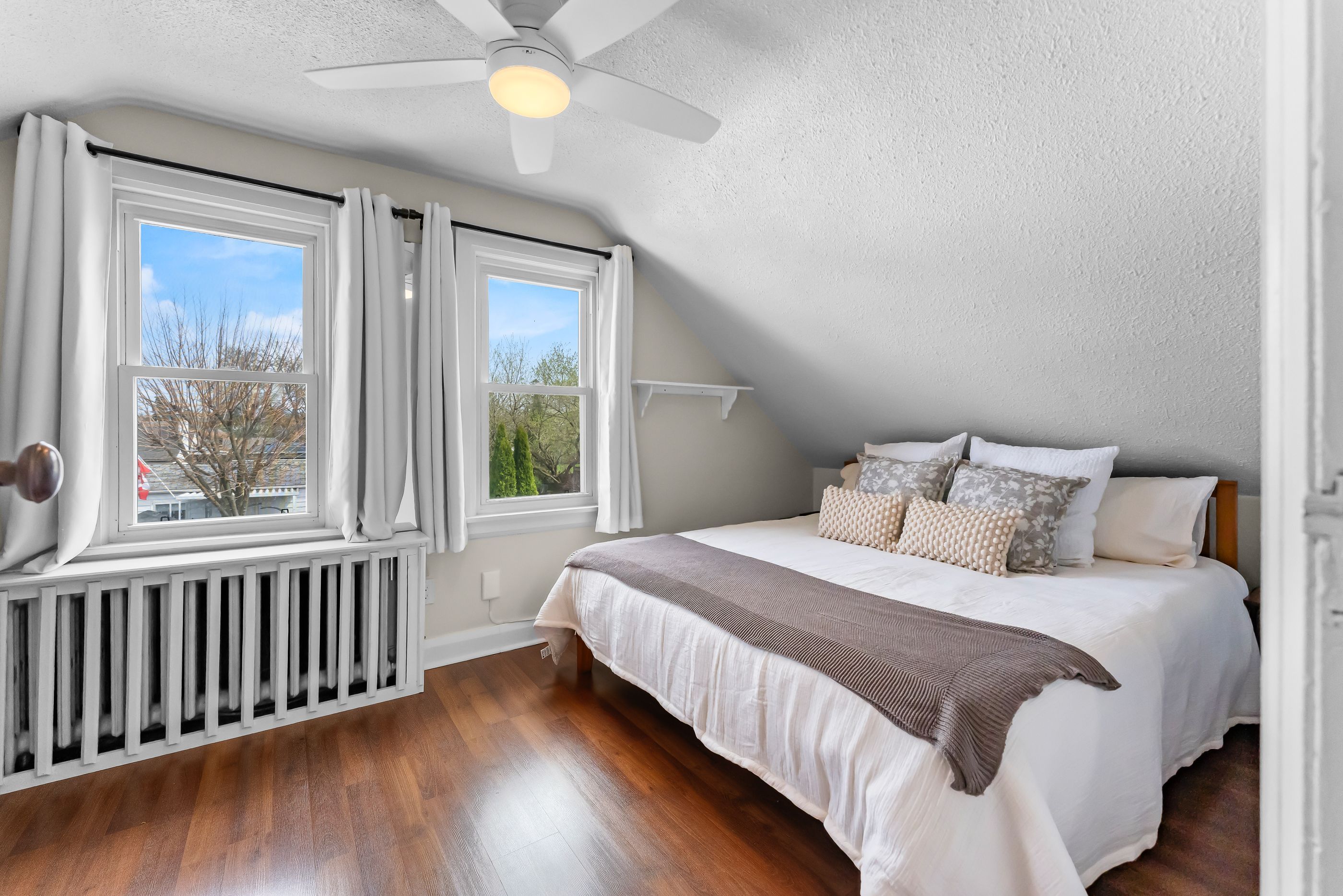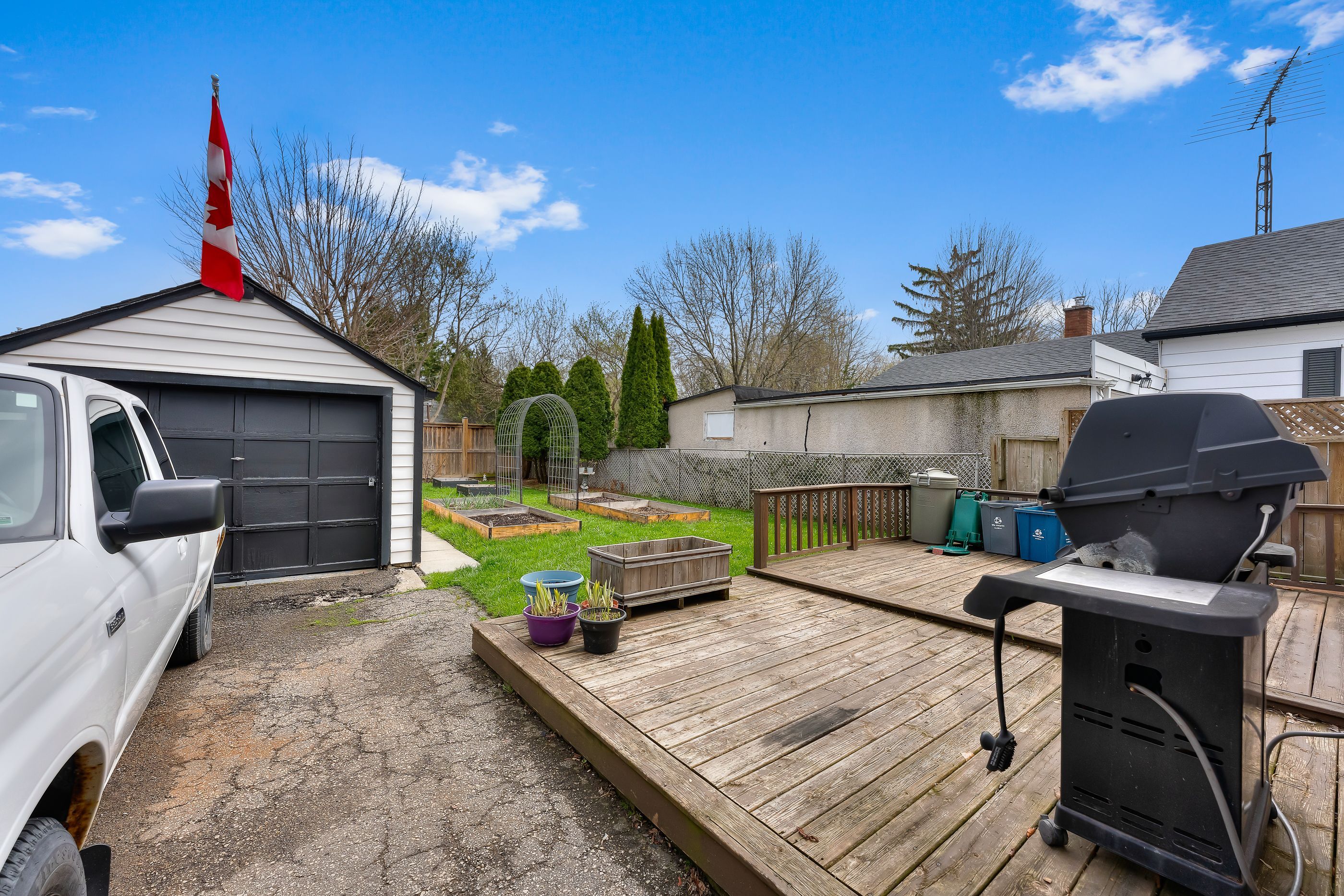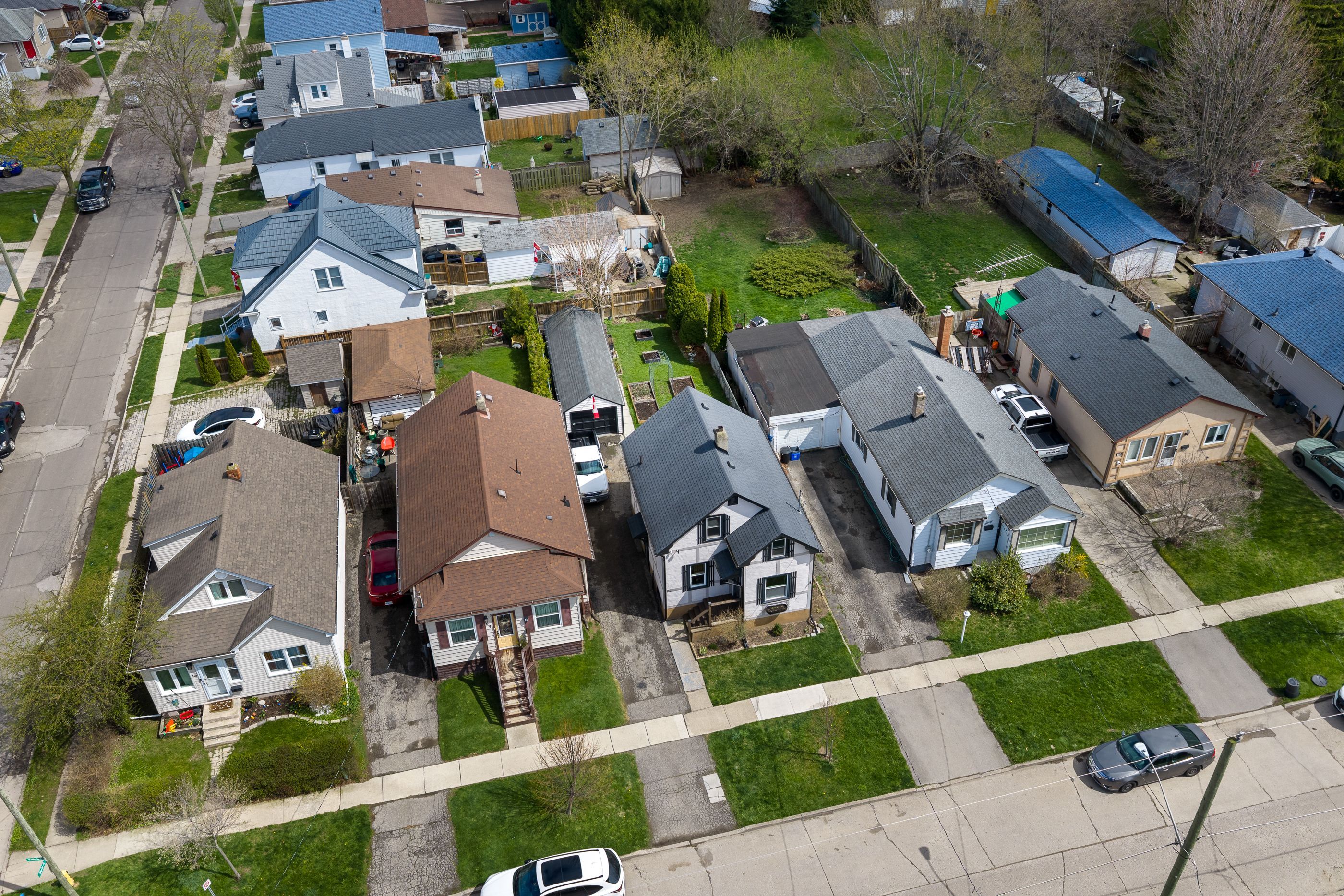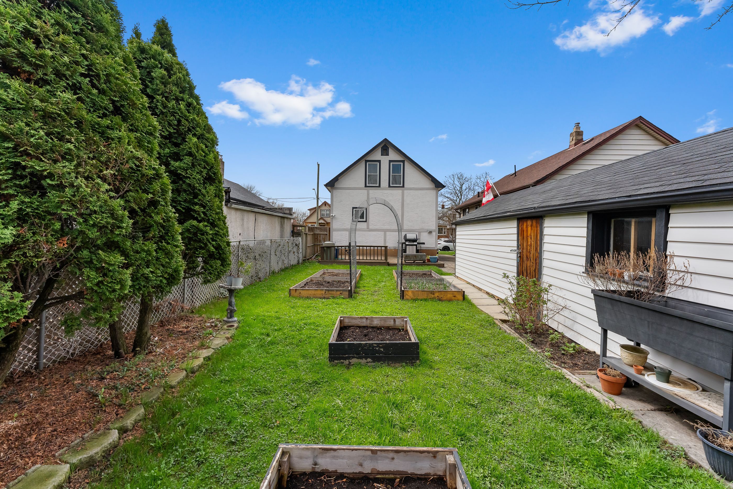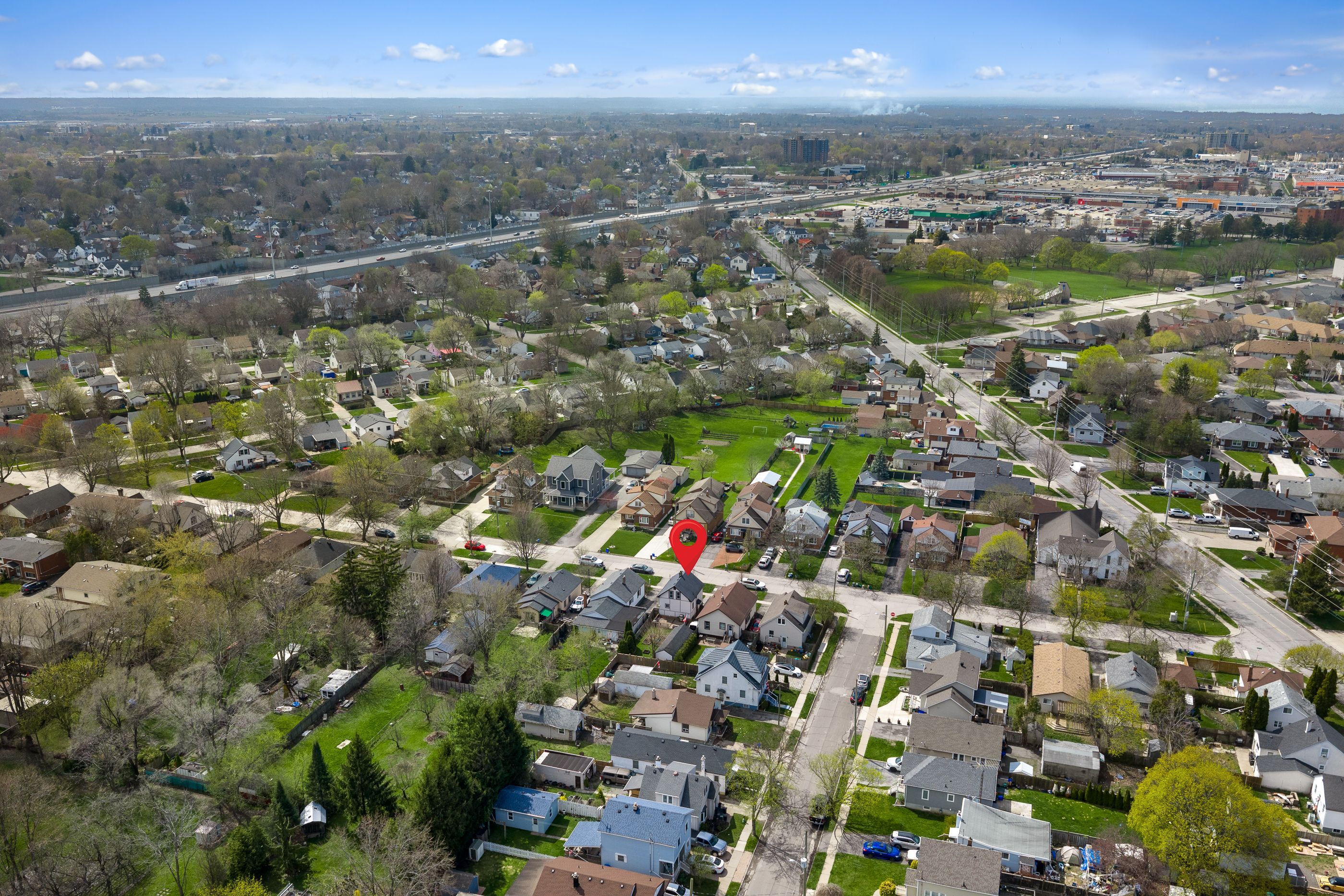 This solid 1. 5 storey detached home in the north end offers a functional layout, great outdoor space, and an unbeatable location. The main floor features a bright eat-in kitchen, separate dining area, and comfortable living space, along with a 4-piece bathroom. Upstairs, you'll find three bedrooms, ideal for families, guests, or a home office setup. A separate side entrance provides access to the full unfinished basement, offering excellent potential for additional living space. Outside, enjoy a double-length detached garage and parking for three vehicles in the private driveway. Located in a friendly neighbourhood within walking distance to fairview mall, parks, schools, and everyday amenities, with quick access to the qew-perfect for commuters.