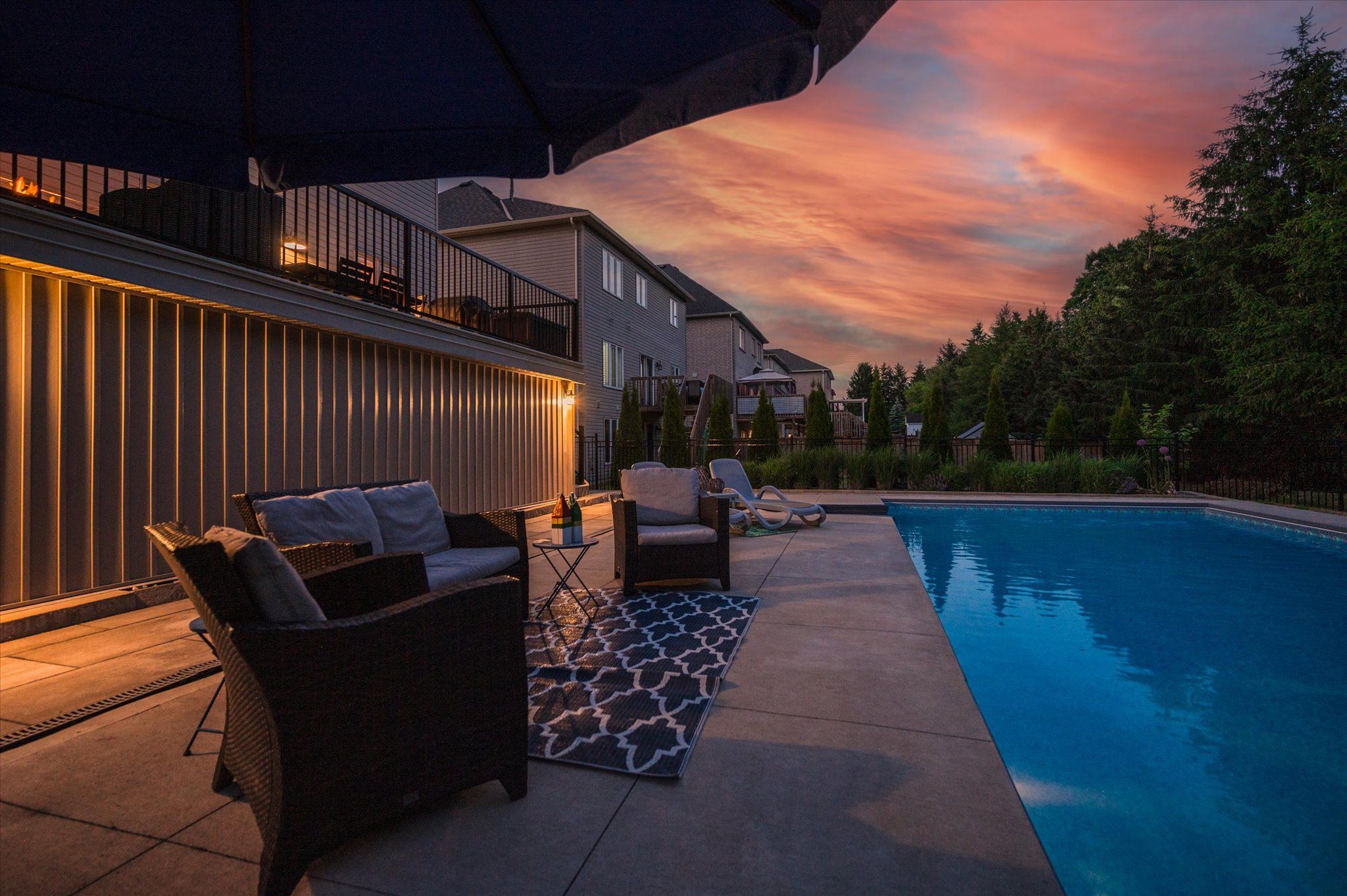 Stunning family home with luxury upgrades. Welcome to this beautifully appointed home designed for both everyday comfort and elevated entertaining. Greeted by tall ceilings and a carpet-free layout that flows effortlessly throughout the main living spaces. The chefs kitchen has upgraded appliances & is the heart of the home for preparing and sharing meals. The second floor boasts the primary bedroom, with walk-in closet & cabinetry, and 5-piece ensuite. The additional 3 large bedrooms and full bath finish off the second floor nicely. The fully finished basement offers versatile living space with oversized doorways for a bright, open feel ideal for a home theatre, gym, or recreation room. The large heated fifth bedroom, is great for the large families or sleepovers. Enjoy endless summers in your heated saltwater pool, surrounded by a maintenance-free aluminum deck, ornamental iron fence, and professionally landscaped grounds perfect for relaxing or hosting friends and family. The extra-large maintenance-free shed adds additional storage without the upkeep. With the deck, shed, and fence all designed to be maintenance-free, so you can enjoy years of use with no future expense. The oversized double car garage is both insulated and drywalled, providing convenience, comfort, and plenty of room for vehicles and storage. This home seamlessly combines function, style, and low-maintenance living, truly move-in ready. Come see for yourself, the true value of this home.