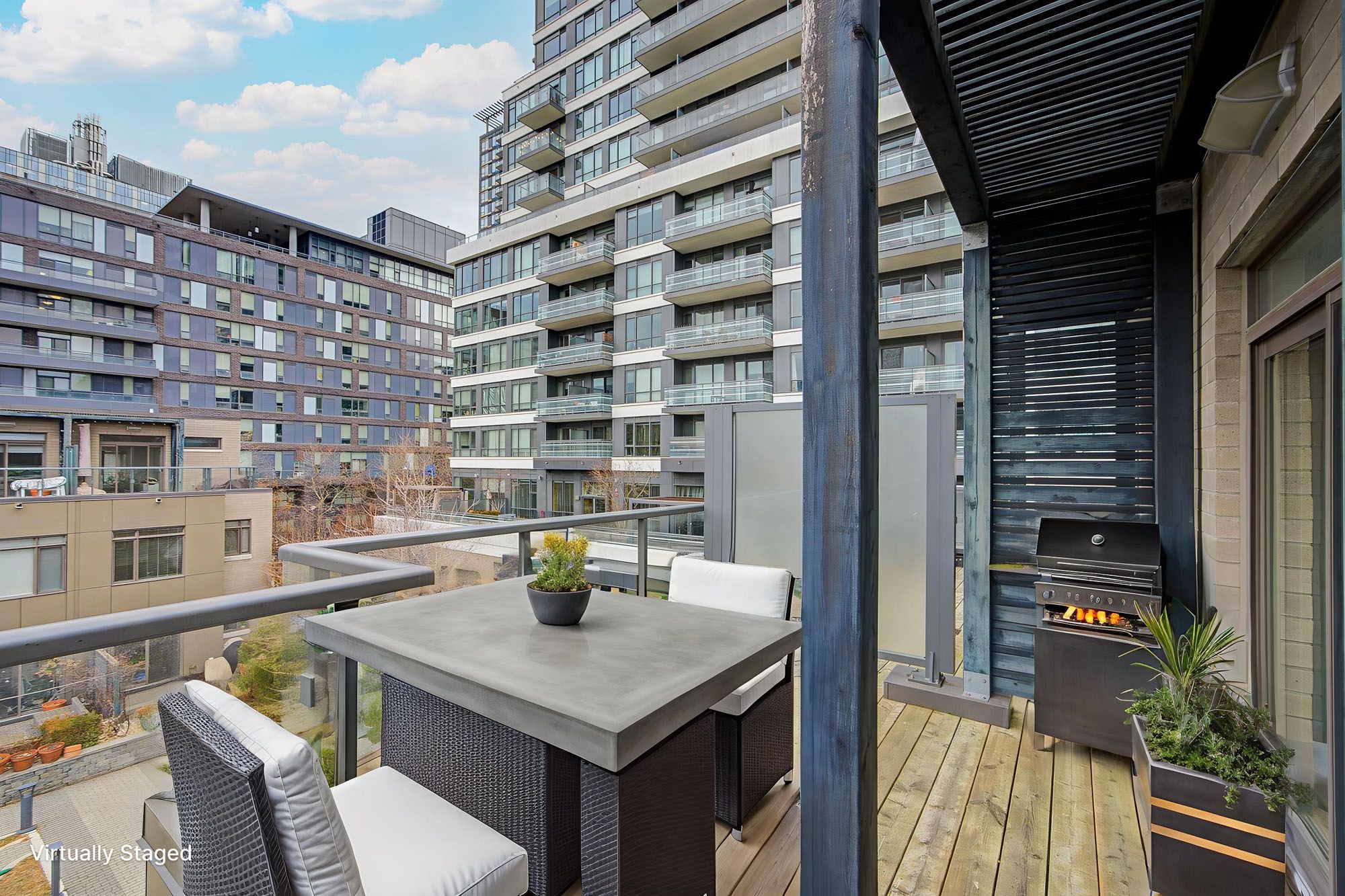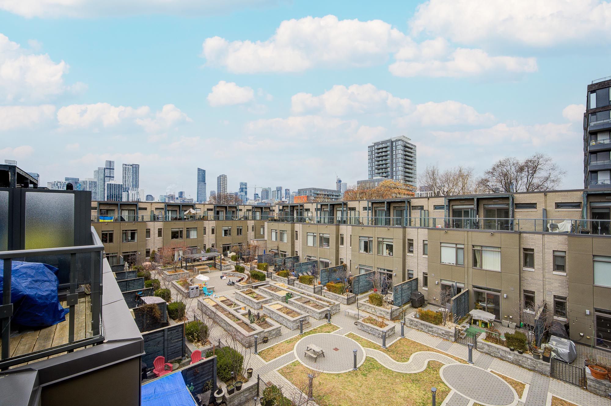 Welcome to this stunning townhome built by daniel, featuring 3-bedroom, 2. 5-bathroom, a media area, 1 parking & 1 locker, located in the prestigious regent park community. This home offers approx. 1,285 sq. Ft. Of bright, modern living space with high ceilings, abundant natural light, and quality laminate flooring throughout. Upgraded open-concept kitchen features custom cabinetry, quartz countertops, backsplash, a large centre island, and the media area could be a breakfast area/home office area with a direct walk-out to the private patio. Second floor offers two spacious bedrooms with large windows and closets, sharing a 4-piece bathroom. Third-floor primary bedroom includes a 4-pc ensuite and walk-out to a south-facing private terrace. Enjoy premium amenities: fitness & yoga studios, media lounge, party room, outdoor terrace, and landscaped courtyard. Minutes to eaton shopping center, downtown, parks, restaurants, and quick access to the dvp hwy.