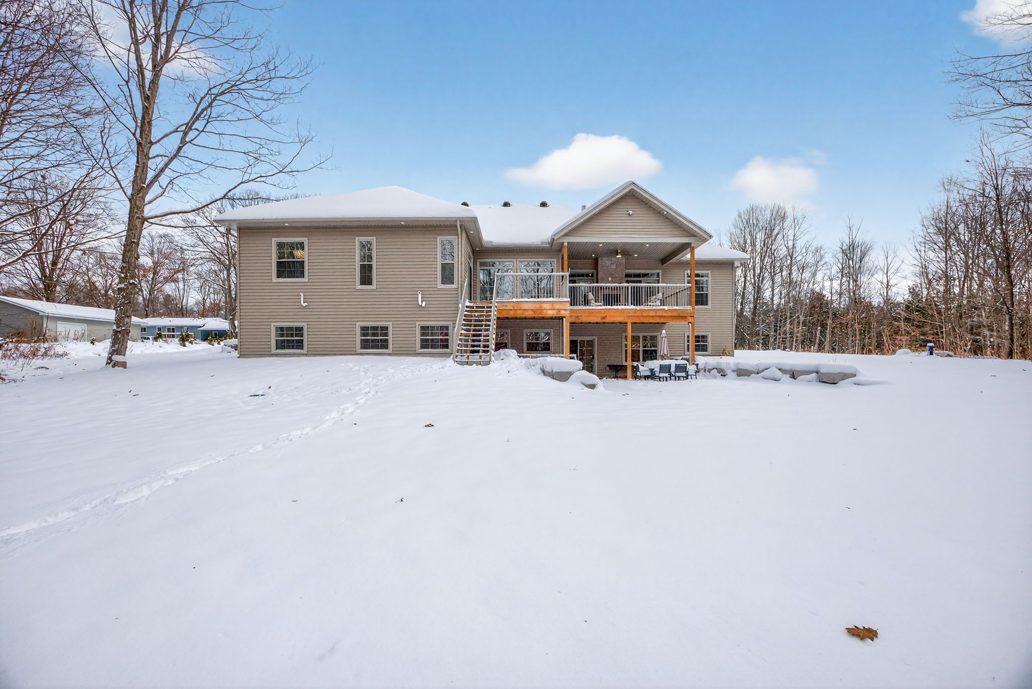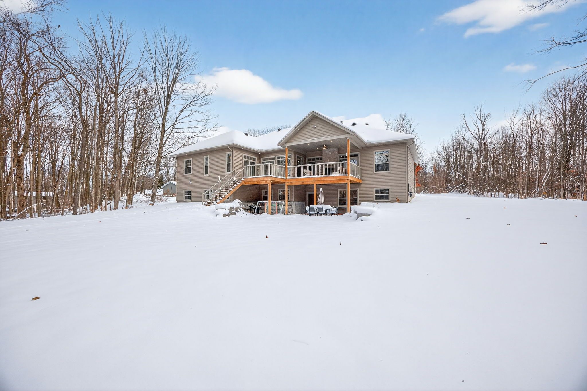 Absolute stunner! Built in 2023, this gorgeous estate home is completely custom finished from top-to-bottom with luxury upgrades & wow factor galore. Sitting on a private, park-like 6. 7-acres, just steps to georgian bay, and featuring high-end finishes throughout, this flawless 4,864 sf dream home offers everything you could possibly ask for. Anchoring the open concept main floor is a jaw-dropping, professionally designed, eat-in kitchen boasting huge walk-in pantry, custom cabinetry, massive island, quartz countertops & premium appliances. Stunning, light filled dining room, just off the kitchen, is the perfect place to pull the family together around the table. Open living room features hardwood floors throughout, gas fireplace, vaulted ceilings & double walk-out to huge covered composite deck, with built-in gas fireplace, overlooking your private backyard oasis. Massive primary suite offers spacious walk-in closet, office nook, walk-out to deck & an incredible spa-like ensuite with custom double vanity, deep soaker tub & separate glass shower. Beautifully finished main bath, two great-sized bedrooms, main floor laundry & lovely guest bath finish off the main floor perfectly. Additional 389 sf finished loft provides additional living space for potential 5th bedroom, home office, studio, rec room, home theater etc. Fully finished lower level features a huge open family room with 3rd gas fireplace & walkout to backyard, two more great-sized bedrooms, full fitness room, 4th beautifully finished bathroom & tons of storage. Additional features: beautiful double door front entry with grand foyer. Full home 22kw generac generator. Circular driveway with plenty of parking. Double car garage with inside entry & grocery door directly to pantry. Nature trails throughout property. Forced air gas heat. A/c. High speed internet. 500m walk to georgian bay sand beach. Centrally located between barrie, orillia & midland & only 1. 5 hours to gta. Still under tarian warranty. Age - 2