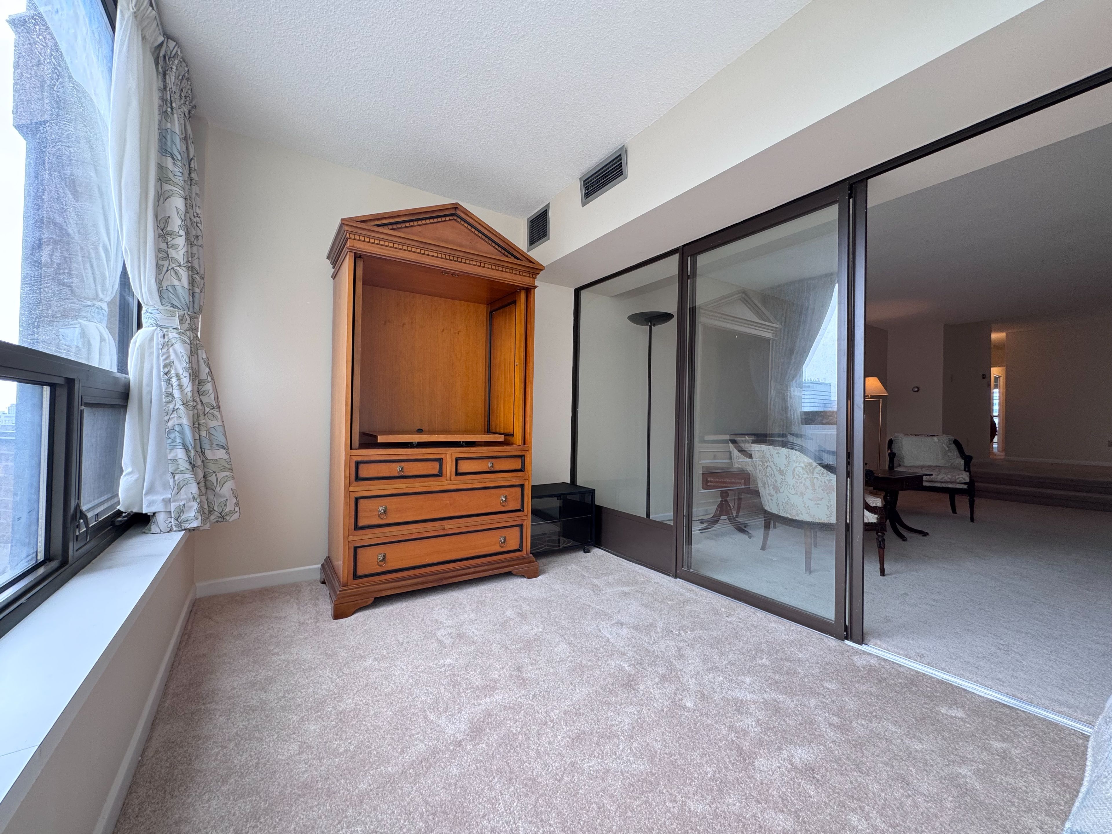 Welcome to queen's park place! Boutique building with only 100 suites. Unit 1801 is a sprawling 2-bedroom, 2-bath suite with over 1,580 square feet of living space. The unique floor plan features a retro-chic sunken living room, separate dining area, a large eat-in kitchen, two generously sized bedrooms with 2 full baths and stunning north and south views from two sun-filled sunrooms, both offering clear city views. An abundance of storage throughout includes a kitchen pantry, an extra-large en-suite storage locker, a linen closet, and a 9-foot-wide walk-in closet in the primary bedroom. Multiple temperature control systems are installed in the living room, dining room, bedroom, and sunroom, supported by three hvac units to ensure optimal comfort throughout the unit, allowing people in different areas to enjoy personalized climate control. The size and scale of this well-designed home offer endless potential. Enjoy a prime location just steps to queen's park, university of toronto, major hospitals, and both wellesley and queen's park subway stations. Surrounded by premier shopping, dining, cultural landmarks, and green spaces. A fantastic opportunity for end-users or investors seeking value, space, and location in one of toronto's most dynamic neighbourhoods.