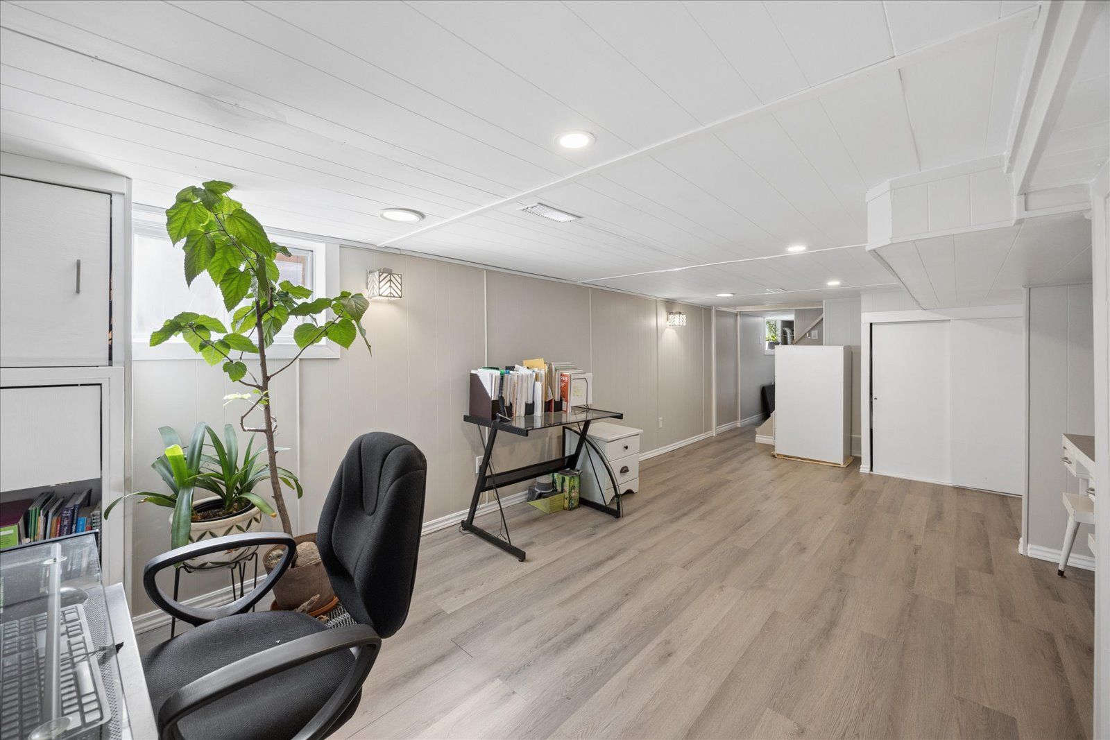 • Versatile lower level with laundry, rec room, and office/craft space.