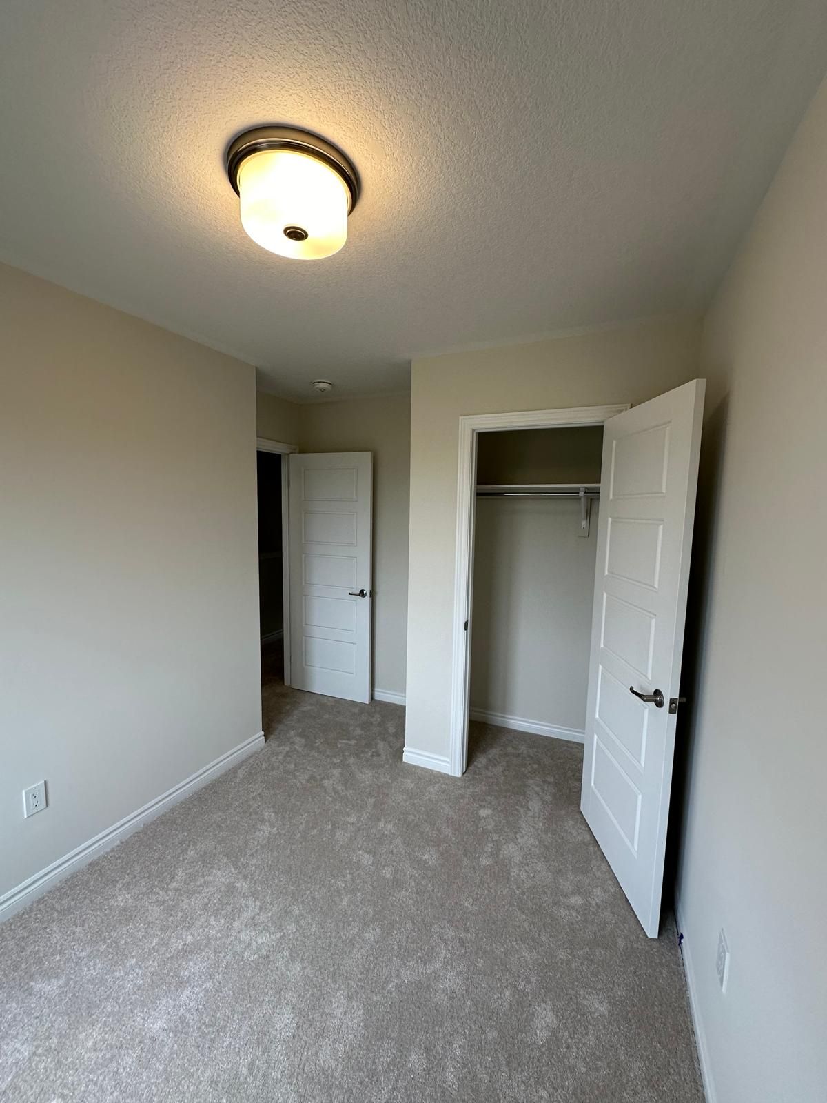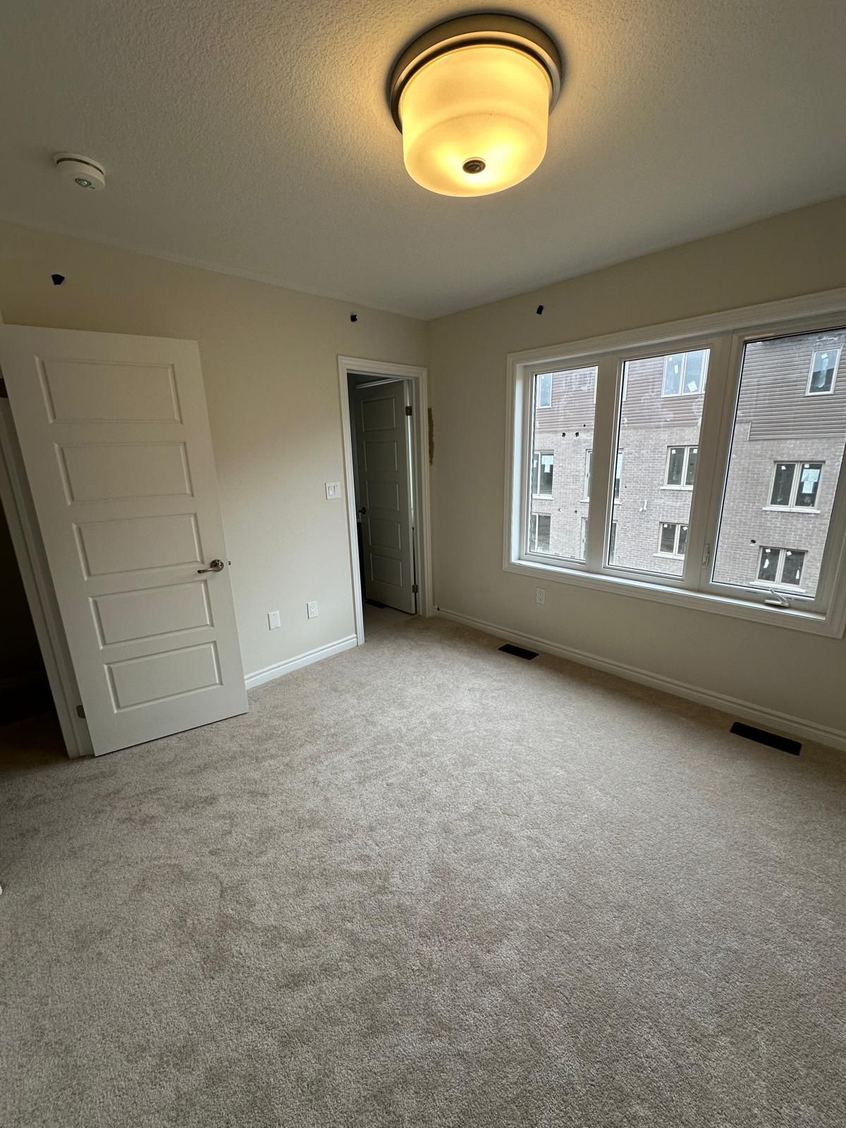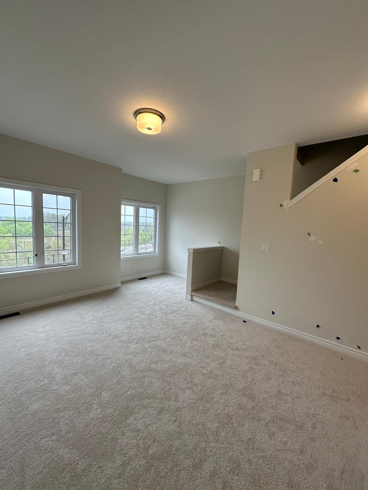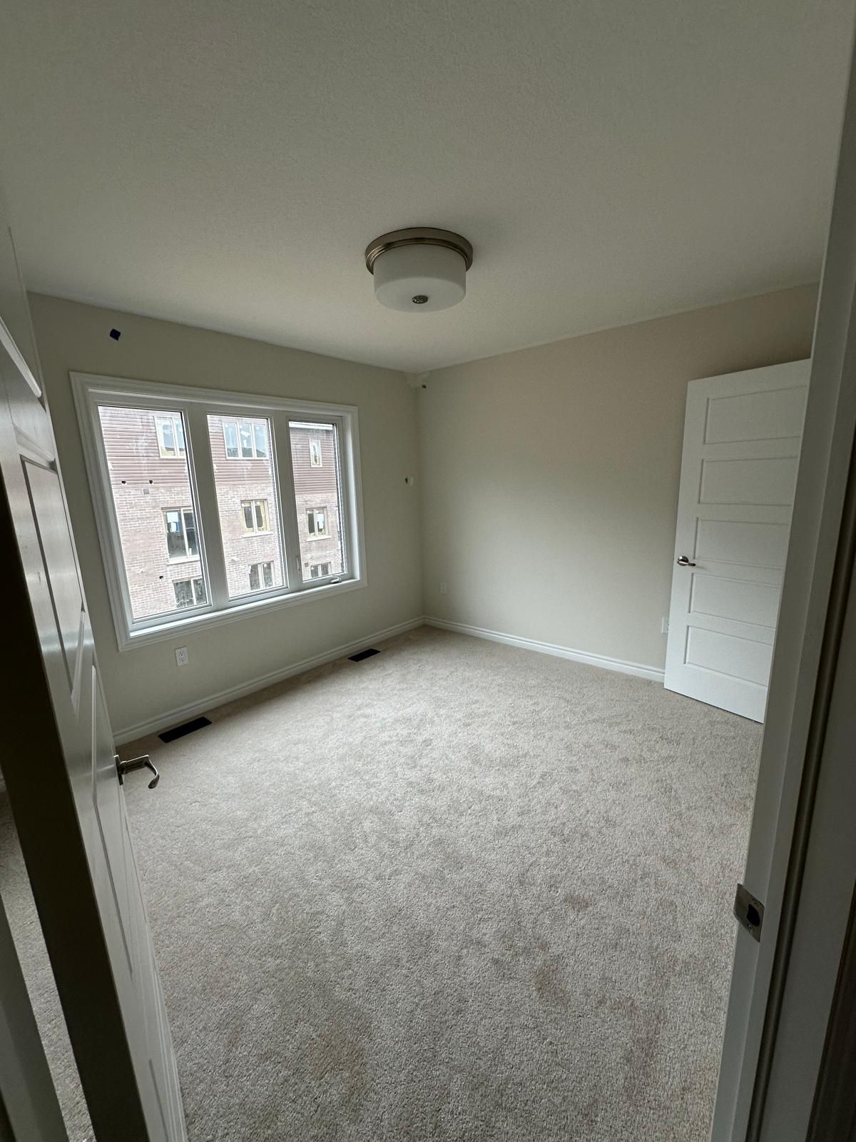 Just under 2 years new townhouse with 3 bedrooms and 2. 5 washrooms and a rec. Room on ground level that can be used as another bedroom. The property is 1554 sqft and includes a single-car garage and driveway. Specious kitchen with stainless steel appliances. Laundry conveniently located on upper floor. Conveniently located near malls, public transportation, grocery stores, libraries, schools, and universities, with easy access to highways and nearby trails just a short walk away. The front of the house boasts a natural view with a serene pond and adjacent hiking trail, offering residents the perfect blend of natural beauty and outdoor recreation right at the doorstep. The tenant takes care of the grass and snow. Pictures are 2 years old.