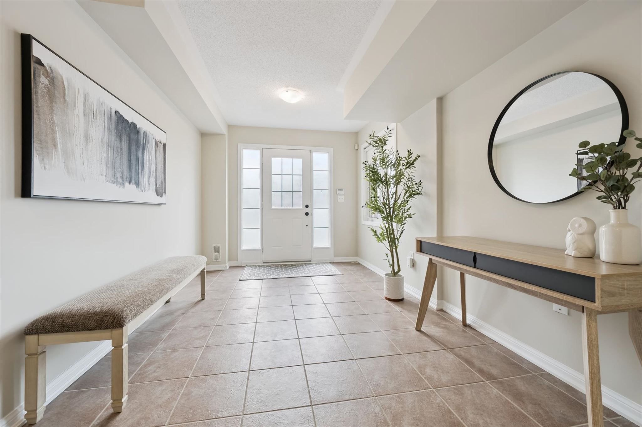 This beautifully updated 3-storey townhouse in milton's desirable beaty neighbourhood is tucked into a quiet interior location and includes 2 bedrooms, 2 bathrooms, and a garage with remote and keypad. Recent upgrades add exceptional value: new roof (july 2025), refreshed kitchen with new cabinet doors and built-in microwave, new light fixtures, fresh neutral paint and carpeting, and updated powder room and main bathroom (all completed in march 2026). The home also features an owned hot water tank. Visitor parking and mailbox are conveniently located directly in front. One of the standout features is the low potl fee of just $92. 48/month, covering snow removal, road maintenance, and common areas - offering a more affordable alternative to higher-fee condos in the area. Ideally located close to schools, parks, grocery stores, with easy access to highway 401 and the milton go station.