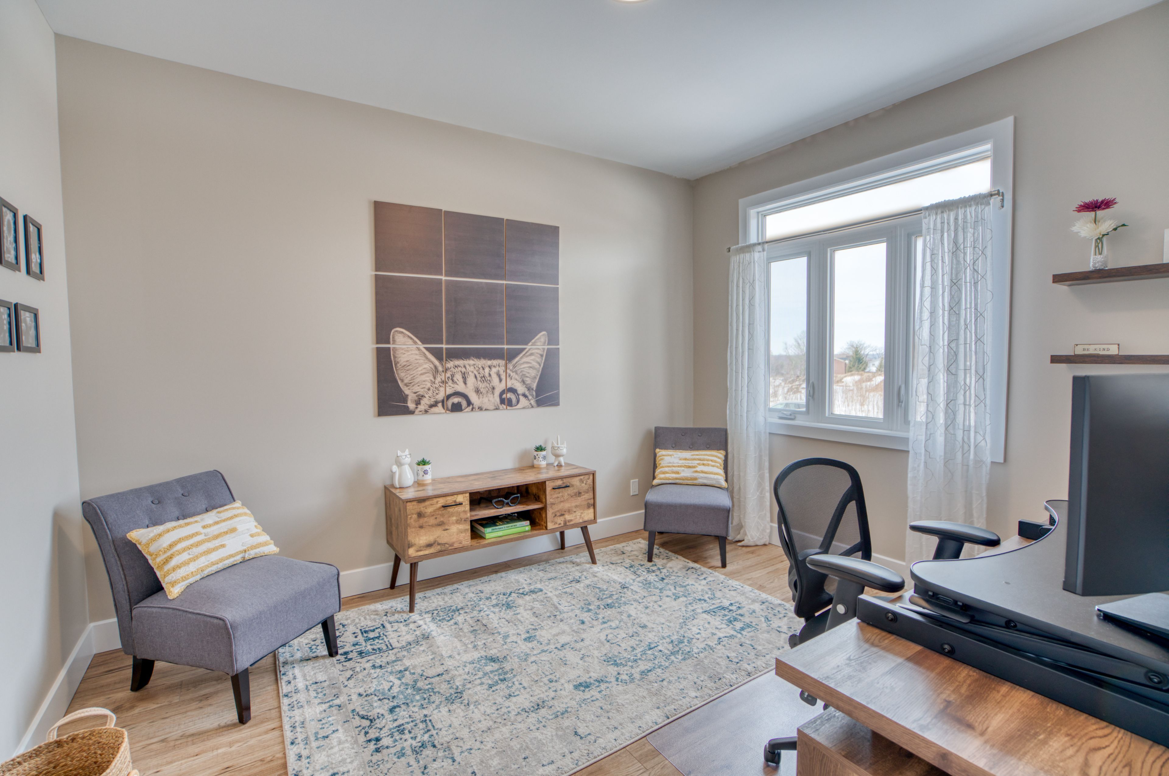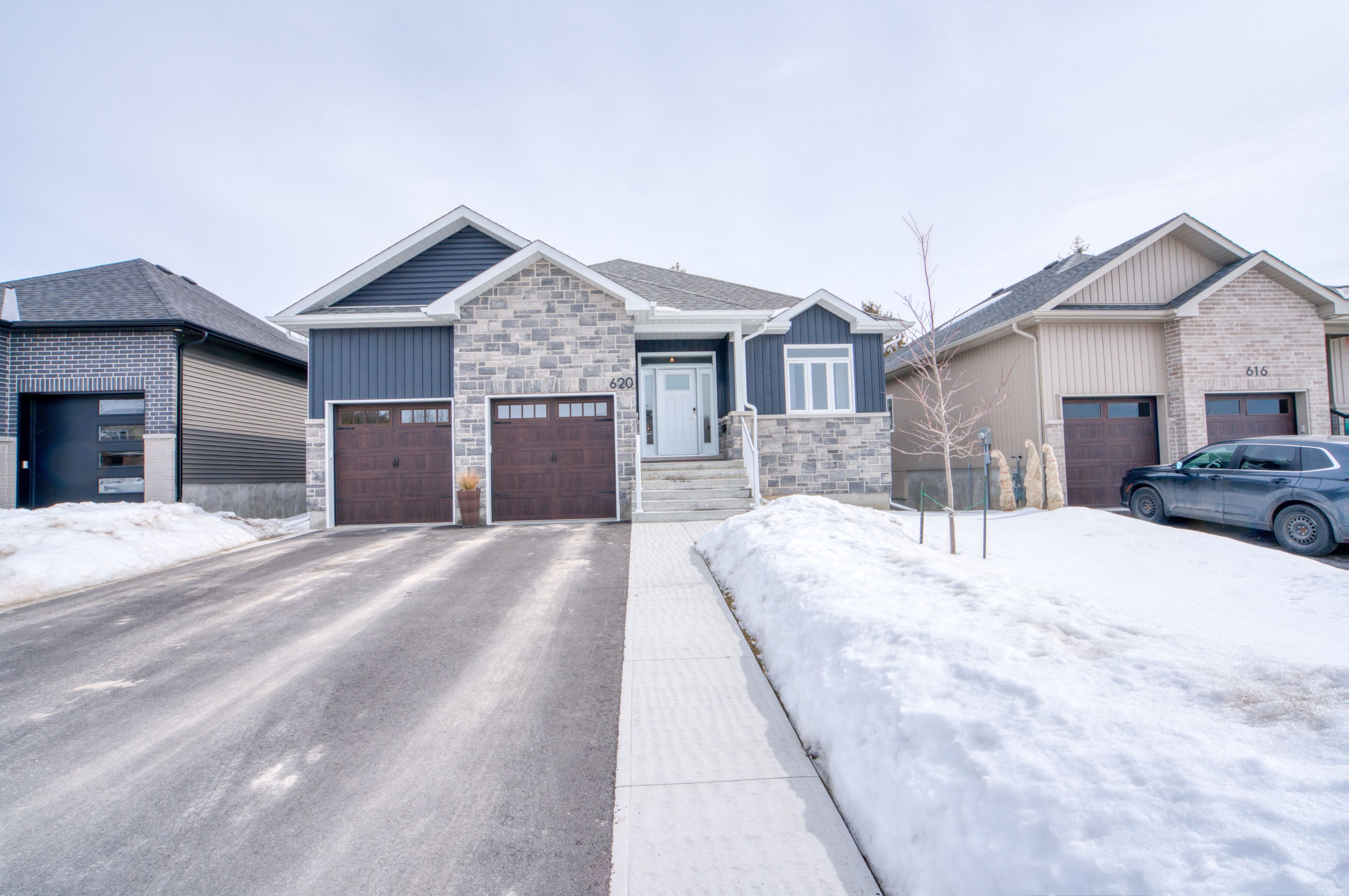Better than new in kingston's west end. Welcome to 620 graceland, a beautifully finished home just over a year old, fully completed with driveway and a walkway designed to protect the lawn from foot traffic. The exterior offers excellent curb appeal with a blend of stone and vinyl and sits on an extra-large lot south-facing backyard and walk-out basement. The open-concept main level features a bright kitchen with quartz countertops, large island, corner pantry and instant hot water dispenser, flowing easily into the living and dining areas. One of the original main-floor bedrooms has been converted into a spacious laundry room with folding area and storage for everyday convenience. The finished walk-out basement adds fantastic living space with a fireplace, two generous bedrooms, workout area and large storage room. The main floor office could easily function as a bedroom if needed. Entry from the double-car garage leads to a custom cubby area with space for coats, boots and everyday storage. Additional highlights include consistent flooring throughout, an extra-large covered deck with gas bbq hookup, 4 bedrooms, 3 full bathrooms, and appliances less than 1. 5 years old (fridge, stove, dishwasher, washer and dryer). On-demand hot water rented through reliance. A beautifully finished home that offers the feel of brand new construction without the wait.