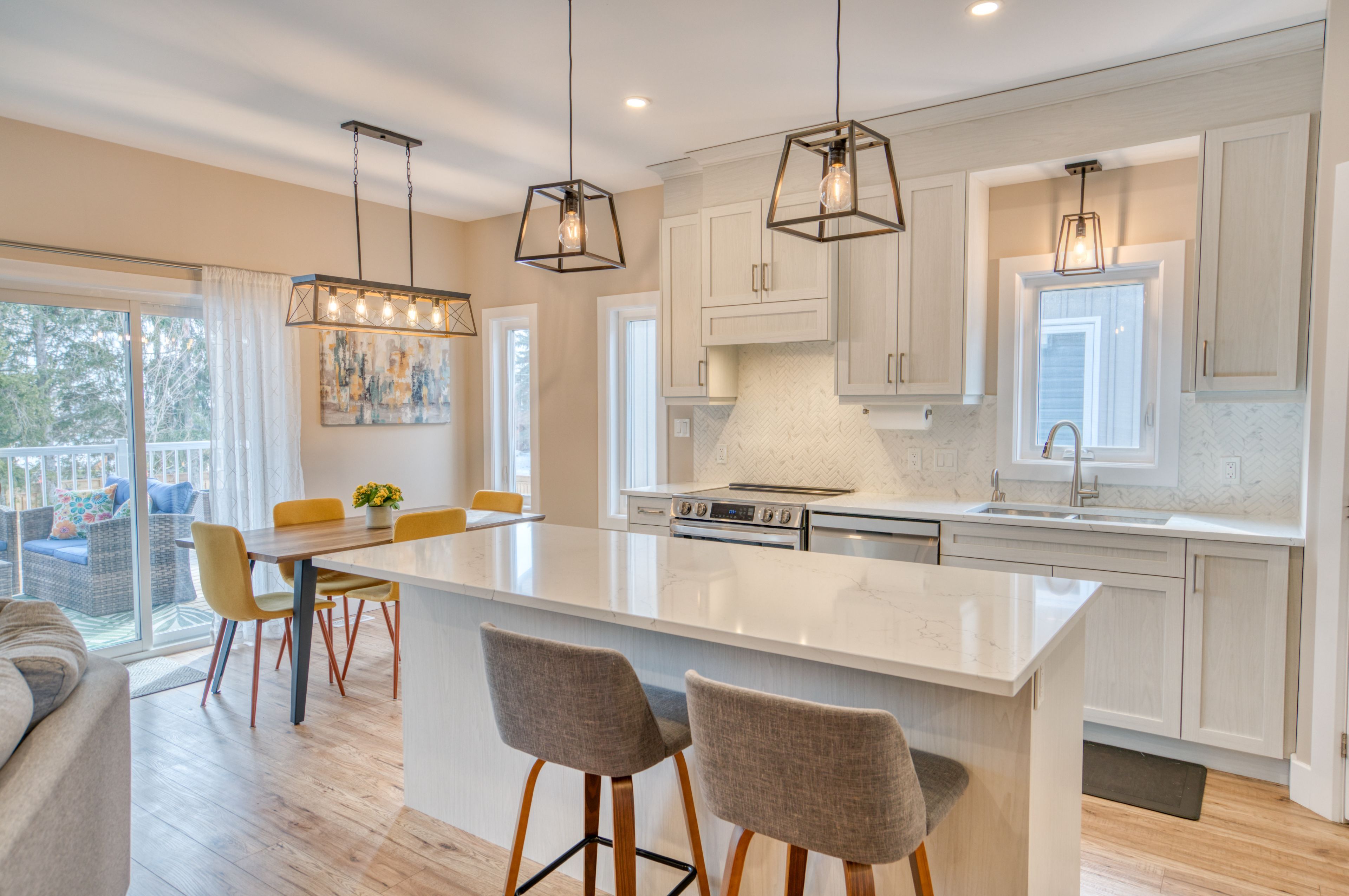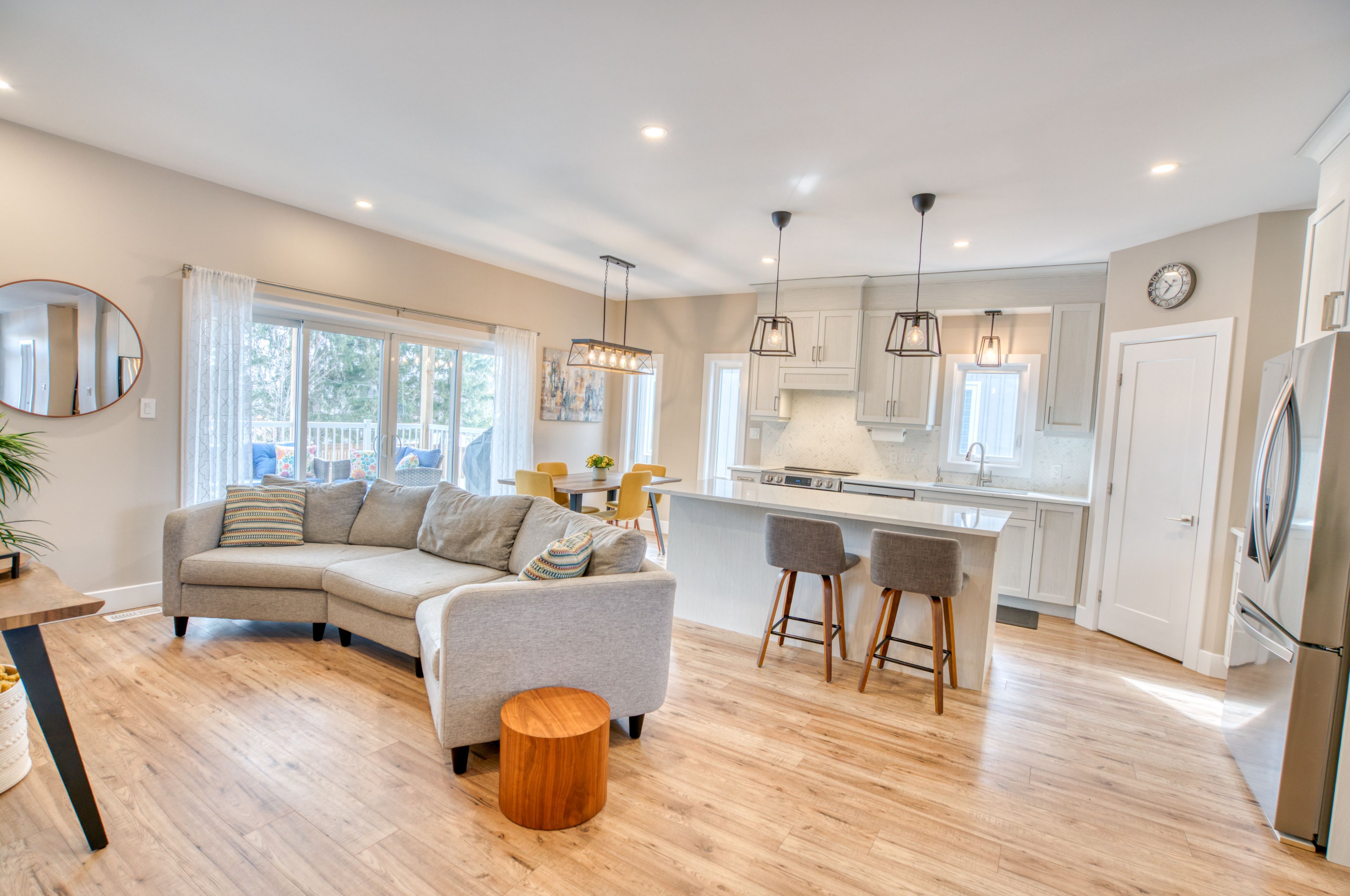 • Spacious open-concept main level with a bright kitchen and large island.