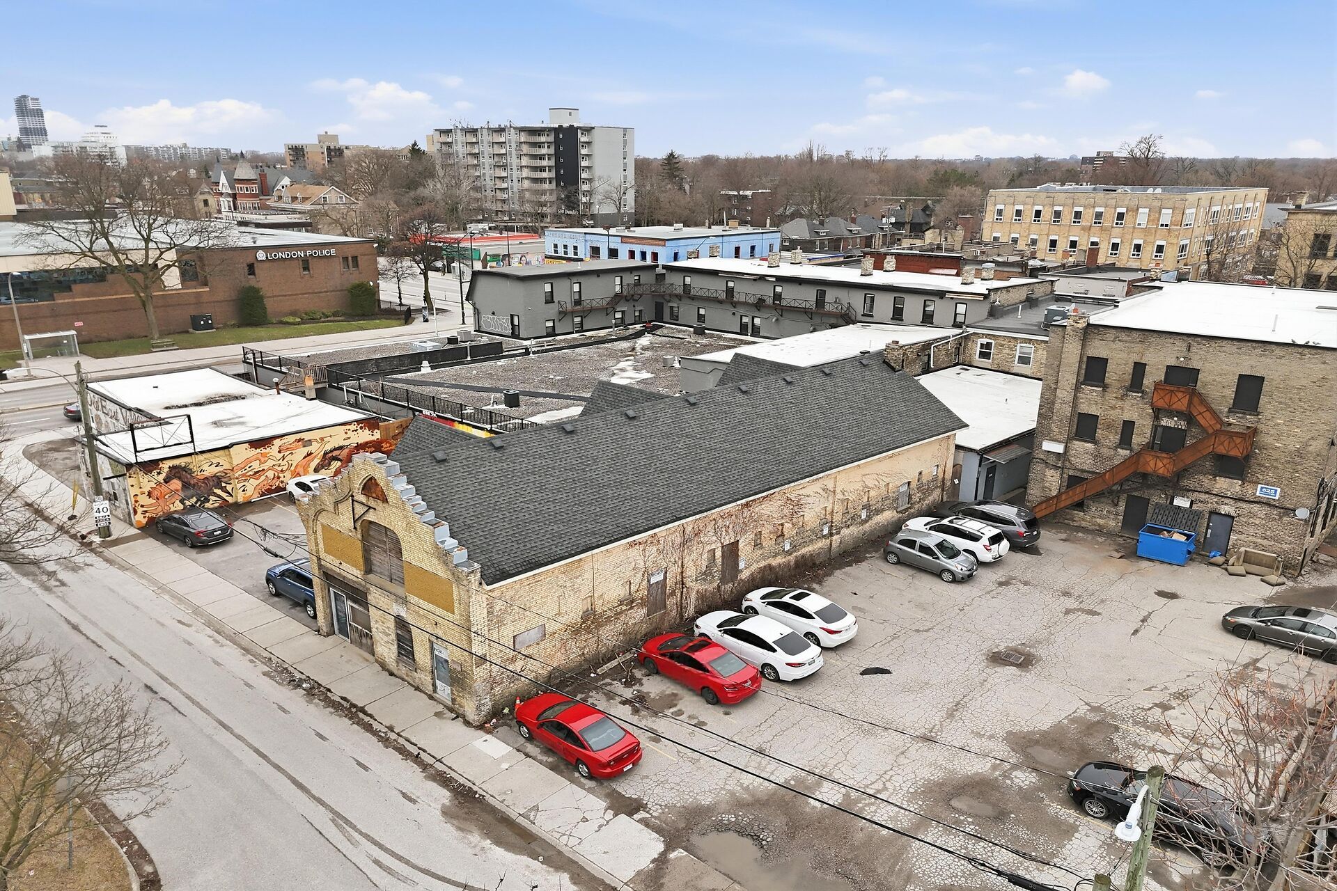 Once in a lifetime opportunity to own a true piece of london's history in the heart of old east village. Welcome to "the livery stables," reportedly the oldest and largest remaining purpose-built livery stable in the city, an iconic property rich in character and untapped potential. This rare offering features approximately 5,400 sq ft across two expansive levels, each boasting soaring ceilings, exposed brick walls, and impressive original timber trusses that create a striking architectural presence. The wide open concept layout provides a blank canvas for redevelopment, perfectly suited for creative vision and adaptive reuse. Positioned within bdc zoning, the property allows for a broad range of permitted uses, making it an exceptional opportunity for investors, developers, or owner-occupiers looking to establish a unique space in one of london's most vibrant and evolving neighbourhoods. Old east village continues to see significant revitalization, supported by available incentives for building improvements. Surrounded by residential density, local businesses, and strong community growth, this property offers both historical significance and future upside.