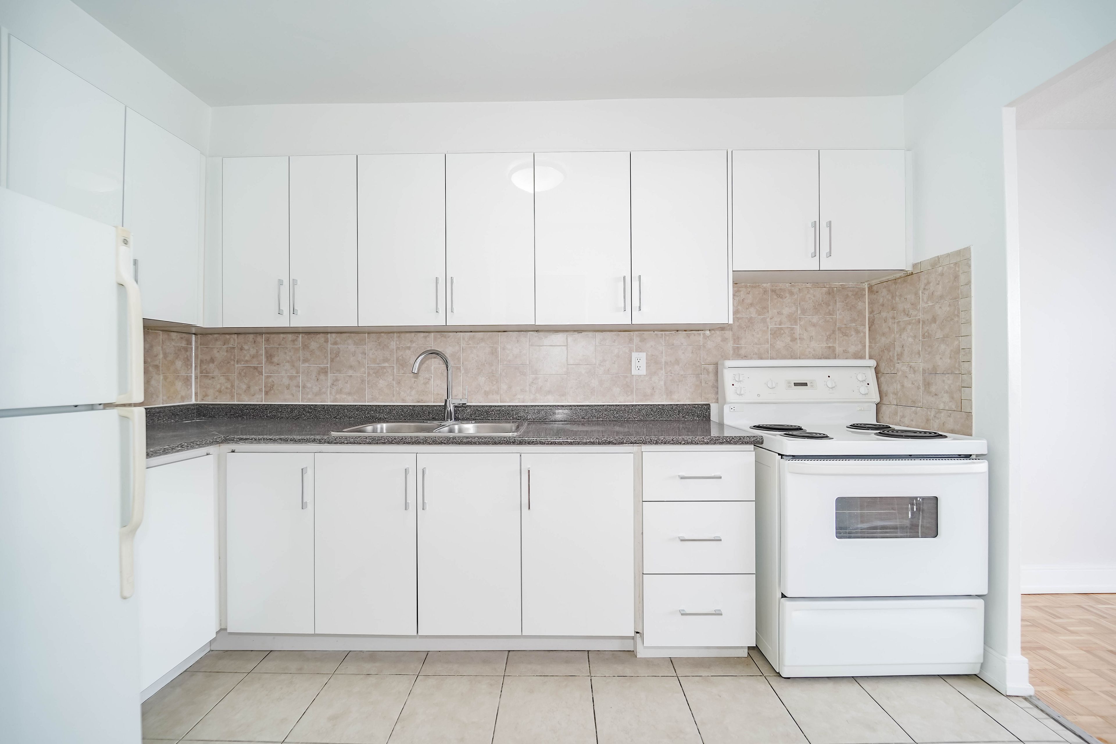 • Modern kitchen with new appliances and stylish flooring throughout.