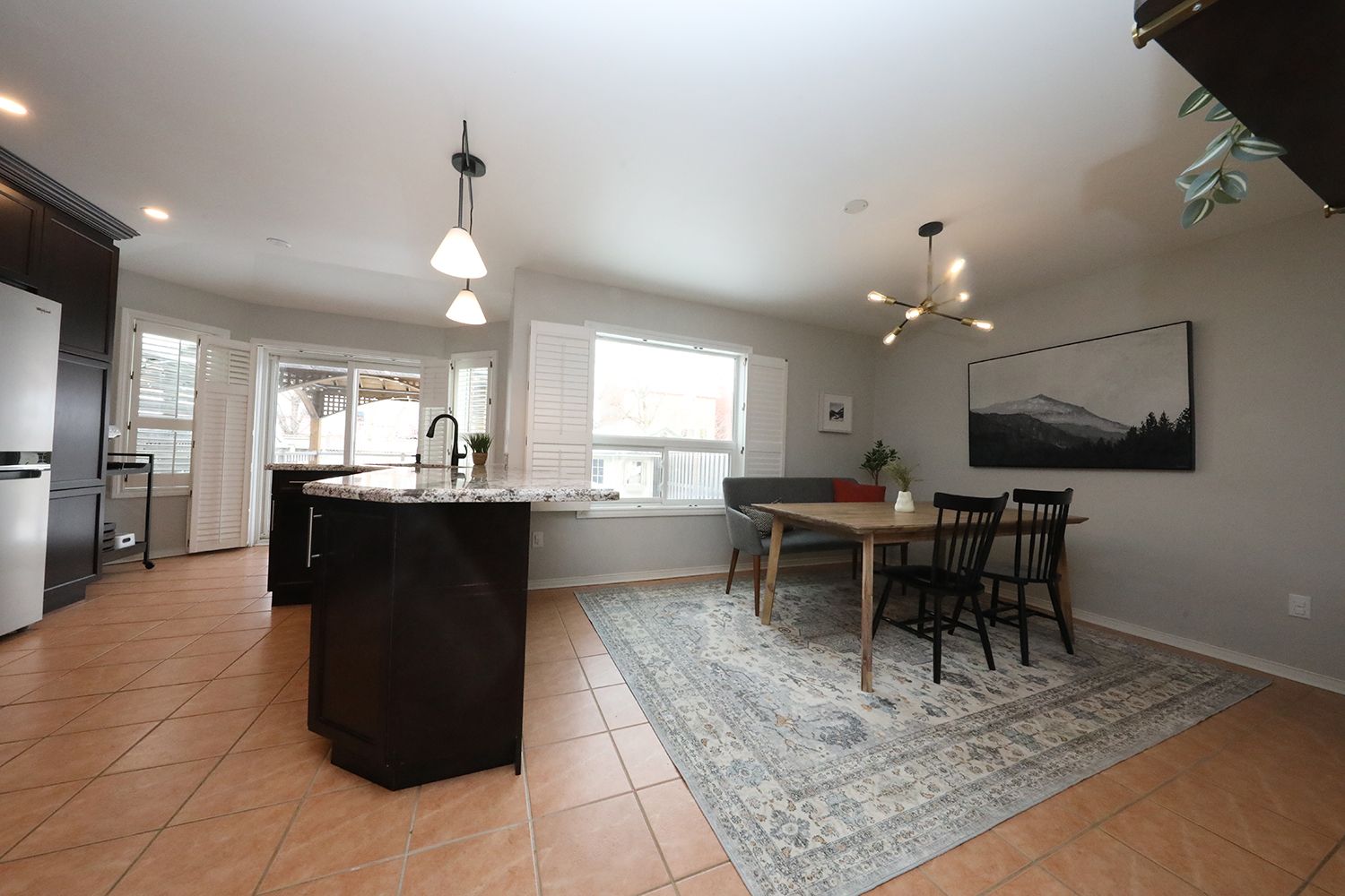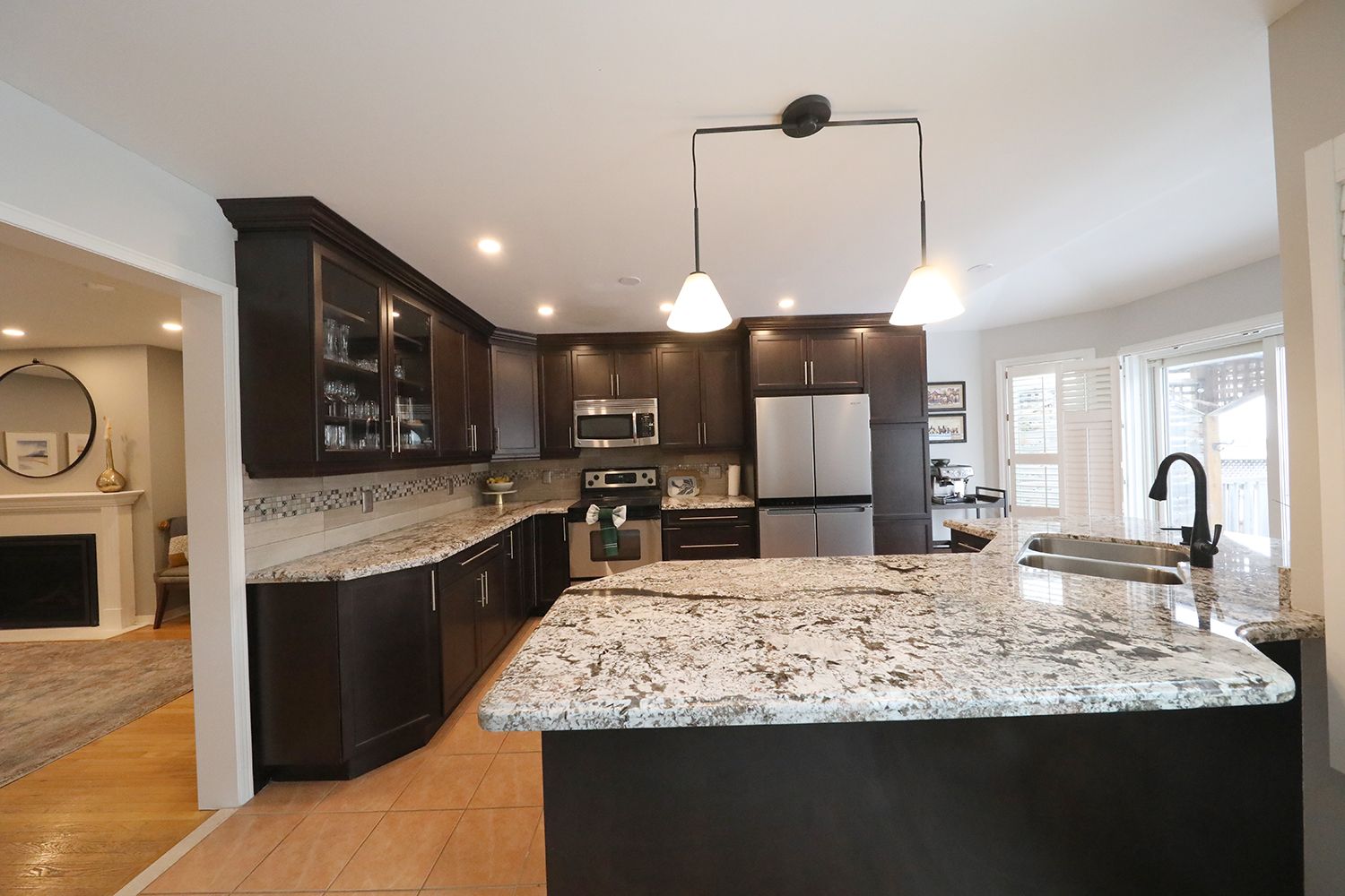 • Updated kitchen with granite countertops and two breakfast bars.