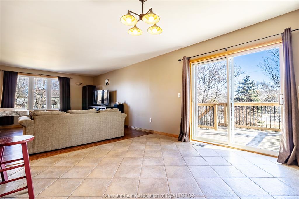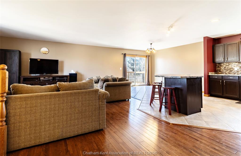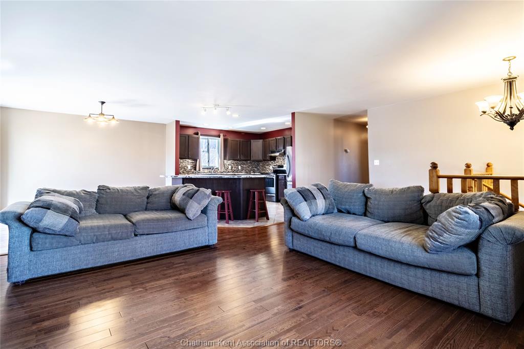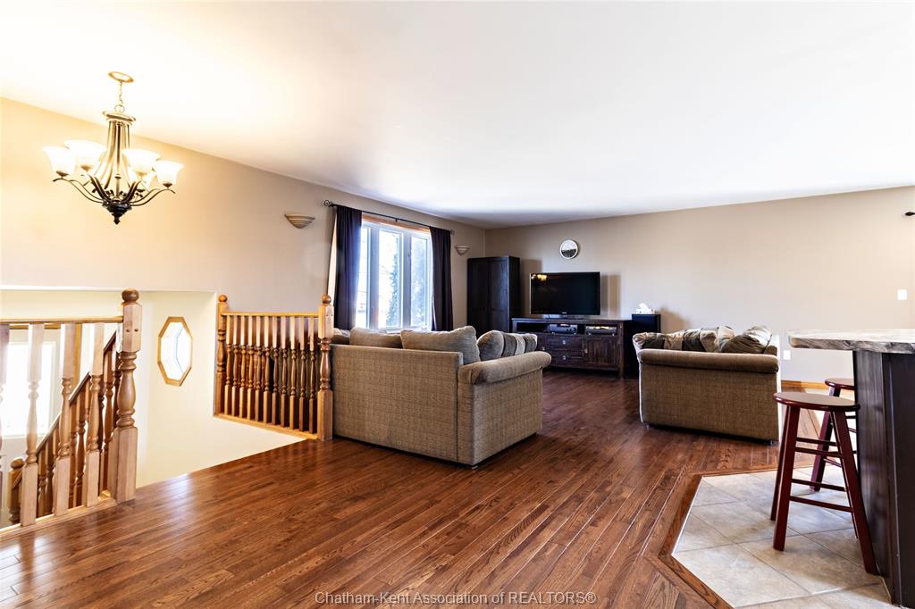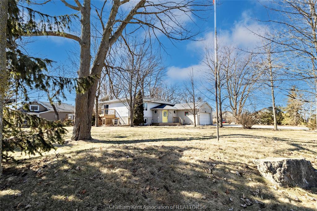 Welcome to this well-maintained raised ranch, perfectly situated on a generous 94 x 129 corner lot with exceptional parking options. Enjoy a cement driveway extended along the side of the home, plus additional parking for toys or trailers tucked behind a 16’ x 14’ shed complete with 220-amp electrical. The beautifully landscaped yard features mature trees that provide excellent privacy during the summer months, along with a newer deck ideal for outdoor entertaining and newer decking on the front porch. Built in 1998, this home includes a 2-car attached garage with inside entry and a bright, functional layout with extra-wide entryway, staircases, and hallways, creating an open and welcoming feel. The main floor offers open-concept living, kitchen, and dining areas, with patio doors leading directly to the deck. Engineered hardwood flows throughout the main level, complemented by ceramic tile in the kitchen, dining area, and bathroom. Three generously sized bedrooms are located on the main floor, including a primary bedroom with cheater access to a large full bathroom. The fully finished basement is enhanced by large windows that provide an abundance of natural light, creating a bright and inviting lower level. This space includes vinyl flooring, two additional large bedrooms, a second full bathroom, a spacious laundry/utility room, and a large open area ideal for a rec room, games space, or bar. Ideally located on the edge of town, this home is within walking distance to local amenities and offers quick access to highway 401 just down the street, making commuting simple and convenient. This property has been lovingly cared for and is move-in ready, making it an excellent choice for a growing family. This home truly must be seen to appreciate! Schedule your private showing today before it’s gone! Agents contact listing agent directly to schedule showings.