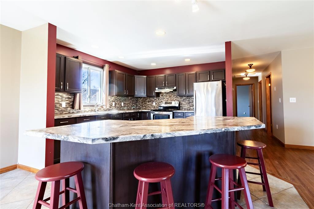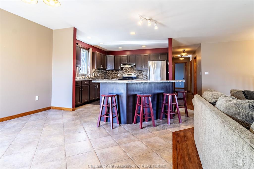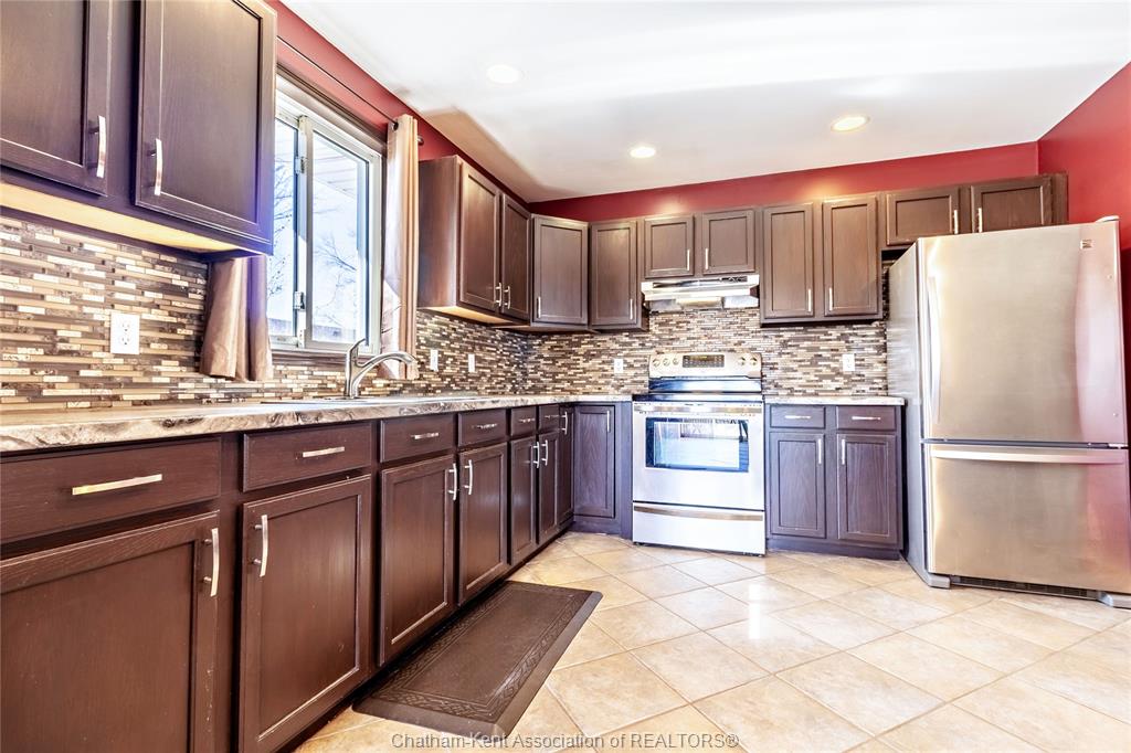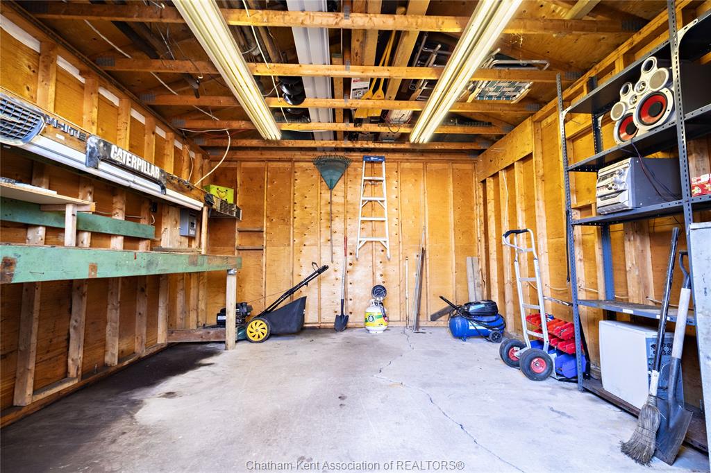Welcome to this well-maintained raised ranch, perfectly situated on a generous 94 x 129 corner lot with exceptional parking options. Enjoy a cement driveway extended along the side of the home, plus additional parking for toys or trailers tucked behind a 16’ x 14’ shed complete with 220-amp electrical. The beautifully landscaped yard features mature trees that provide excellent privacy during the summer months, along with a newer deck ideal for outdoor entertaining and newer decking on the front porch. Built in 1998, this home includes a 2-car attached garage with inside entry and a bright, functional layout with extra-wide entryway, staircases, and hallways, creating an open and welcoming feel. The main floor offers open-concept living, kitchen, and dining areas, with patio doors leading directly to the deck. Engineered hardwood flows throughout the main level, complemented by ceramic tile in the kitchen, dining area, and bathroom. Three generously sized bedrooms are located on the main floor, including a primary bedroom with cheater access to a large full bathroom. The fully finished basement is enhanced by large windows that provide an abundance of natural light, creating a bright and inviting lower level. This space includes vinyl flooring, two additional large bedrooms, a second full bathroom, a spacious laundry/utility room, and a large open area ideal for a rec room, games space, or bar. Ideally located on the edge of town, this home is within walking distance to local amenities and offers quick access to highway 401 just down the street, making commuting simple and convenient. This property has been lovingly cared for and is move-in ready, making it an excellent choice for a growing family. This home truly must be seen to appreciate! Schedule your private showing today before it’s gone! Agents contact listing agent directly to schedule showings.