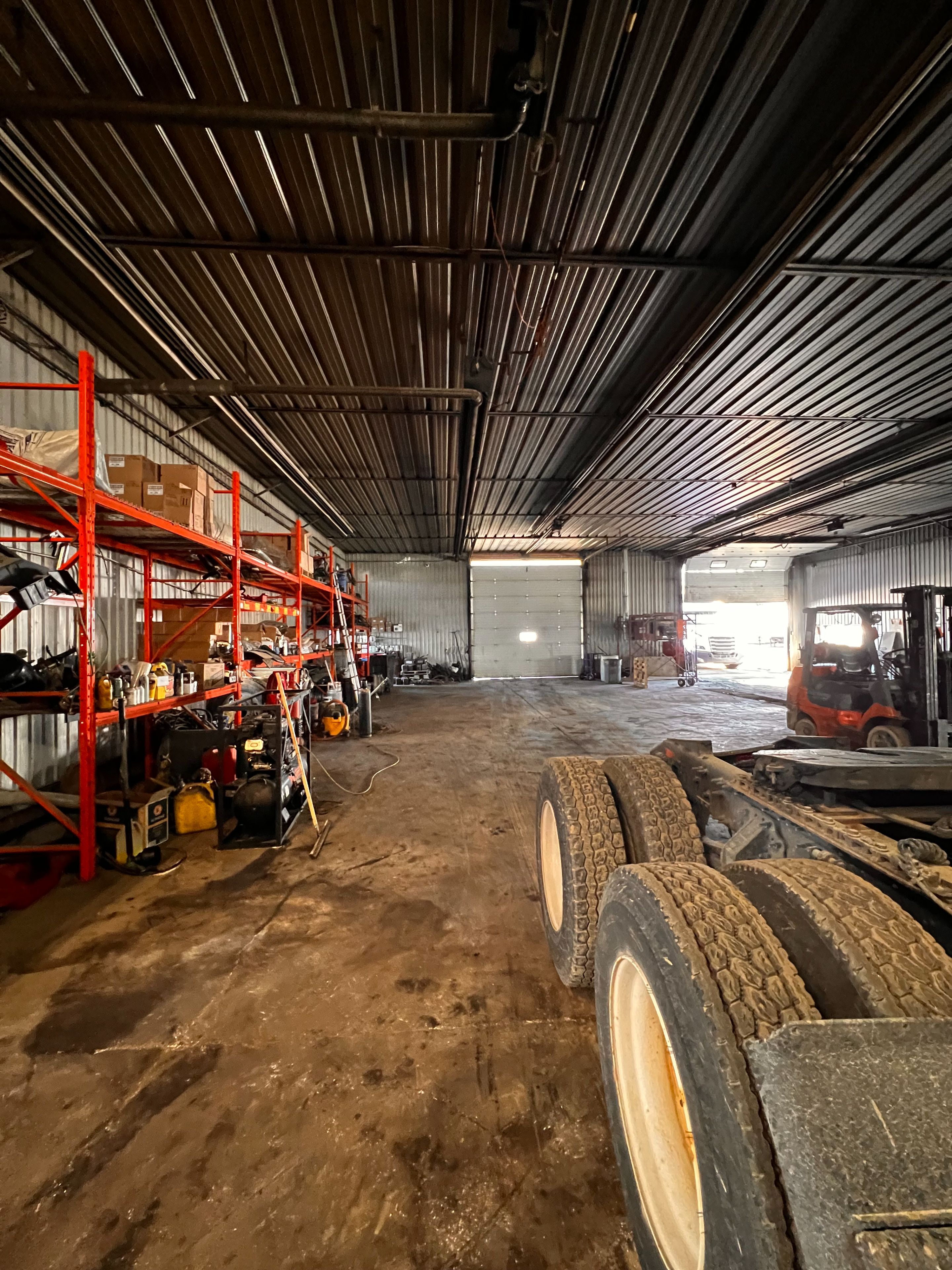 This 5,000 square foot truck repair shop offers an excellent opportunity to operate in a secure truck yard with 24-hour on-site security. The shop is well-equipped with two full-size truck bays, a service pit, and a used oil forced-air heating system that helps reduce operating costs. Inside, the facility includes a dedicated lunch room, office space, and a mezzanine of approximately 300 square feet, providing additional storage or workspace. Racks are already installed in the shop, making it a functional, move-in-ready space ideally suited for heavy truck maintenance and repair operations.