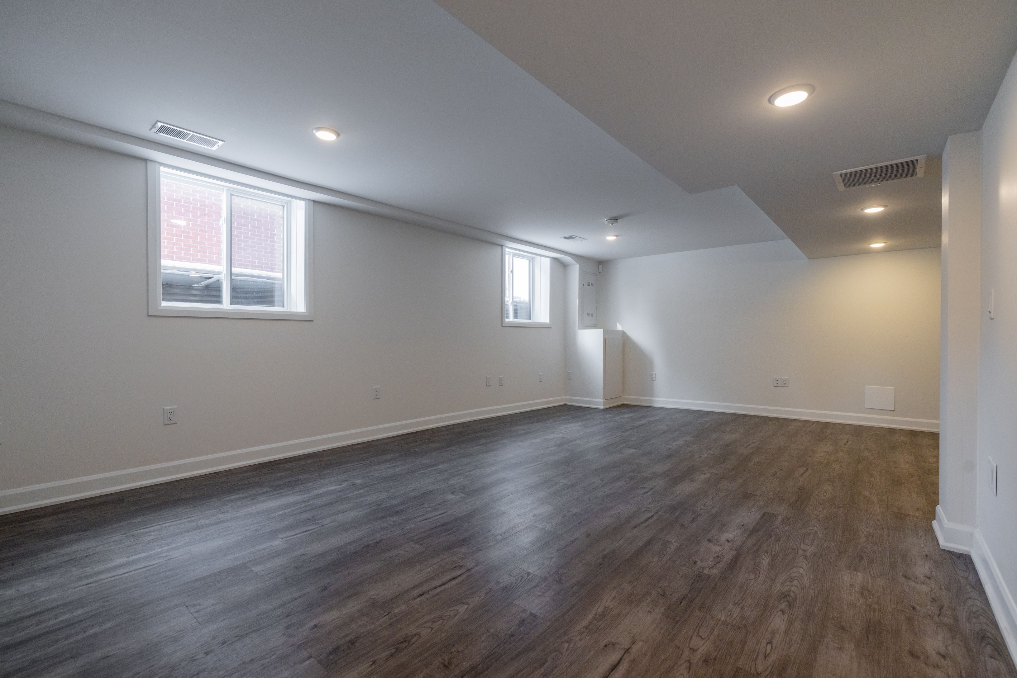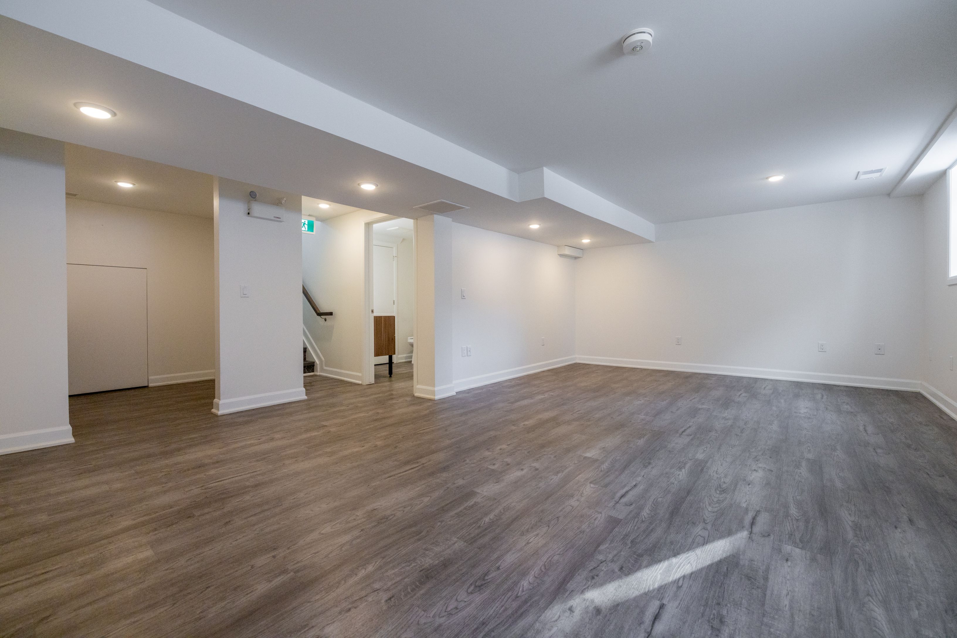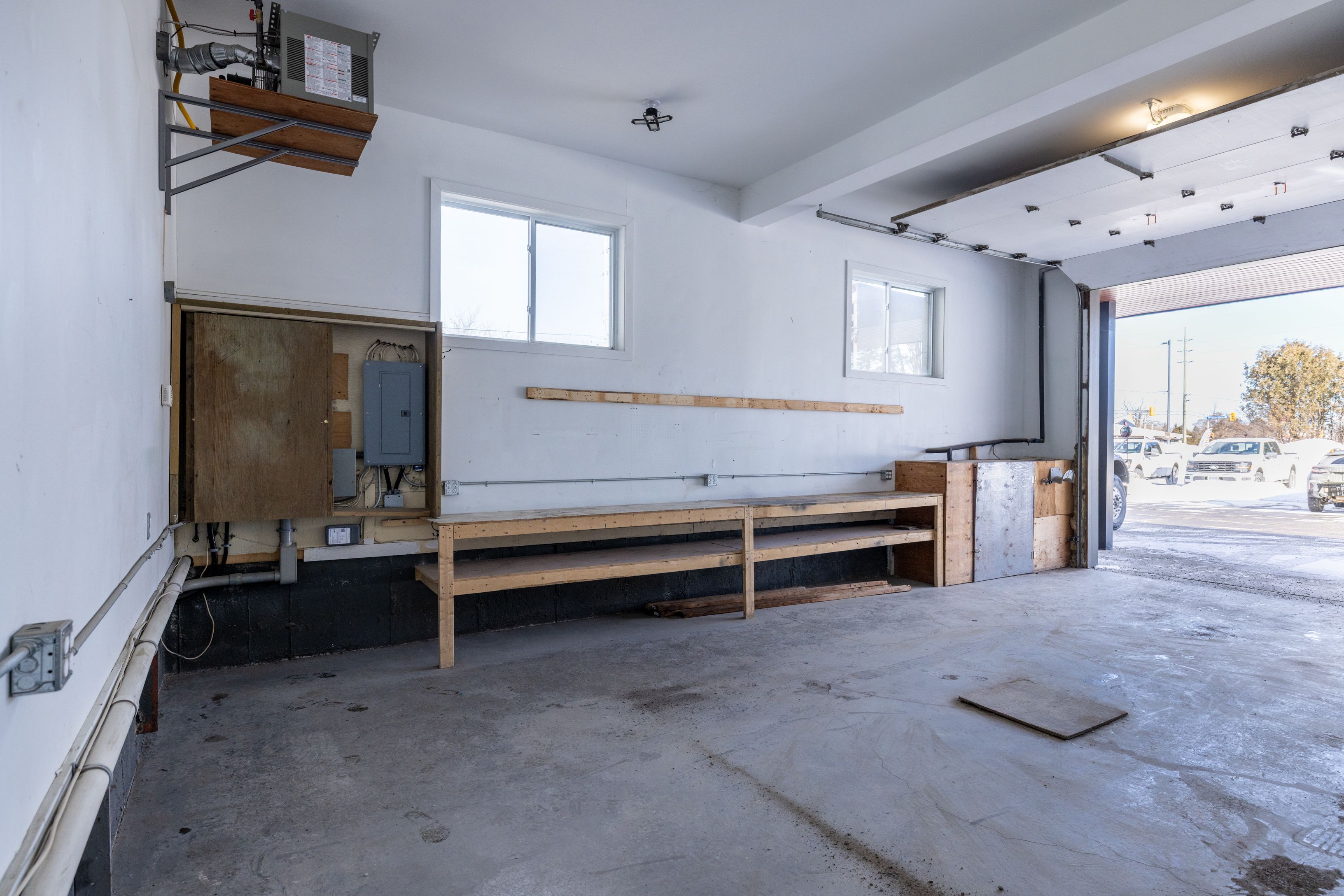Bright, newly renovated basement office space for lease featuring huge windows and tons of natural light. This unit offers a private, fob accessed entrance, kitchenette, and full 4-piece bathroom, along with an attached garage equipped with a 14-foot automatic garage door, providing excellent storage or workspace opportunity. This space is perfect for a self employed individual, trades company, or any business needing office space with storage. Monthly rent includes all utilities (wi-fi not included). Move-in ready and freshly renovated throughout.