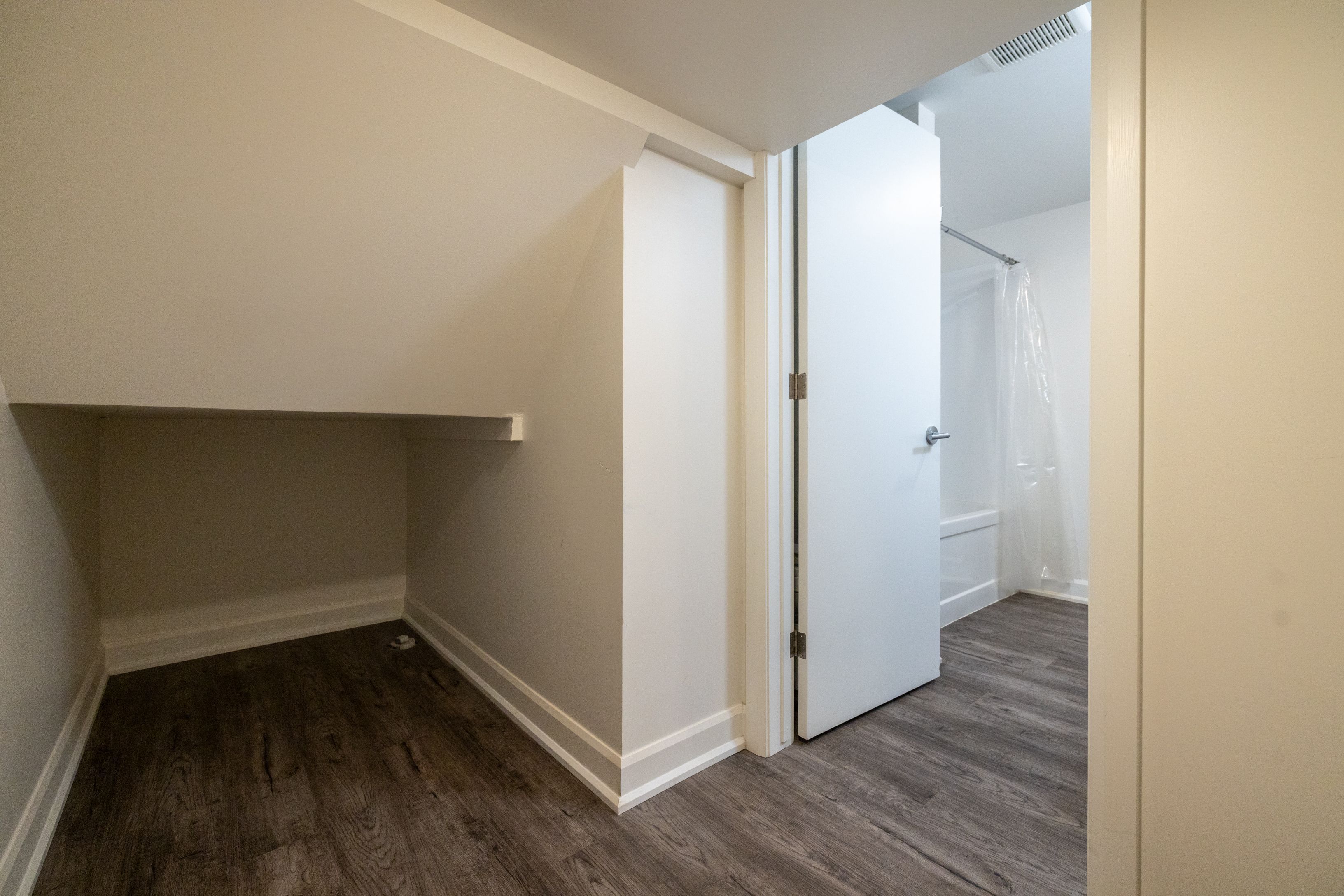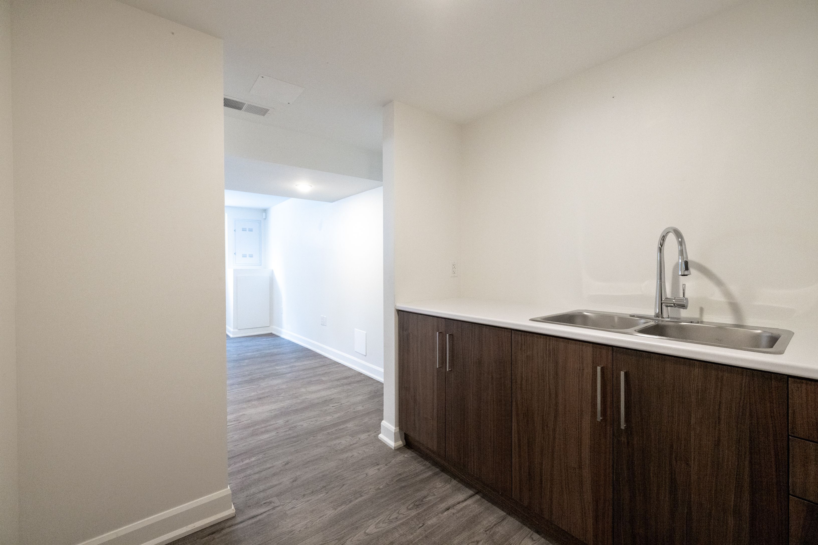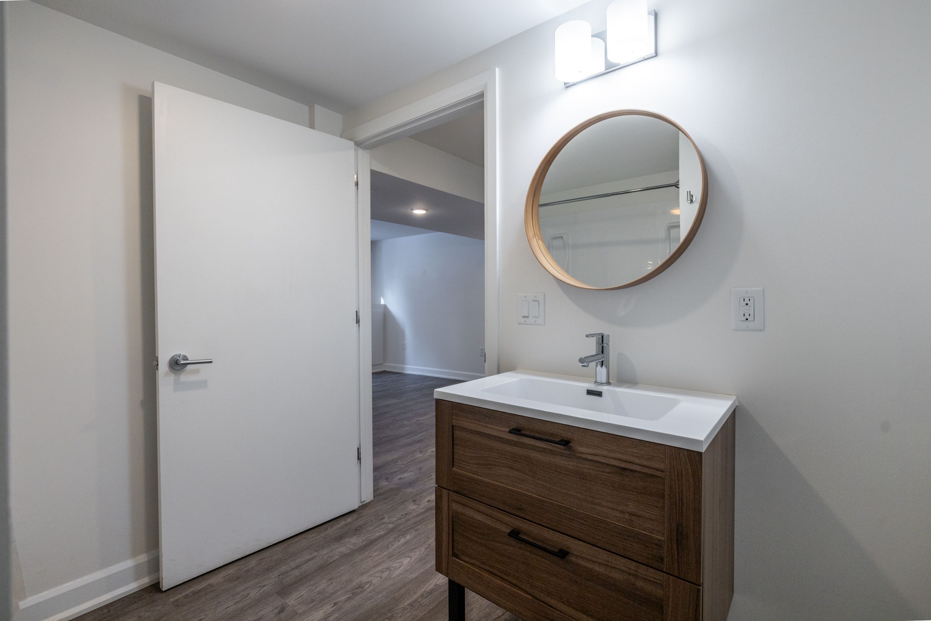 Bright, newly renovated basement office space for lease featuring huge windows and tons of natural light. This unit offers a private, fob accessed entrance, kitchenette, and full 4-piece bathroom, along with an attached garage equipped with a 14-foot automatic garage door, providing excellent storage or workspace opportunity. This space is perfect for a self employed individual, trades company, or any business needing office space with storage. Monthly rent includes all utilities (wi-fi not included). Move-in ready and freshly renovated throughout.