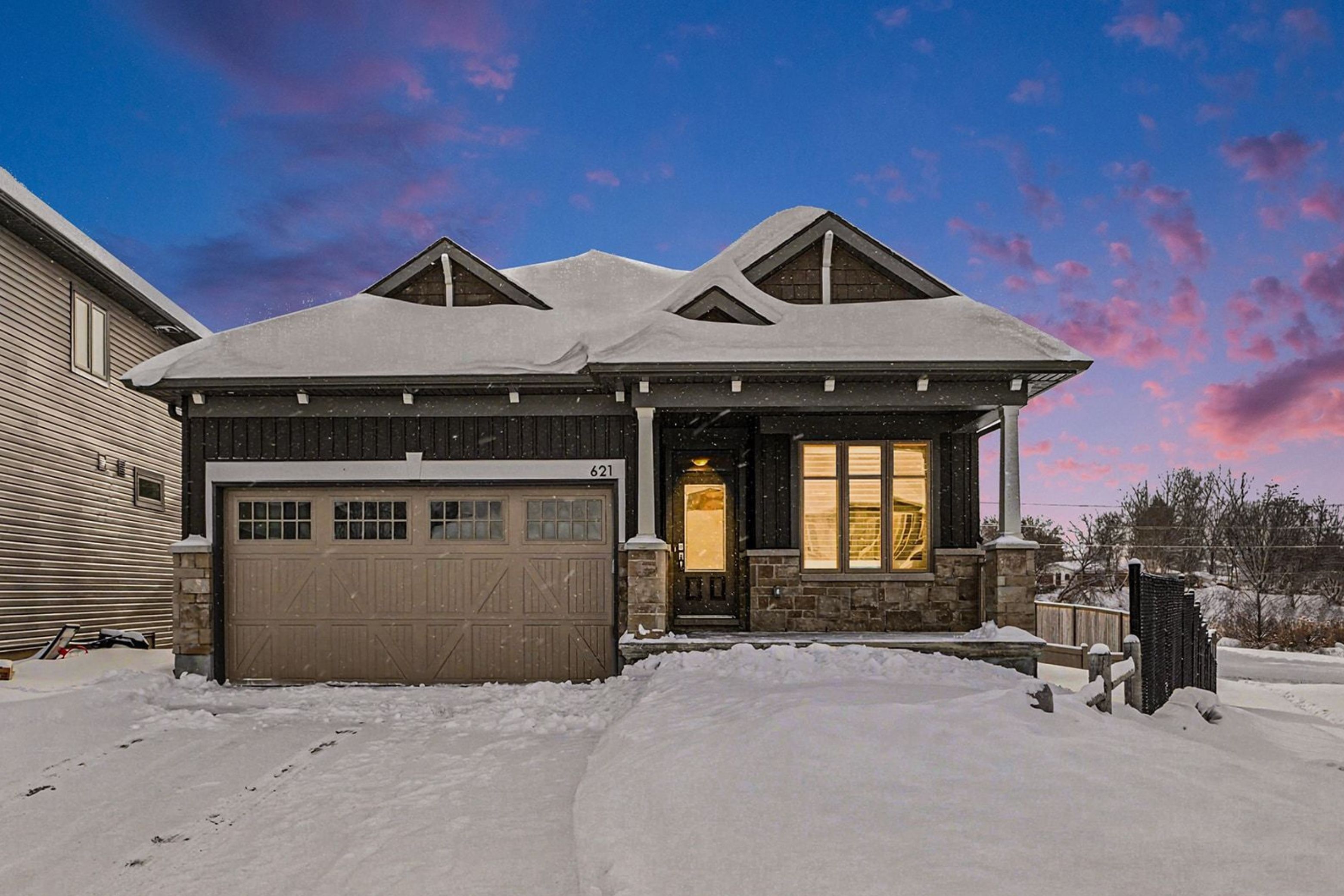 Better than new! Built in 2023, this stunning sun-filled bungalow boasts extensive builder upgrades. The quality-built 3-bedroom, 2-bathroom dumont model by eq homes is a functional smart home designed with a very rare walk-out basement featuring patio doors to an oversized, fully fenced yard. Backing onto nature with no rear neighbours, you will enjoy the warmth of the southern exposure & privacy with an oversized lot. Nestled on a cul-de-sac court, this architecturally attractive home has immediate curb appeal. Once inside, you will be immediately struck by the spacious open feel - vaulted ceilings, transom glass, & an abundance of natural light. Smart design features in this contemporary floor plan make life a breeze. Custom california shutters add a natural warmth & are complemented by expansive 9-foot ceilings. The flooring throughout is gorgeous - from the tiled entry to the 4" wide plank hardwood, all in neutral tones. The crisp white kitchen is a wow!! If you love to entertain & enjoy a great kitchen, you will love this home. Cabinetry extends to the ceiling for maximum storage plus a walk-in pantry. Upgraded stainless appliances, ceramic backsplash, generous island to seat 5, & even a coffee station custom designed to enhance your daily routine. The vaulted ceiling invites your eye into the open family room with a cozy gas fireplace on a chilly evening. The principle bedroom is a retreat from your day & has a spa bathroom with heated floors, a soaker tub & shower, & a walk-in closet. The generous 2nd bedroom also has a large walk-in closet. Separate 3 piece bathroom across the hall is very private & convenient. The 3rd room at the front of the home may be used as an office/den or a 3rd bedroom. Laundry room with upgraded cabinetry on the main level makes one-floor living a reality. You will fall in love with this home.... And appreciate the value in all of the wonderful upgrades. 24 hours irrevocable on all offers. Some photos are digitally enhanced.