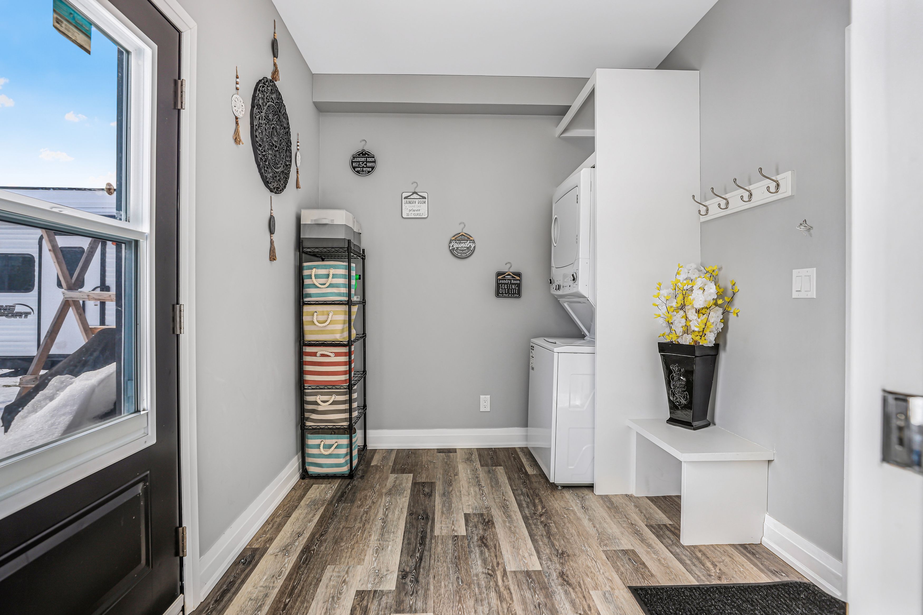 • In-floor heating and high ceilings provide a comfortable atmosphere.