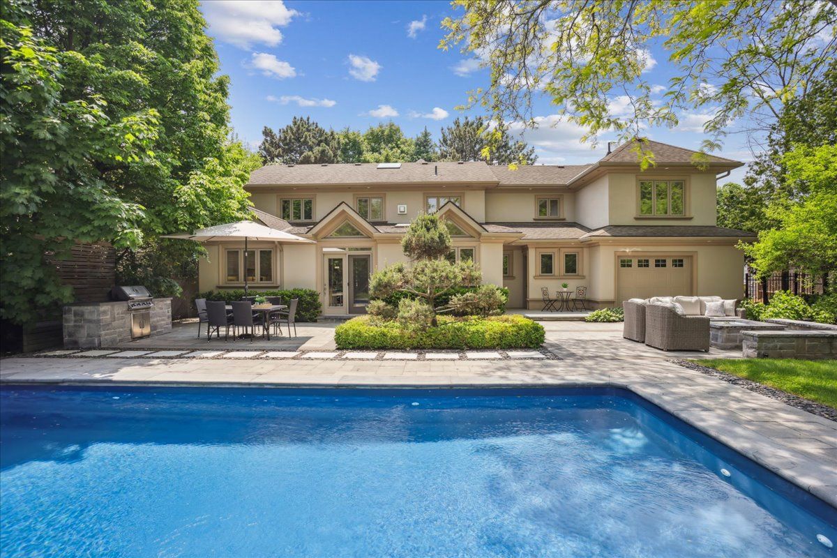 Architecturally designed and beautifully crafted 4-bedroom, 5-bath builders own custom home in south burlington offering over 3,740 sqft of luxurious living space on the above ground levels. Nestled in a mature treed setting on a rare 86' x 193' deep lot, this stunning property features an 8-car driveway with hammerhead parking, 3-car garage (with roll-up rear door for backyard access), and exceptional curb appeal. Inside, enjoy hardwood flooring, crown mouldings, and elegant formal living/dining rooms. The open-concept gourmet kitchen boasts granite counters, a large island, stainless steel appliances, pot lights, bright skylights and timeless finishes. The spacious family room is enhanced by vaulted ceilings and a double-sided stone fireplace, perfect for cozy evenings. A rare find, the main floor office with separate entrance offers great flexibility for professionals or multi-generational living. Upstairs, the impressive primary suite features vaulted ceilings, double walk-in closets, a luxurious 5-pc ensuite, and peek-a-boo lake views. Additional bedrooms are generously sized, with ensuite access and skylights providing abundant natural light. The fully finished lower level adds even more living space for recreation or home theatre. Outside, the extra-deep private backyard is an entertainer's dream, featuring a resort-style setting complete with an in-ground salt-water pool, lush landscaping, custom stone gas fire pit with built-in seating, custom stone gas bbq island with granite counter, and multiple seating areas, with separate access through a backyard mudroom with shower. With almost 5000 sqft of living space, there is plenty of room to enjoy this magnificent property! Located just minutes to downtown burlington, waterfront, beaches, burlington golf & country club, lasalle park marina, top-rated schools, hospital, parks, and highway access. A rare opportunity to own lakeside luxury in one of burlington's most sought-after locations.